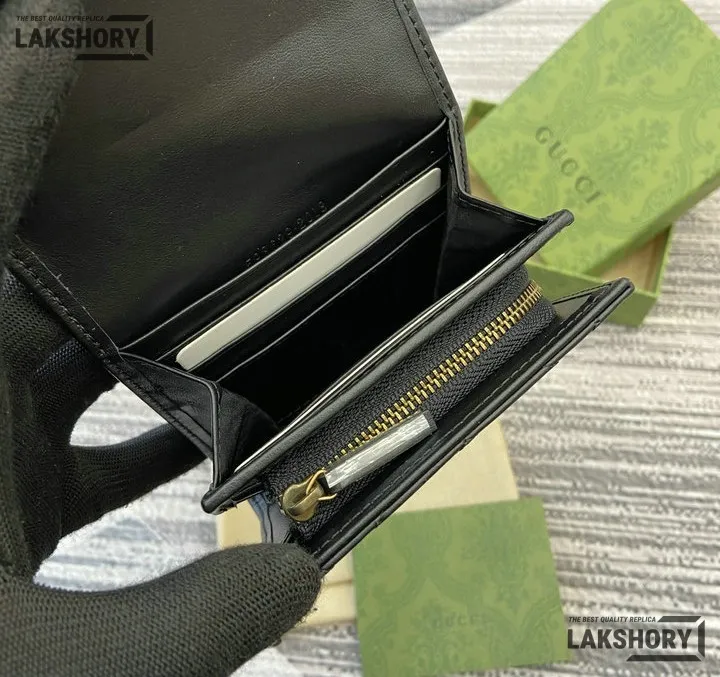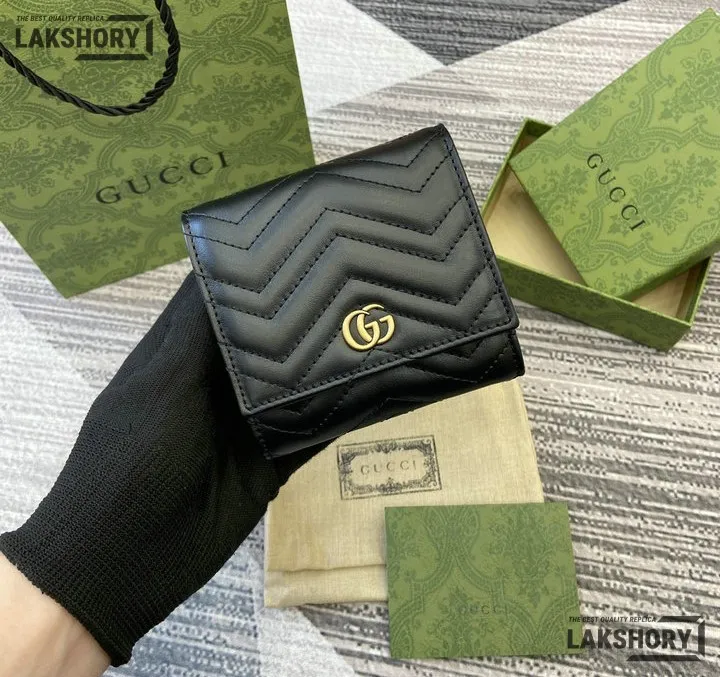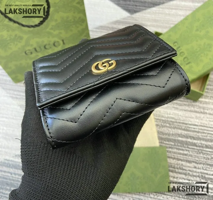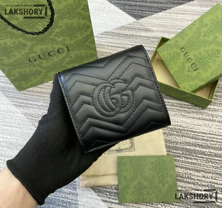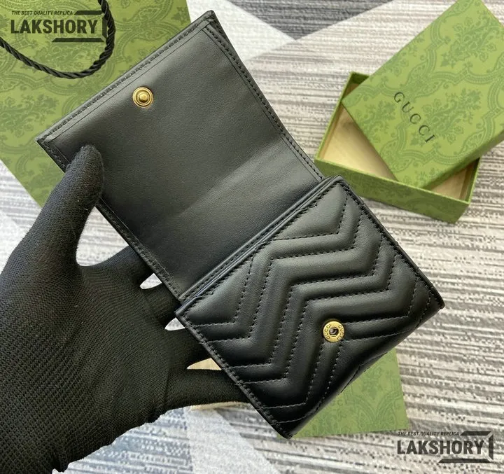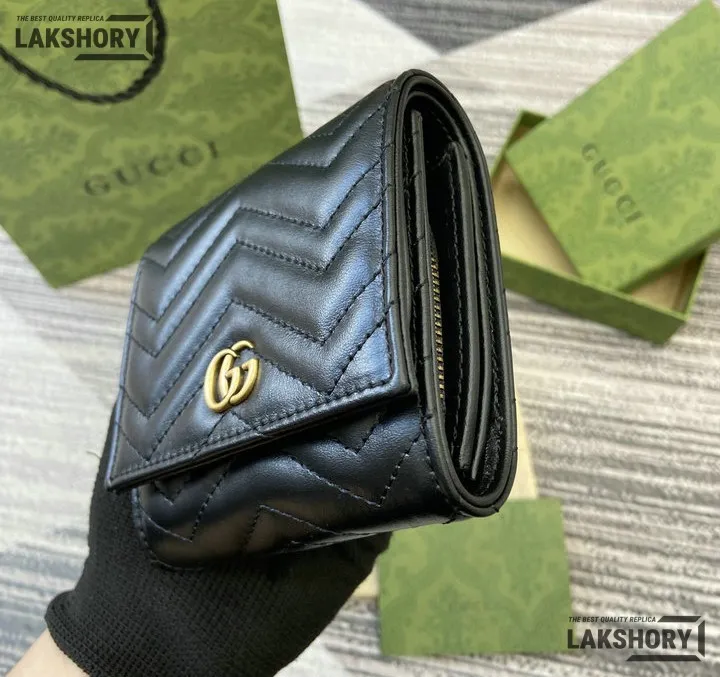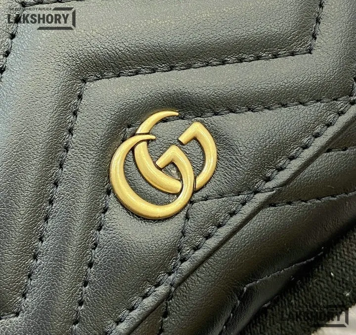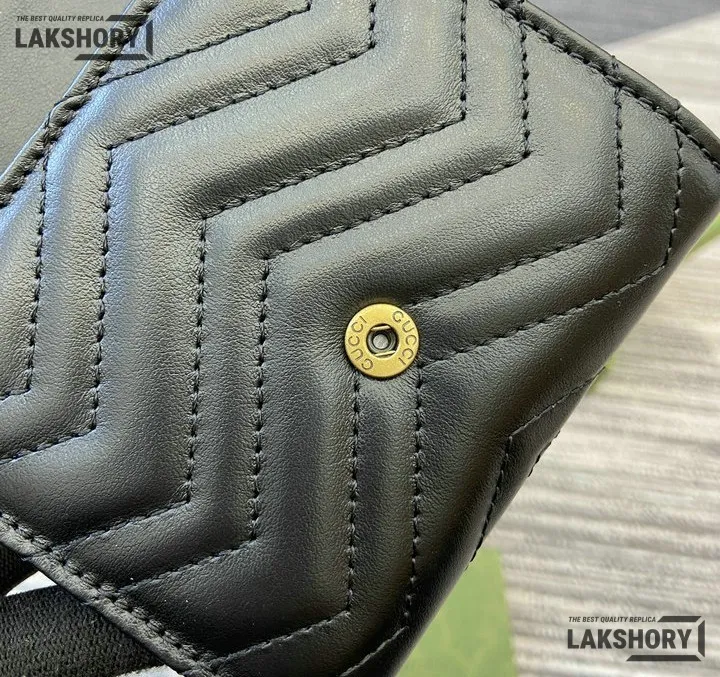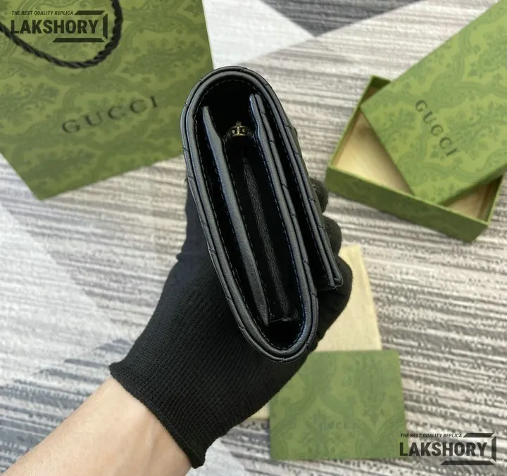 Gucci 1:1 Mirror Replica Black Matelasse GG Marmont Medium Wallet 12CM/4.7IN