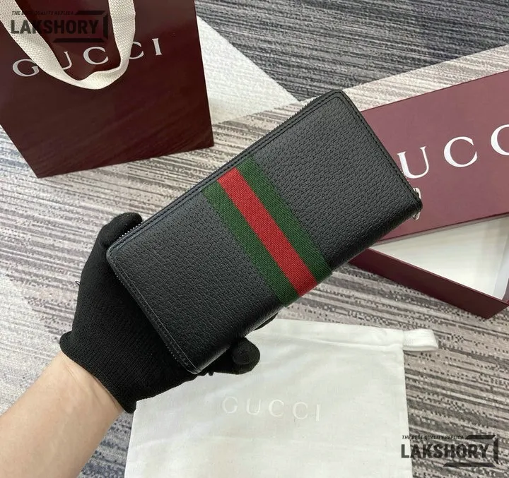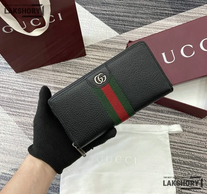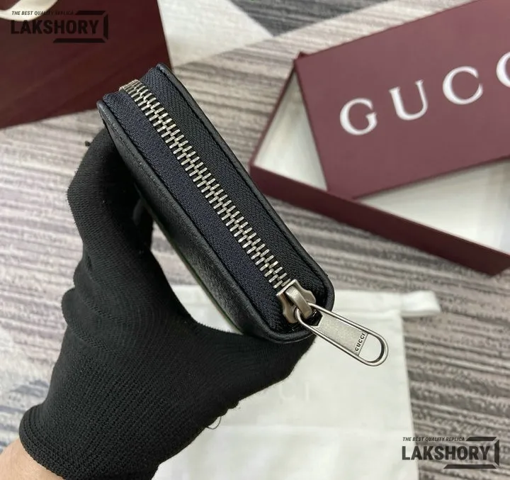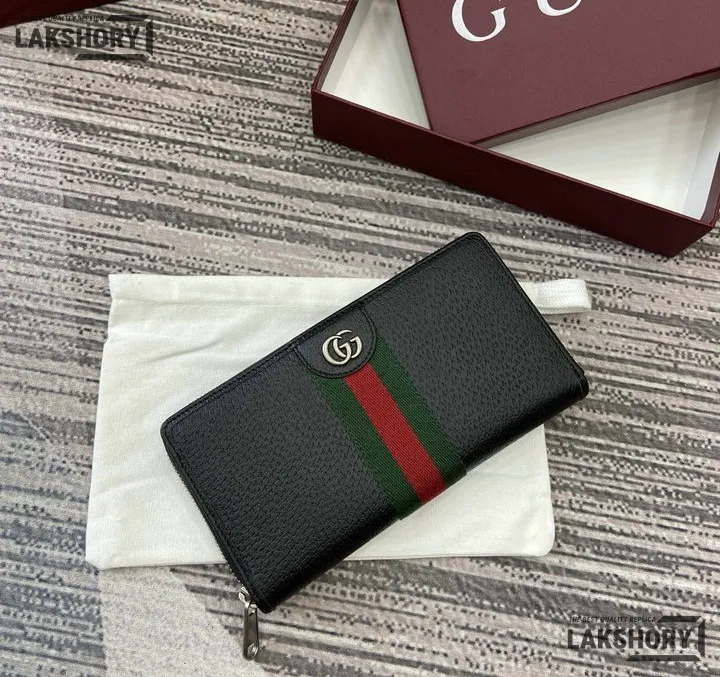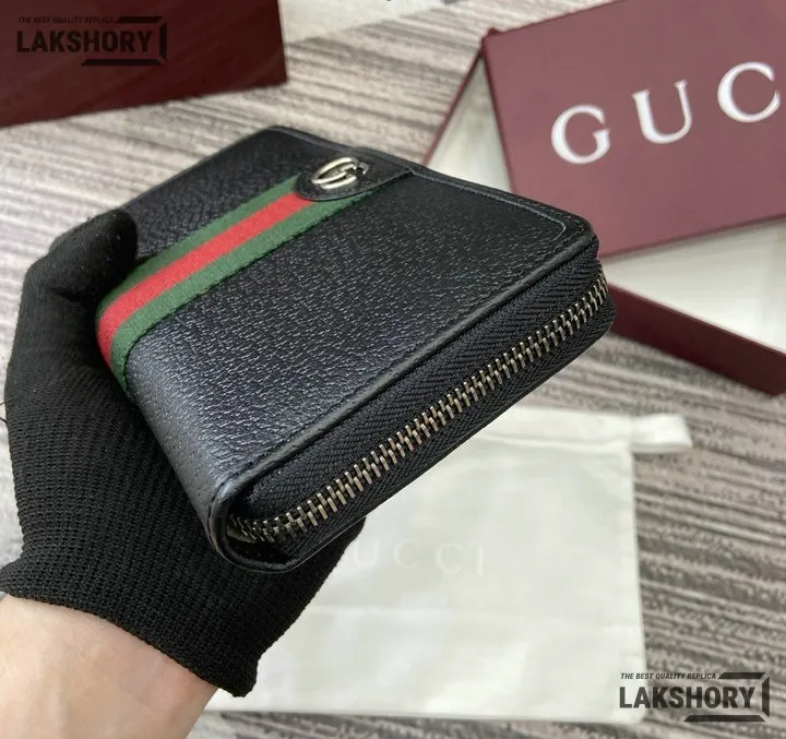 Gucci 1:1 Mirror Replica Black Zip Around Web Ophidia Wallet 19.5CM/7.7IN