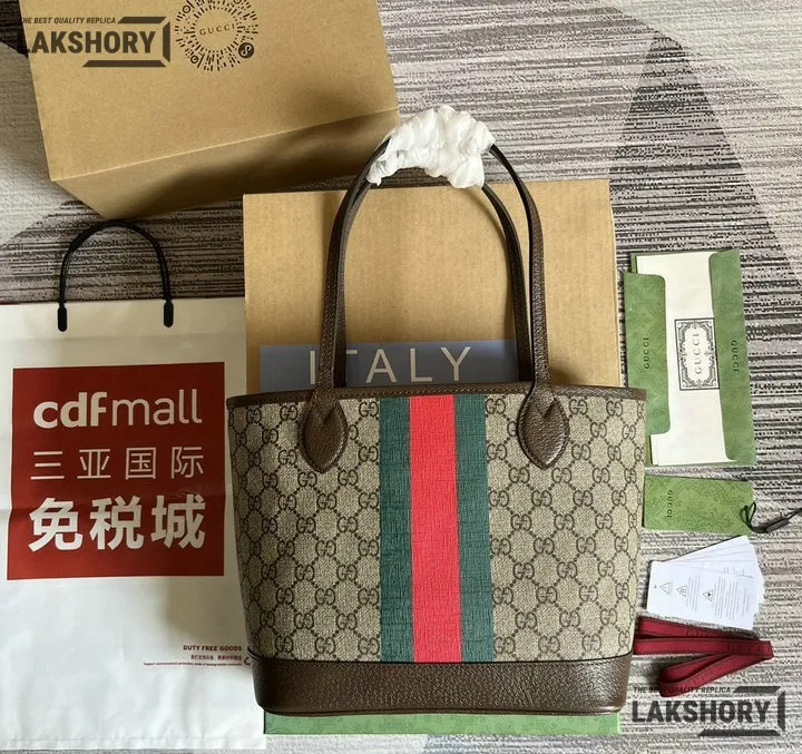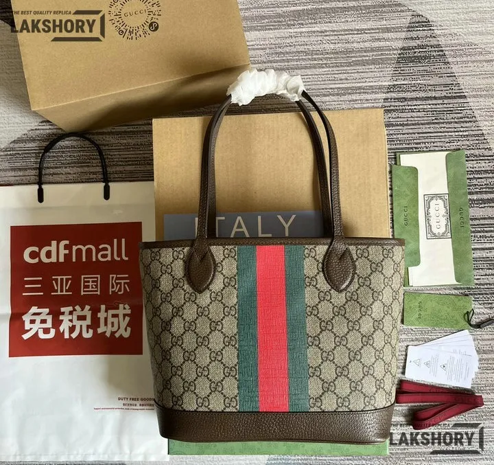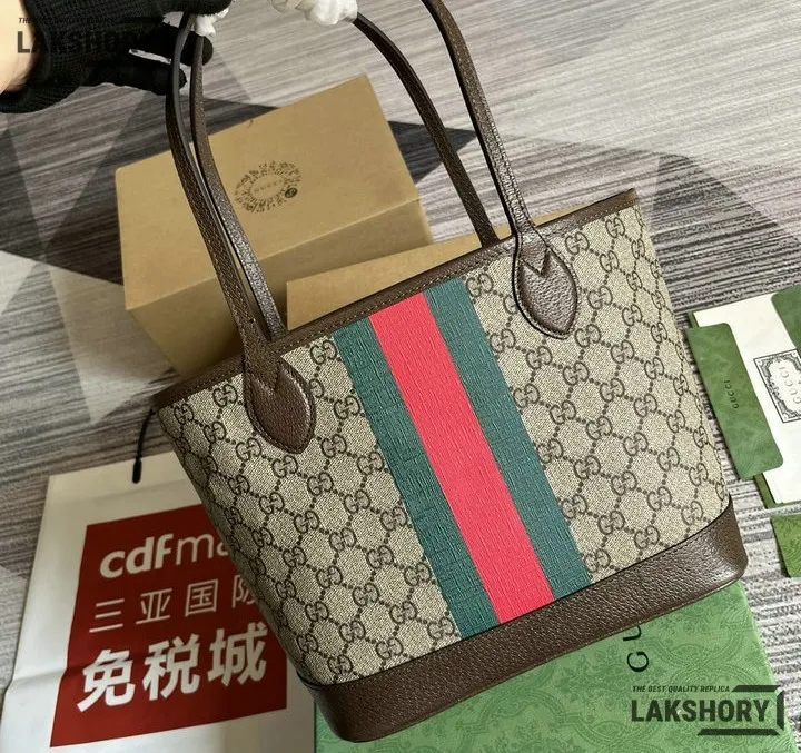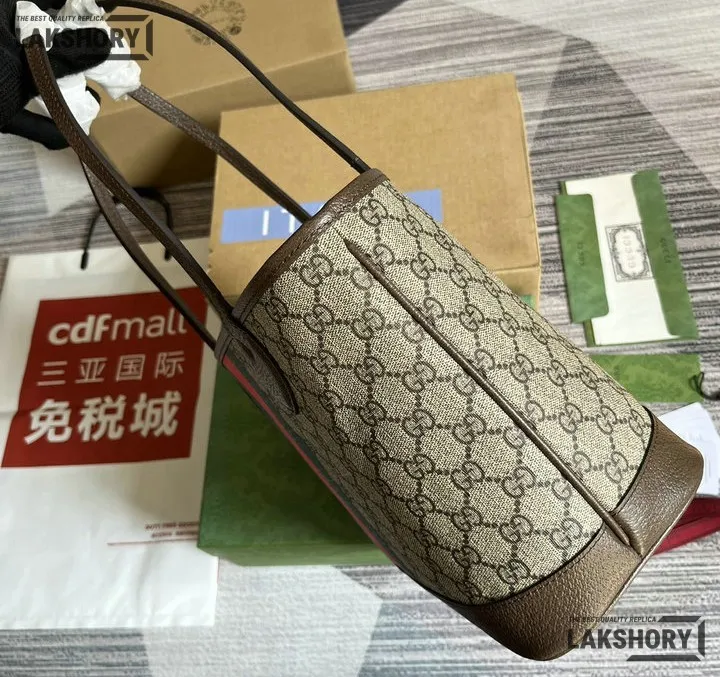 Gucci 1:1 Mirror Replica Brown Small GG Supreme Ophidia Tote 25CM/9.8IN