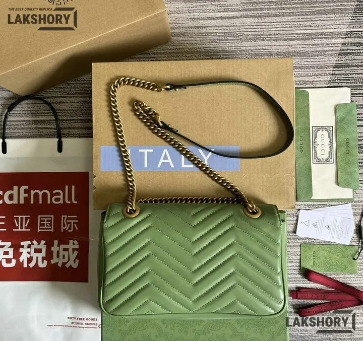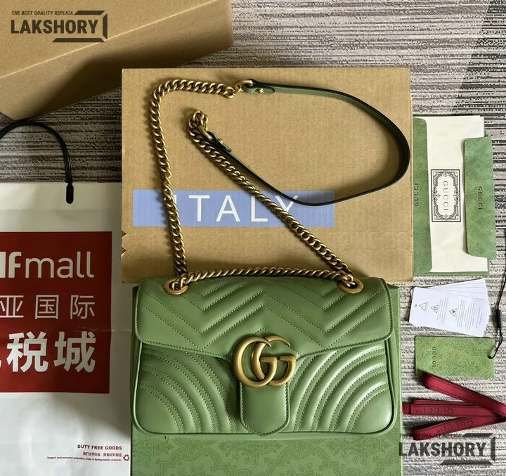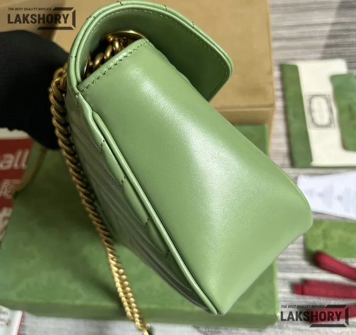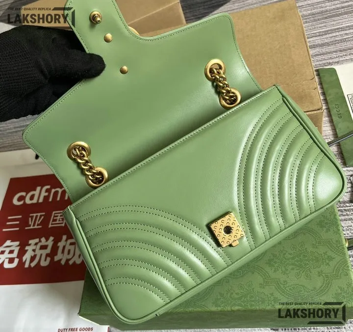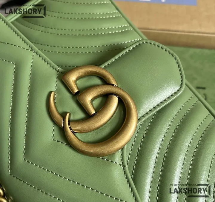 Gucci 1:1 Mirror Replica Calfskin Small GG Marmont Bag Green 26CM/10.2IN
