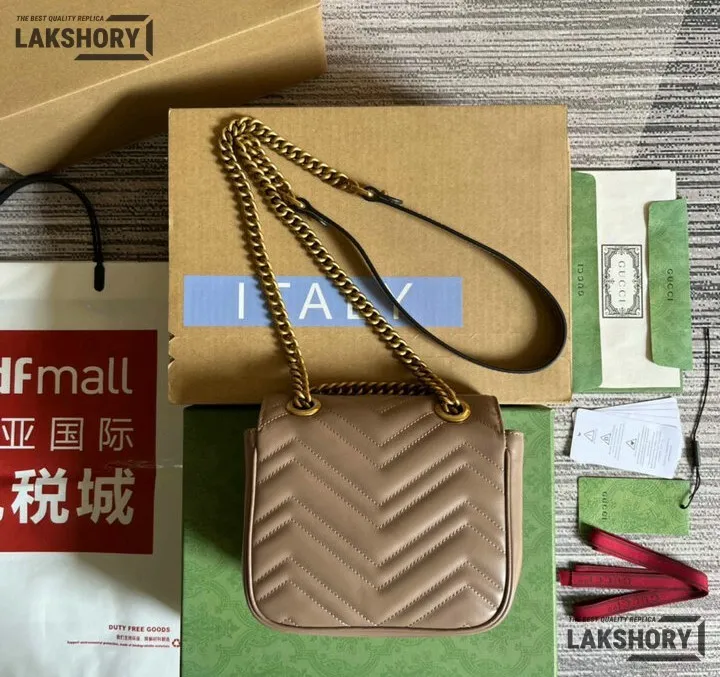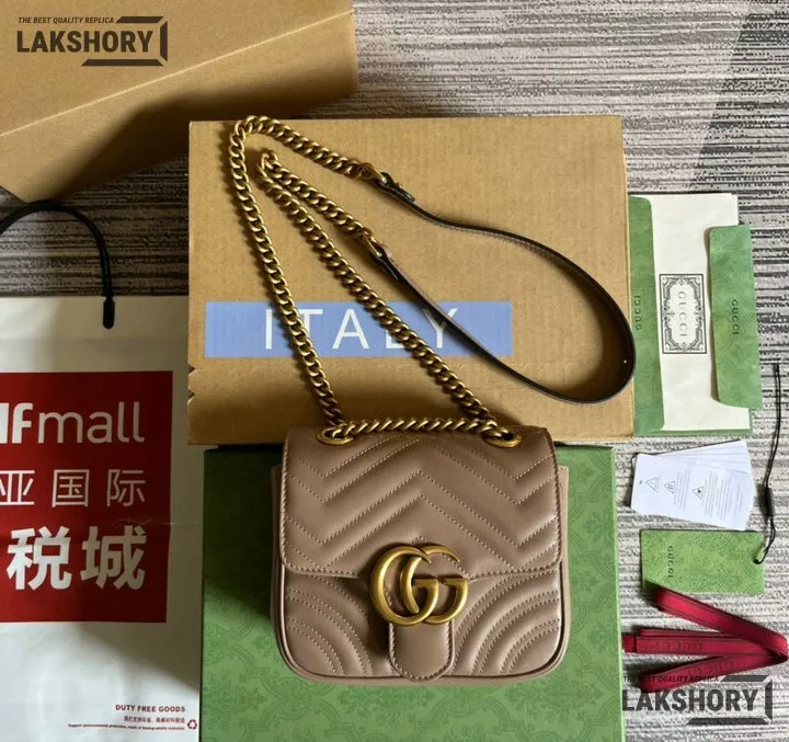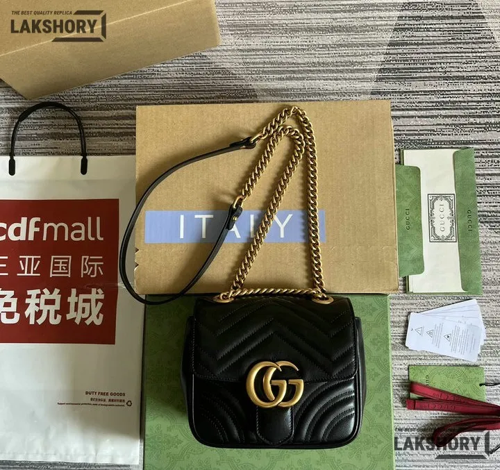 Gucci 1:1 Mirror Replica Calfskin Square Matelasse Mini GG Marmont 18CM/7.1IN