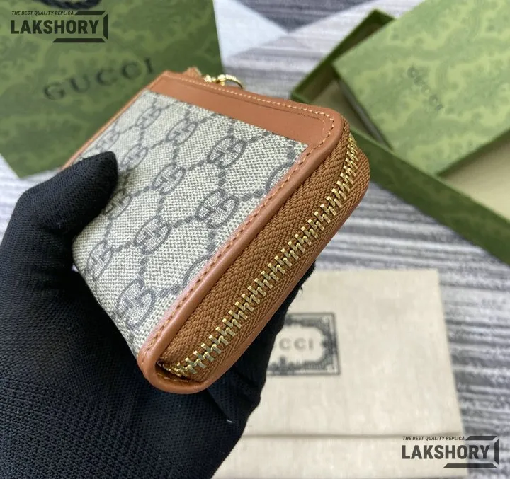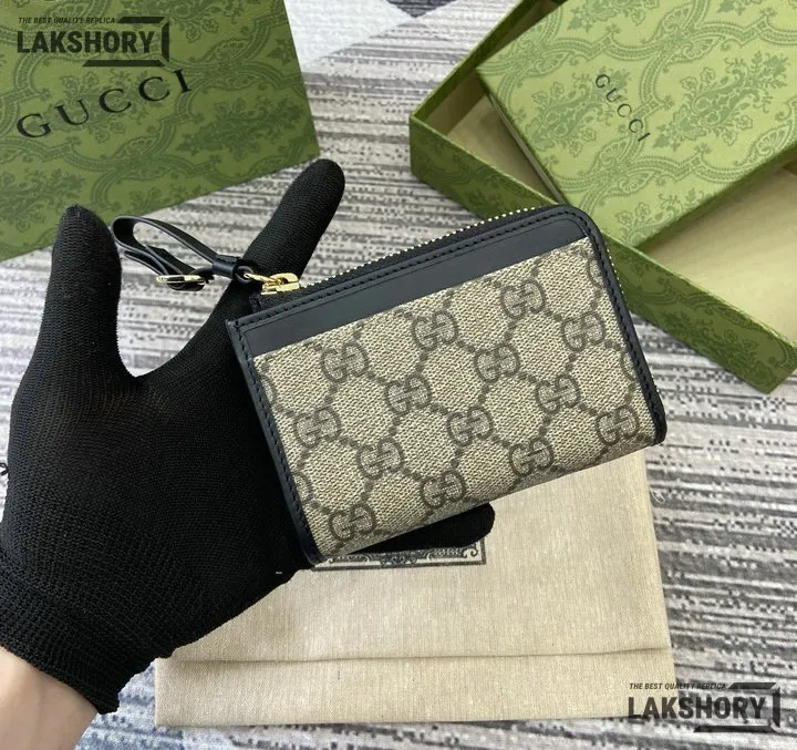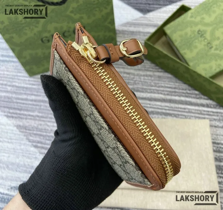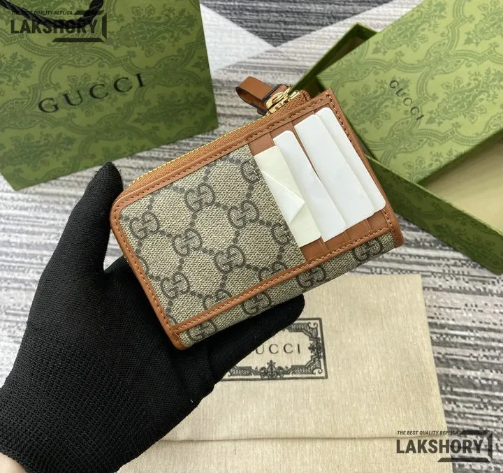 Gucci 1:1 Mirror Replica Card Case Fabric GG Emblem Zip 13CM/5.1IN