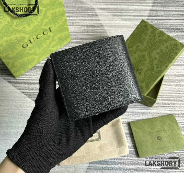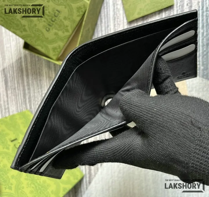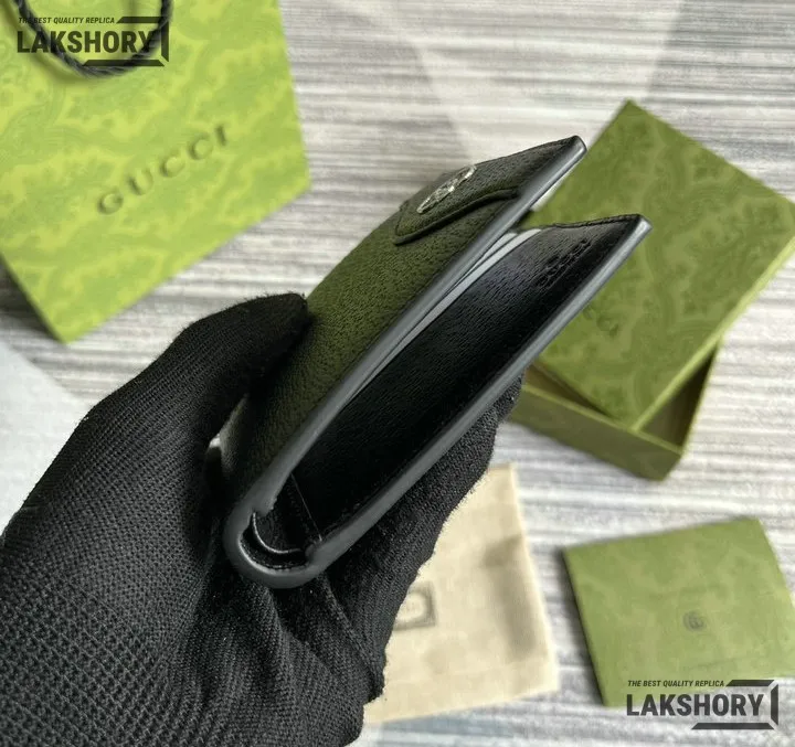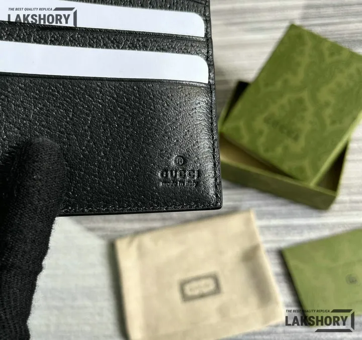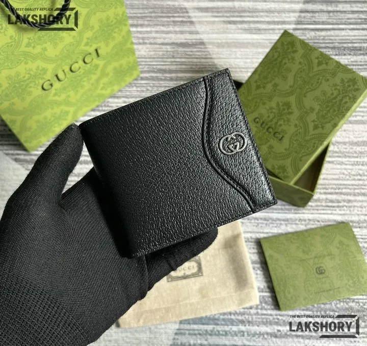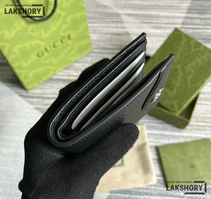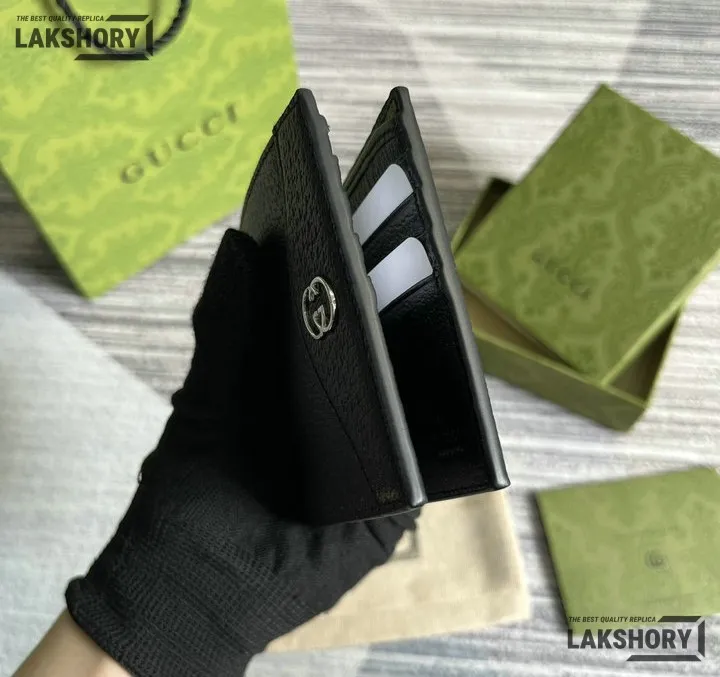 Gucci 1:1 Mirror Replica Card Case Interlocking G Wallet Black 9CM/3.5IN