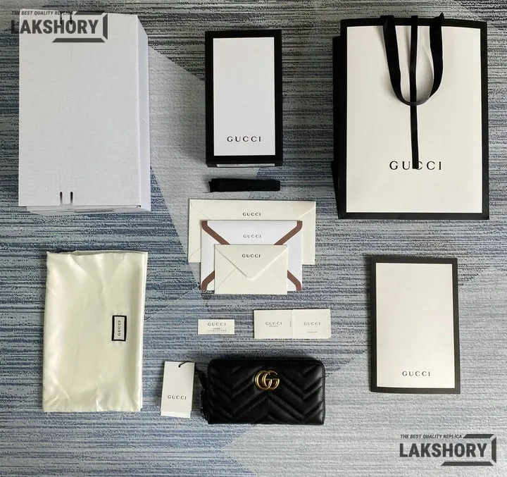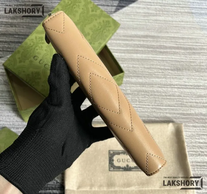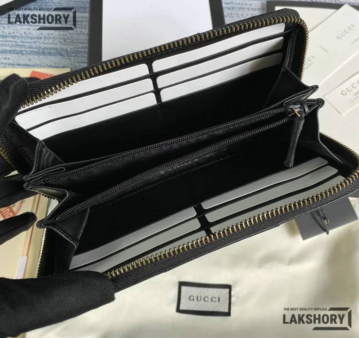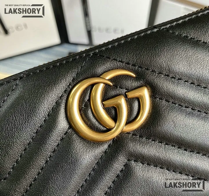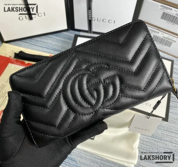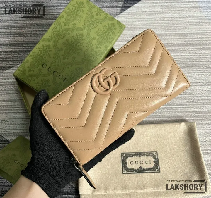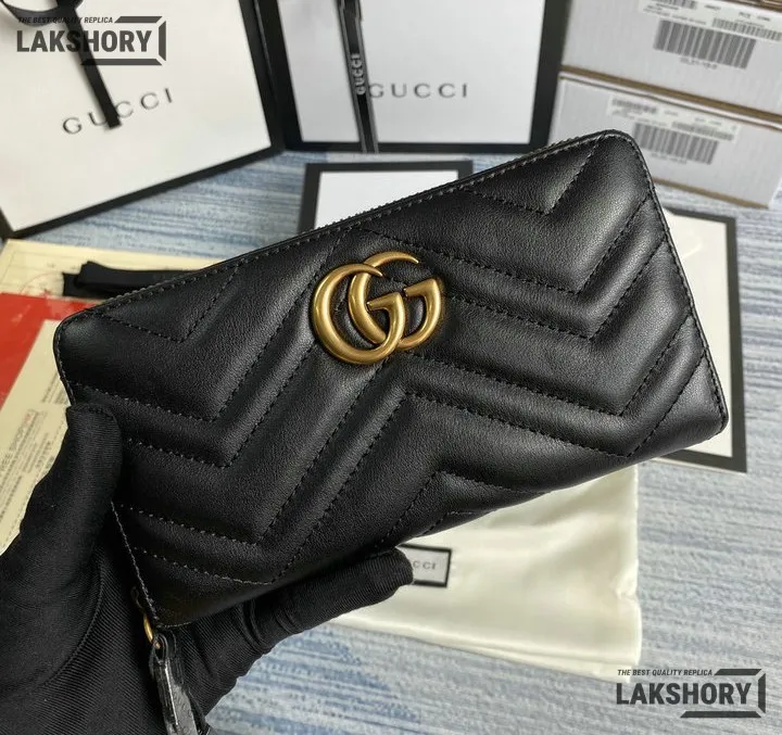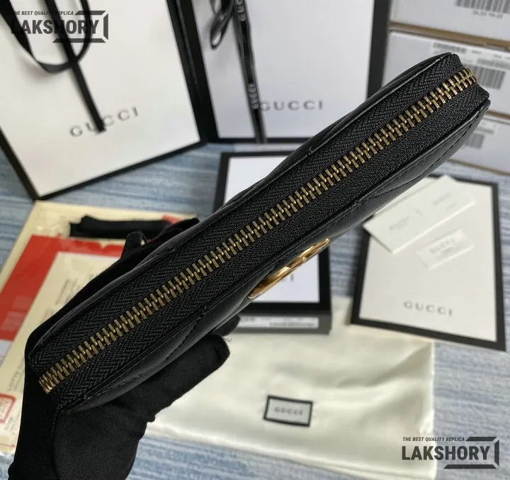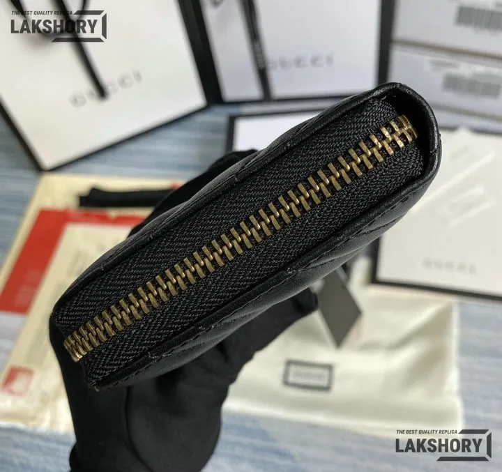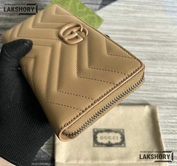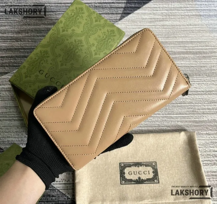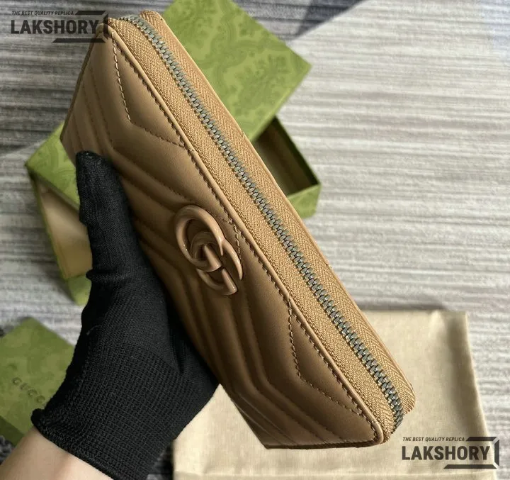 Gucci 1:1 Mirror Replica Chevron GG Marmont Zip Around Wallet 19CM/7.5IN