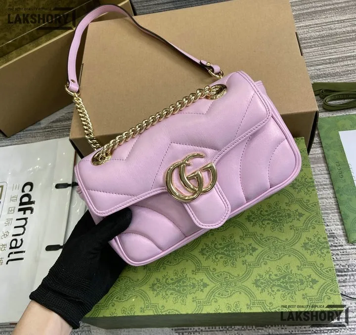 Gucci 1:1 Mirror Replica Chevron Matelasse Small GG Marmont 23CM/9.1IN