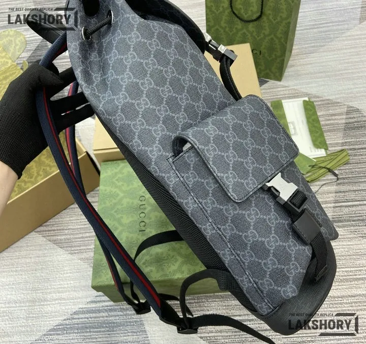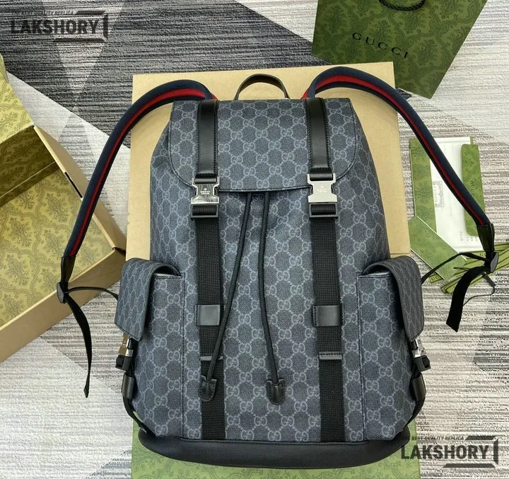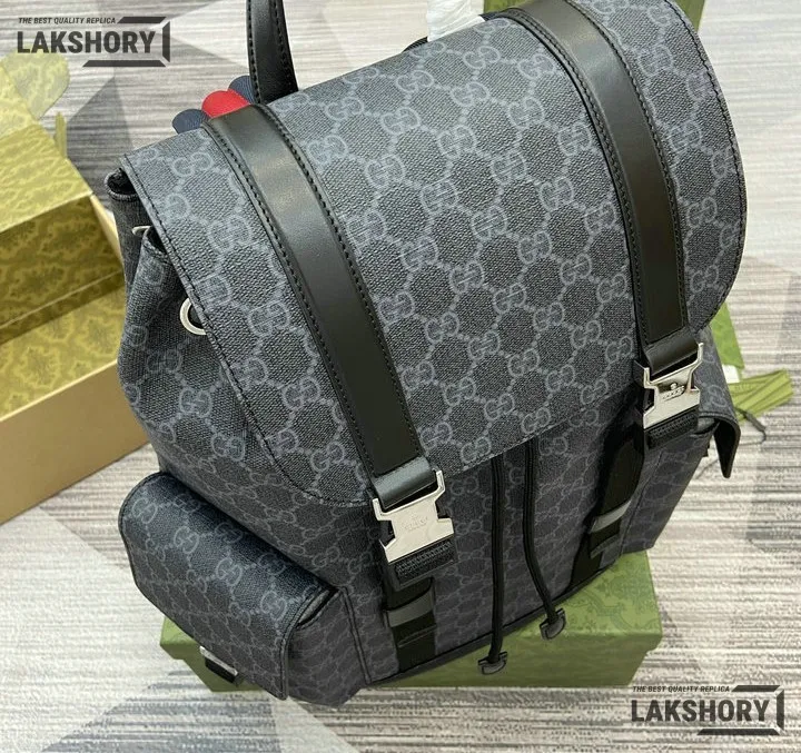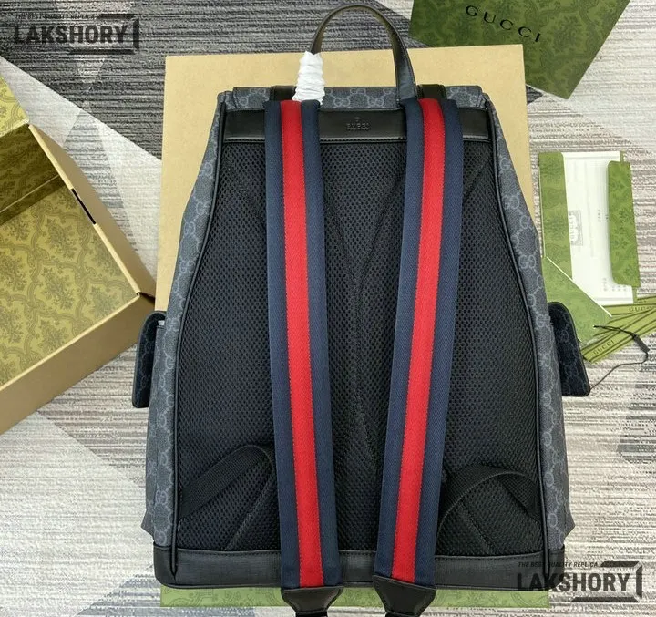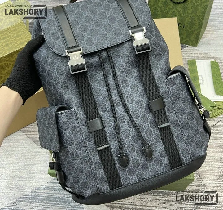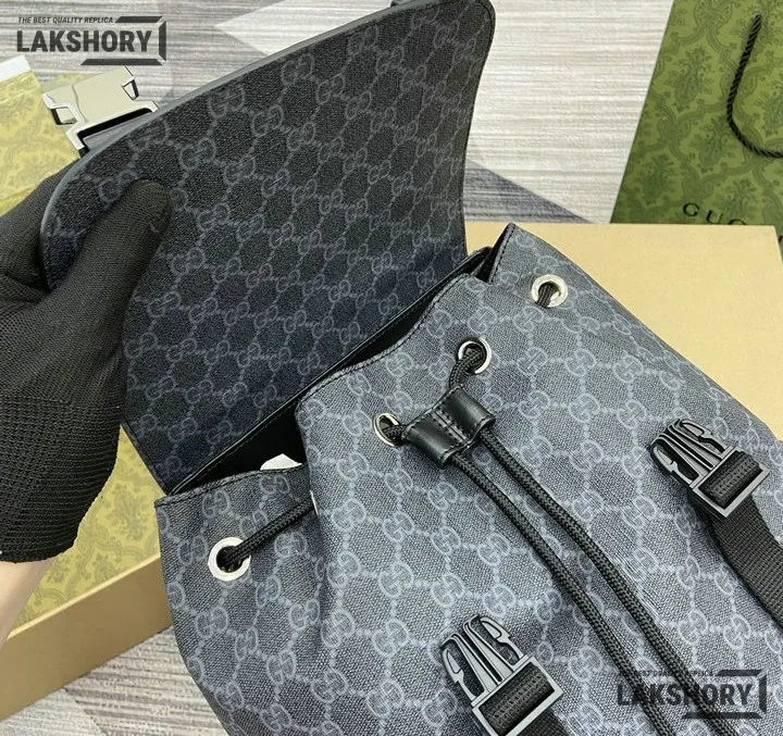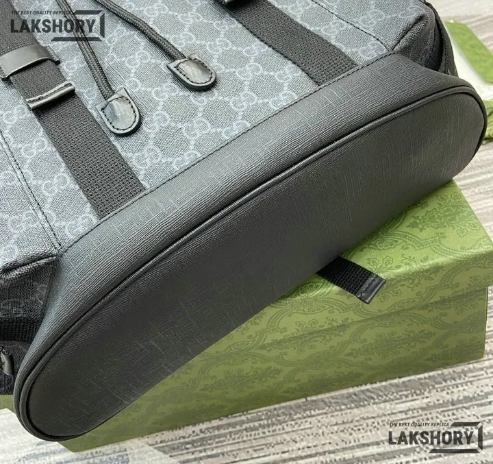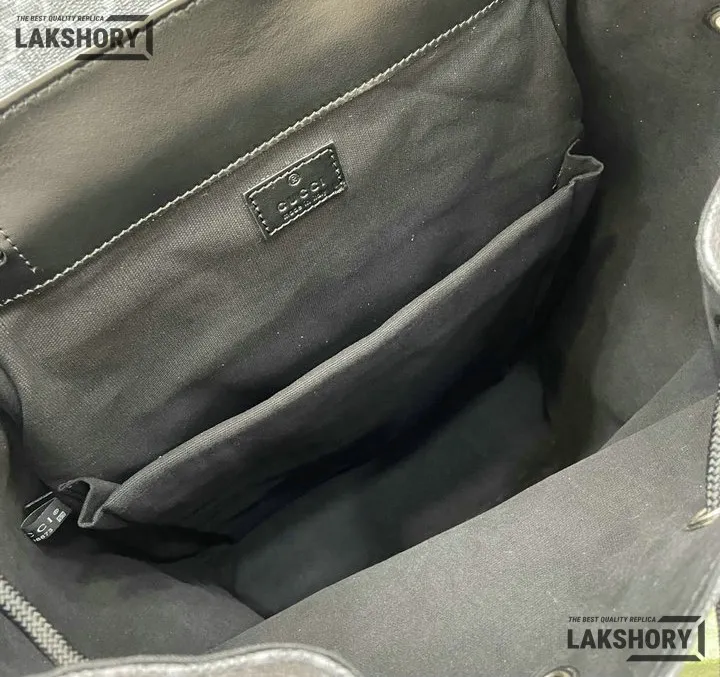 Gucci 1:1 Mirror Replica Cowhide GG Supreme Large Backpack Black 46CM/18.1IN
