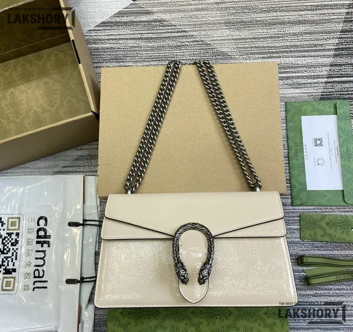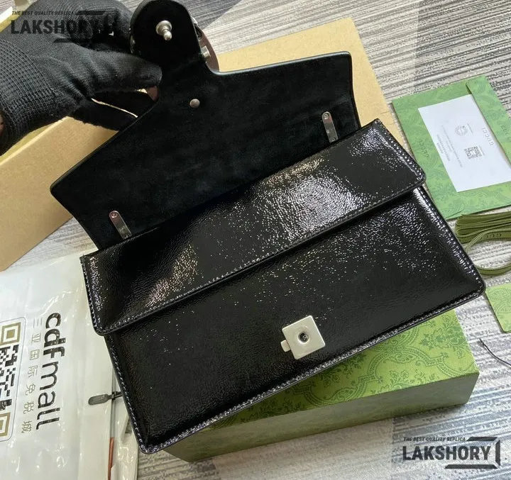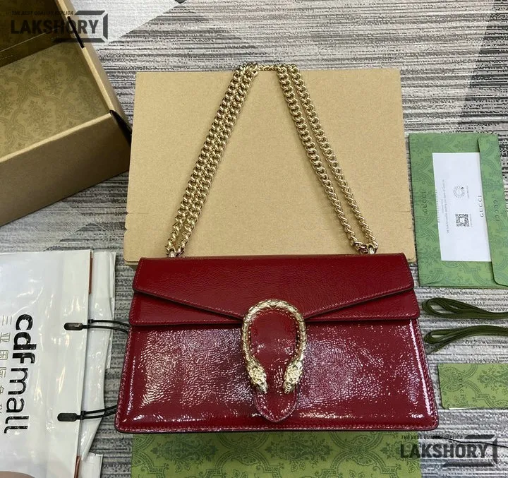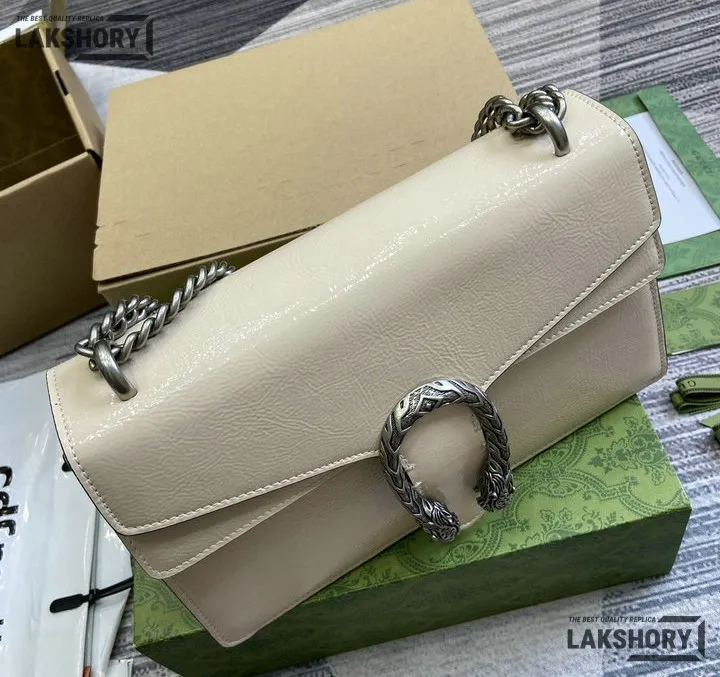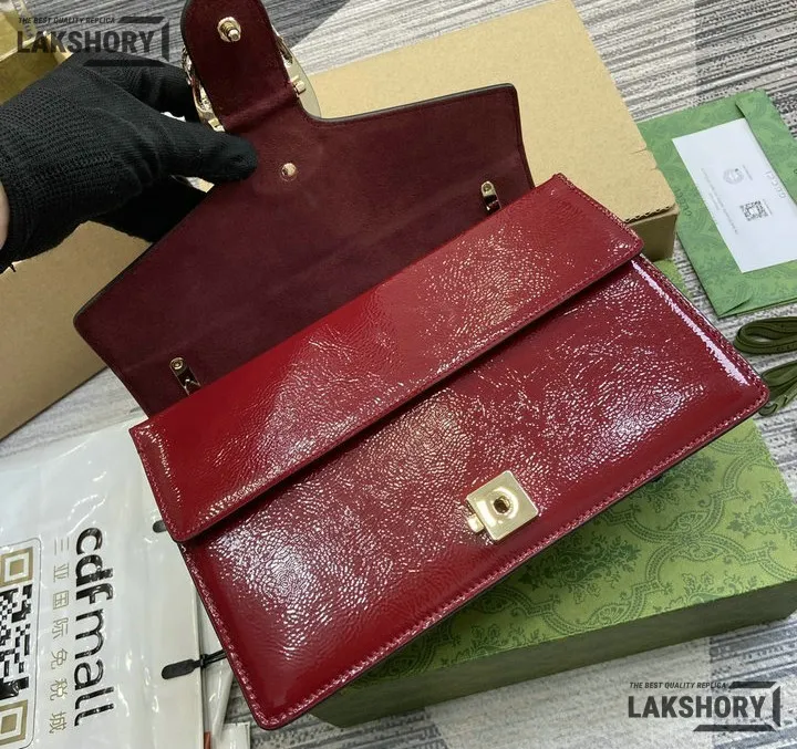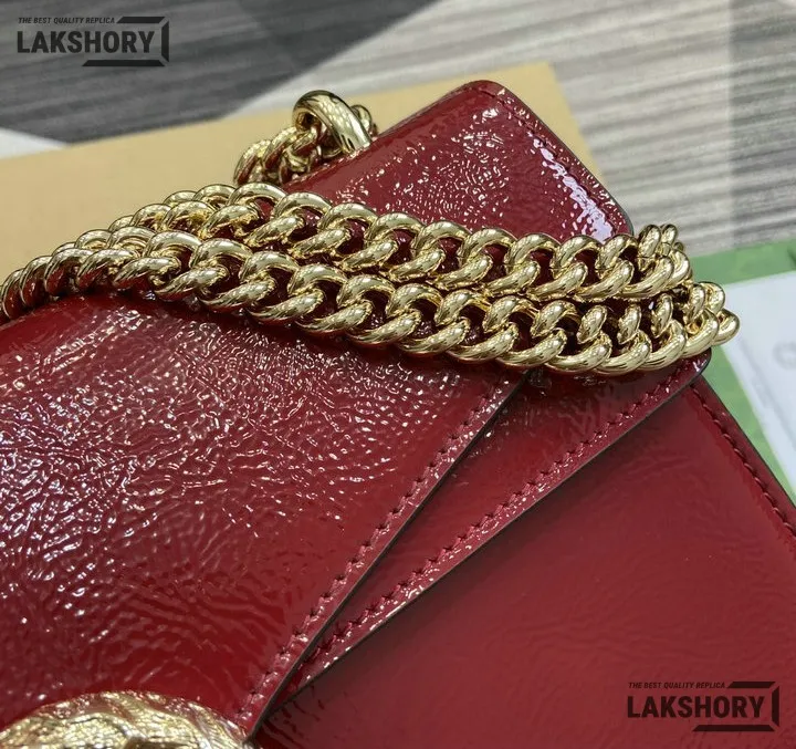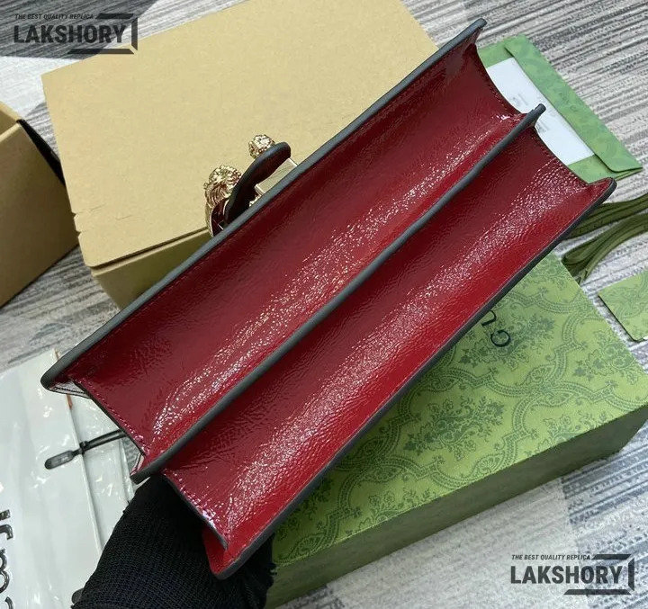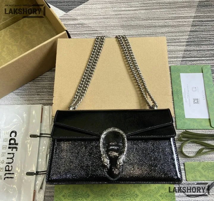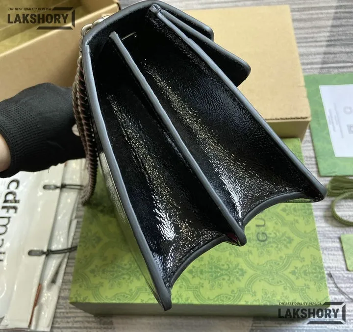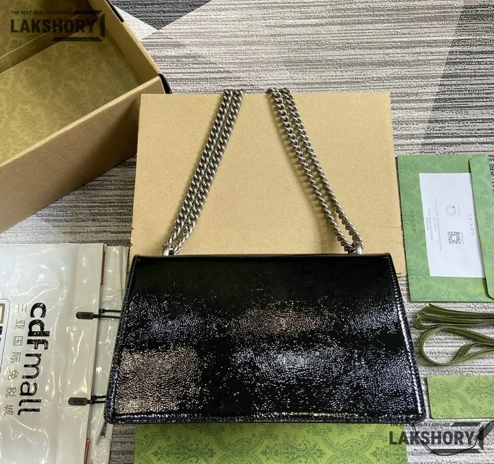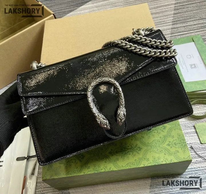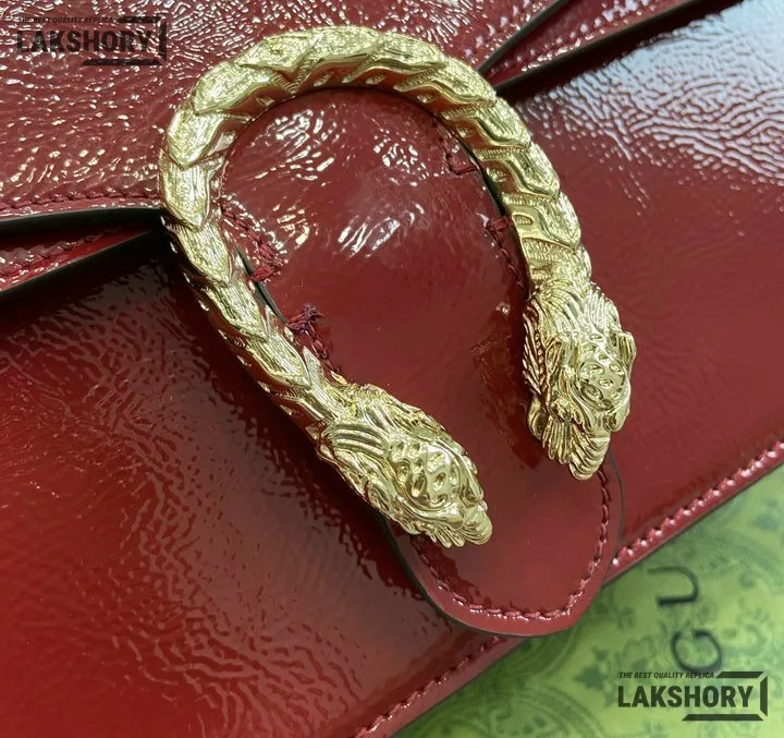 Gucci 1:1 Mirror Replica Crinkled Patent Mini Dionysus Shoulder Bag 28CM/11IN