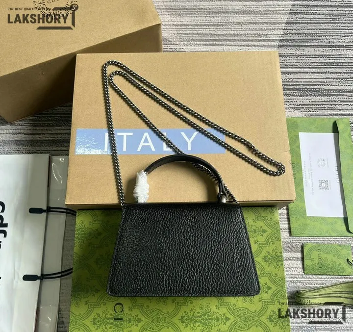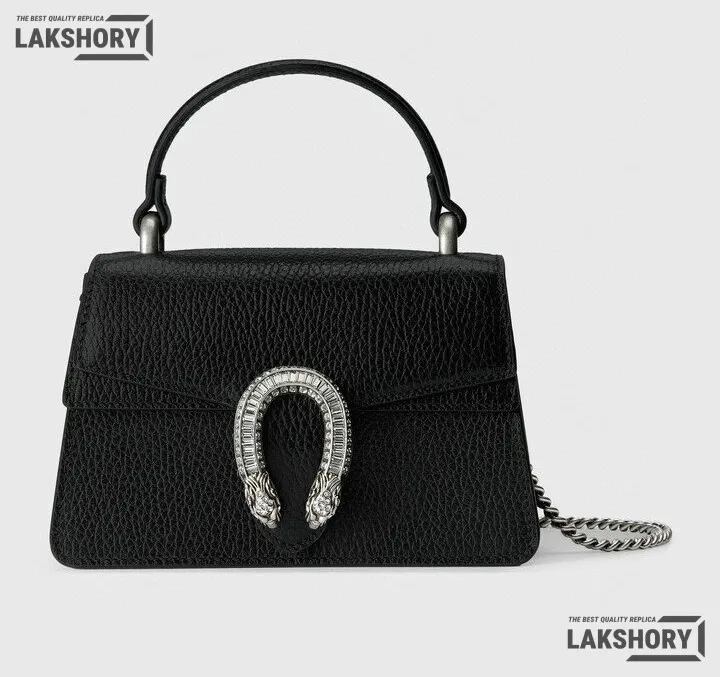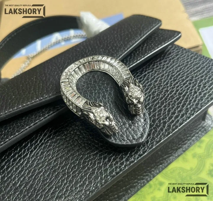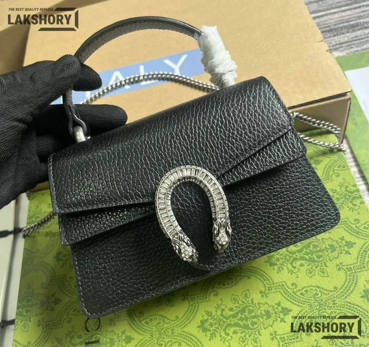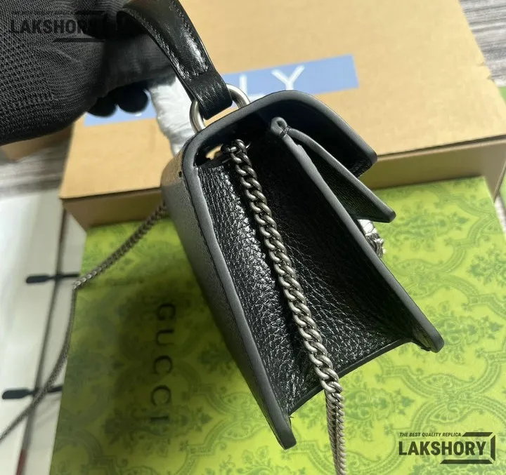 Gucci 1:1 Mirror Replica Crystal Mini Dionysus Black Top Handle Bag 18CM/7.1IN