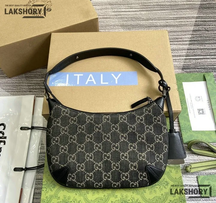 Gucci 1:1 Mirror Replica Denim GG Horsebit Slim Small Bag Black 24CM/9.4IN