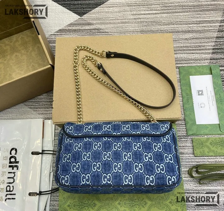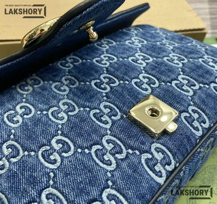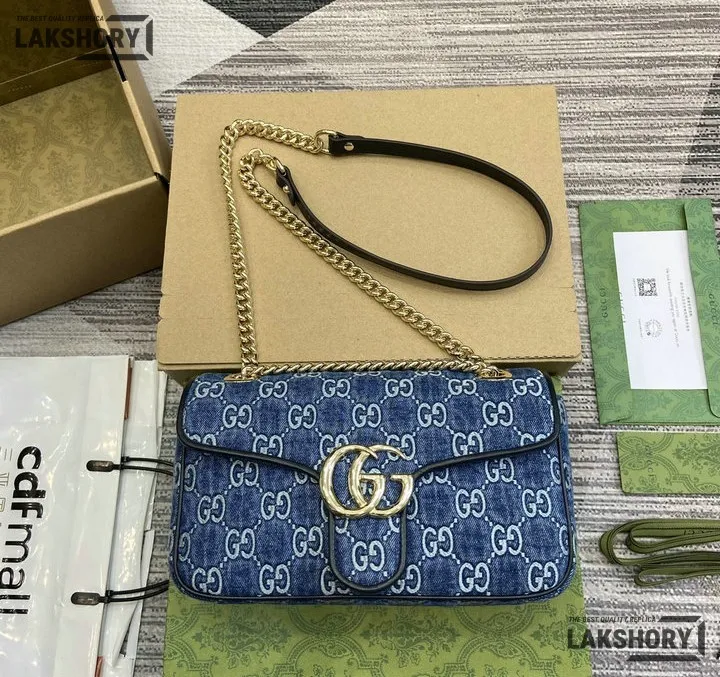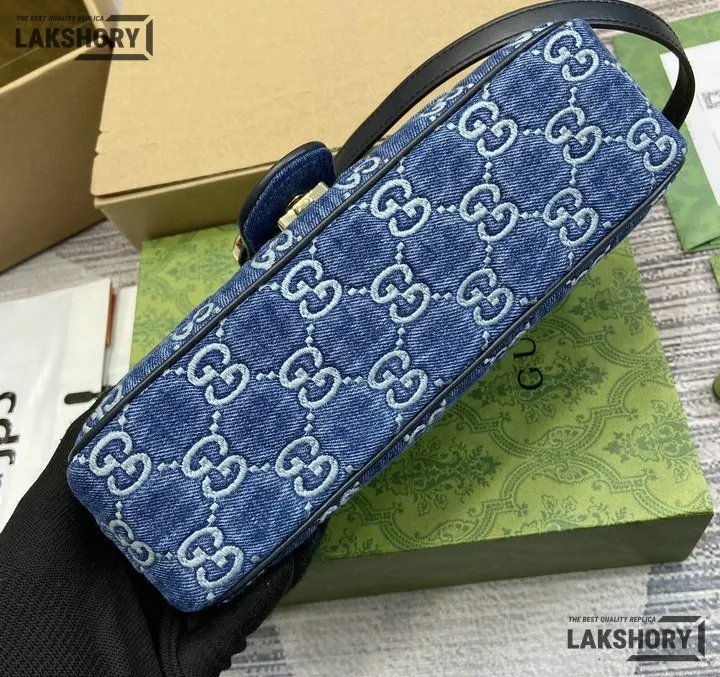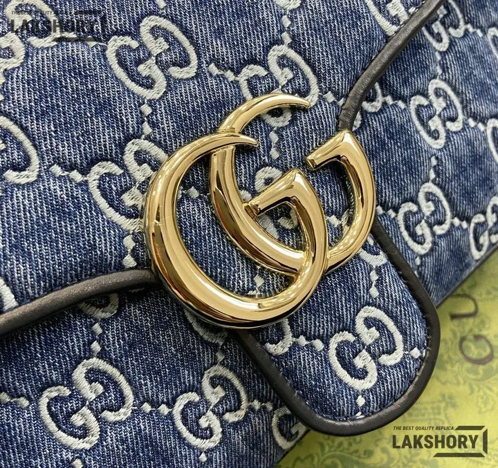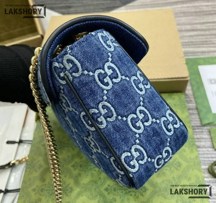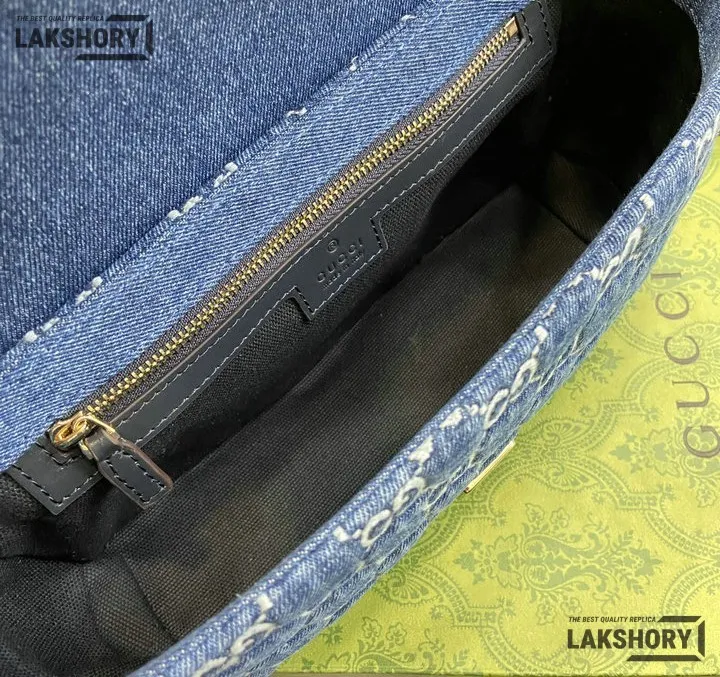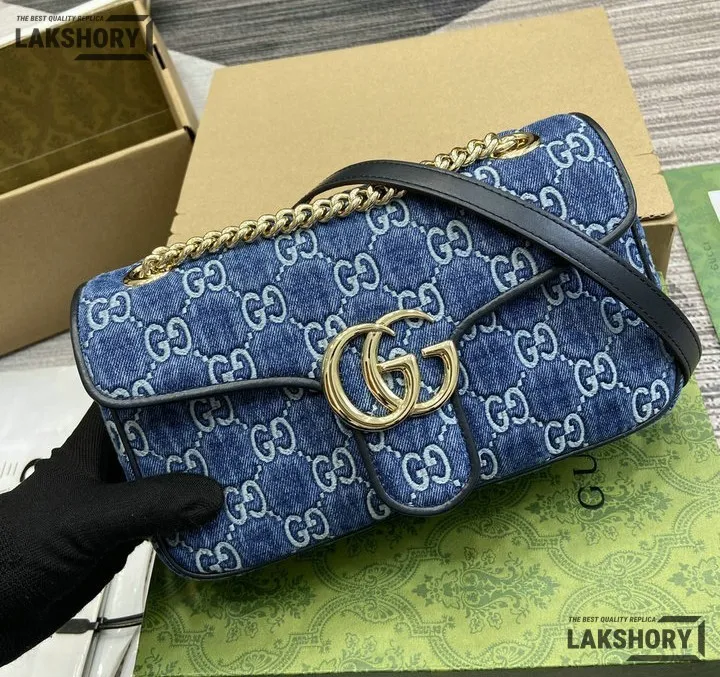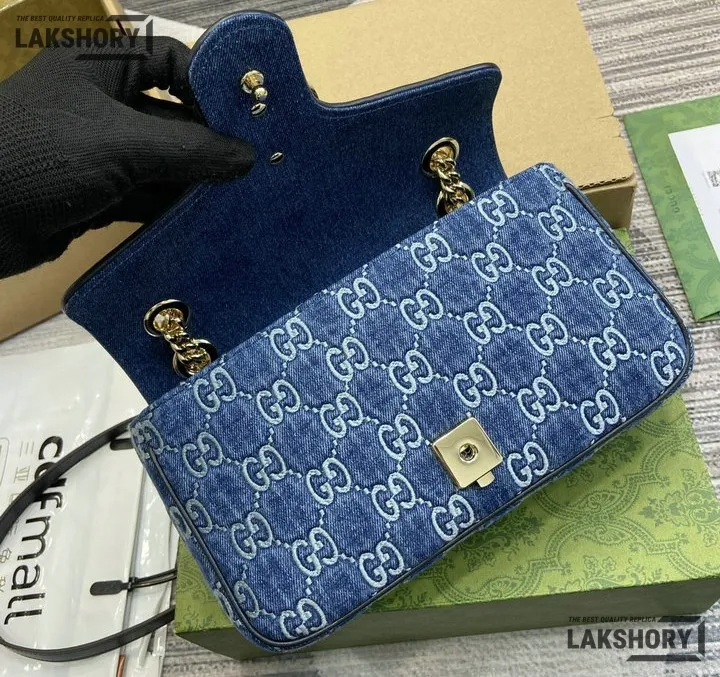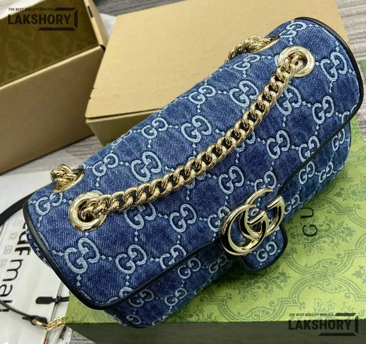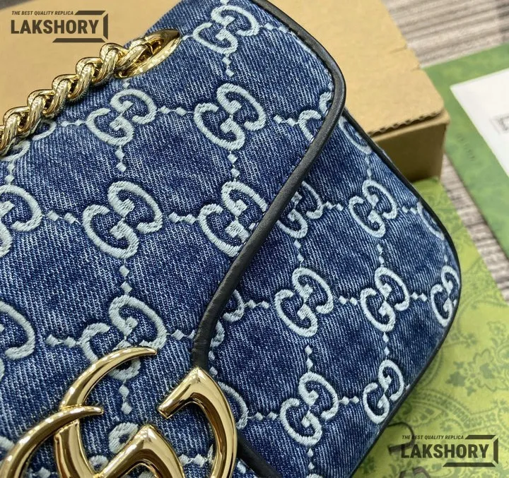 Gucci 1:1 Mirror Replica Denim Matelasse Medium GG Marmont Blue 26CM/10.2IN