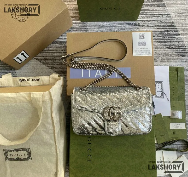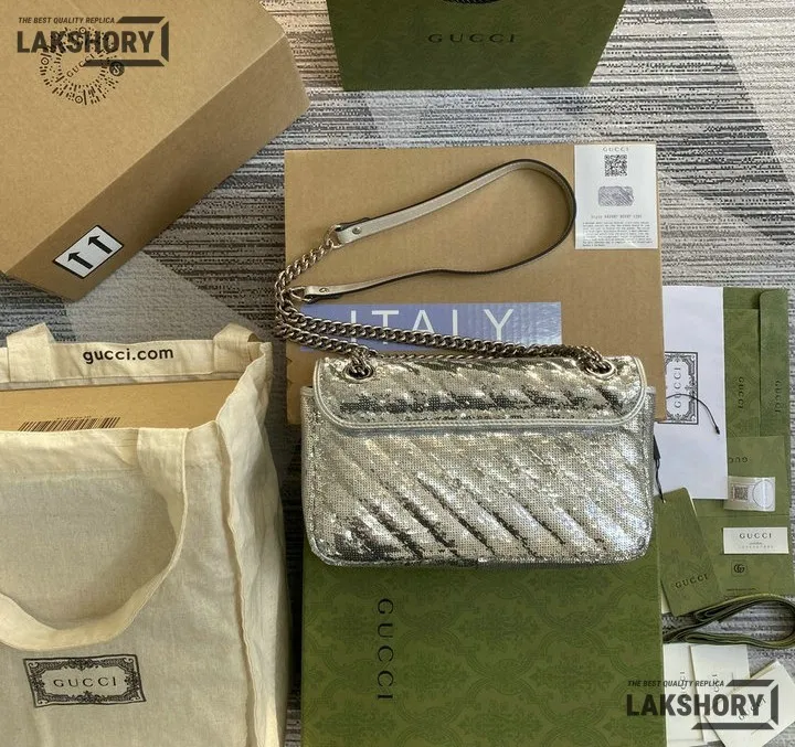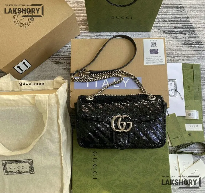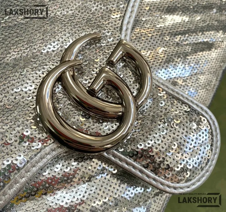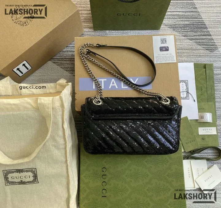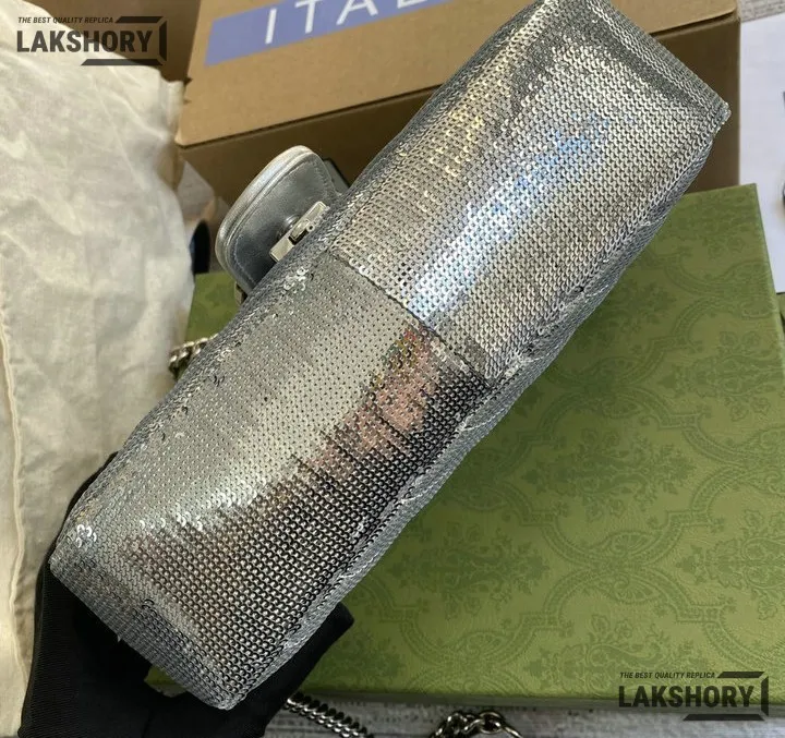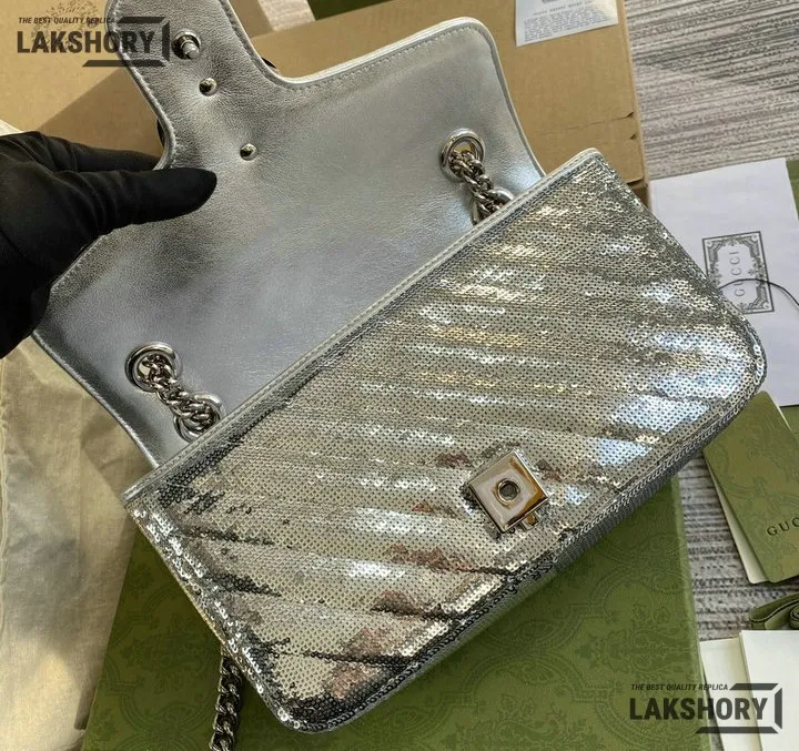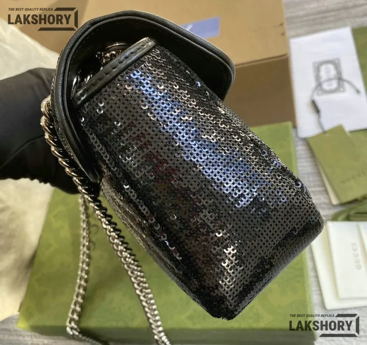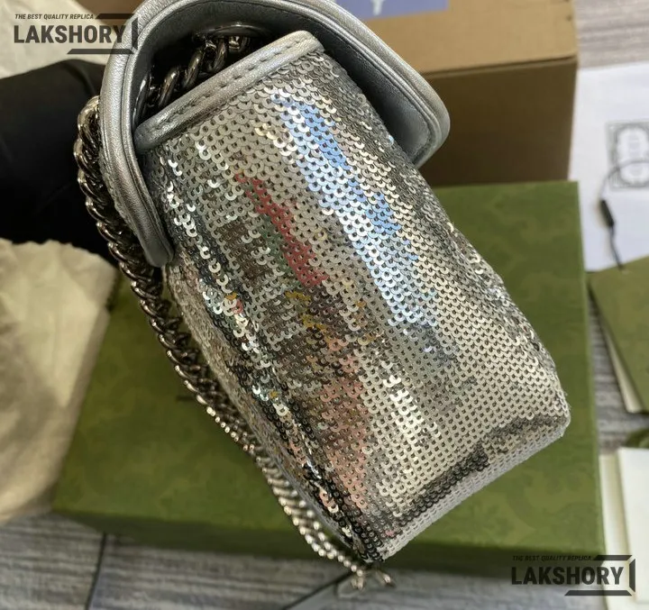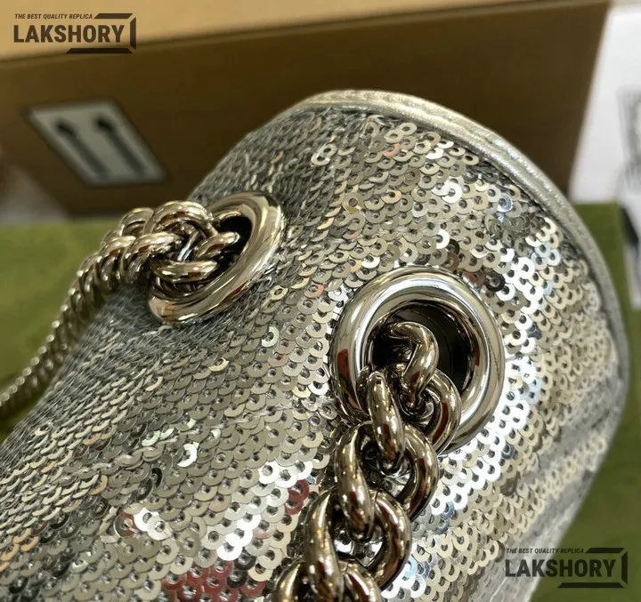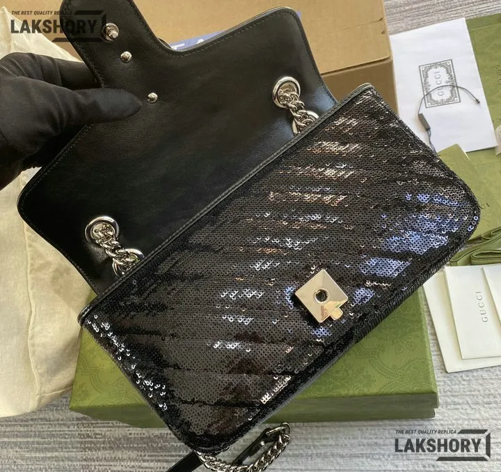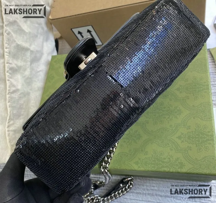 Gucci 1:1 Mirror Replica Diagonal GG Medium Marmont Sequins 26CM/10.2IN