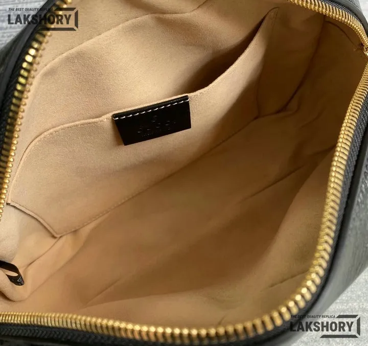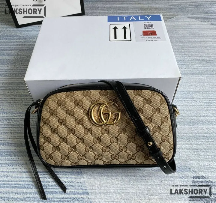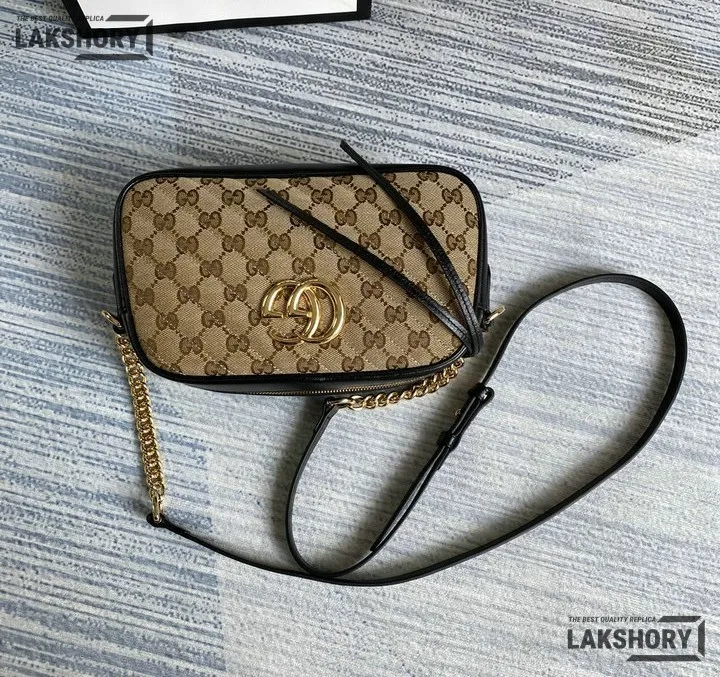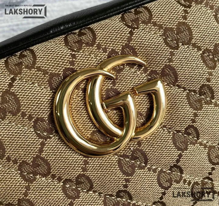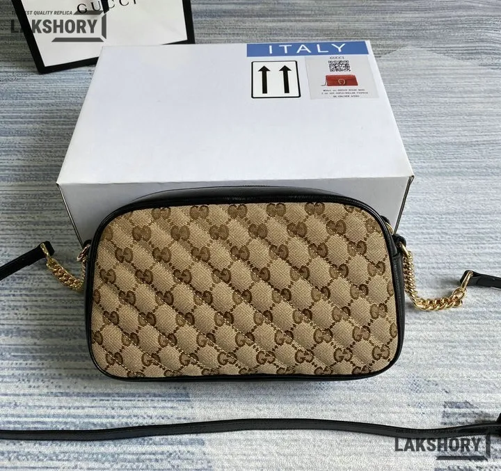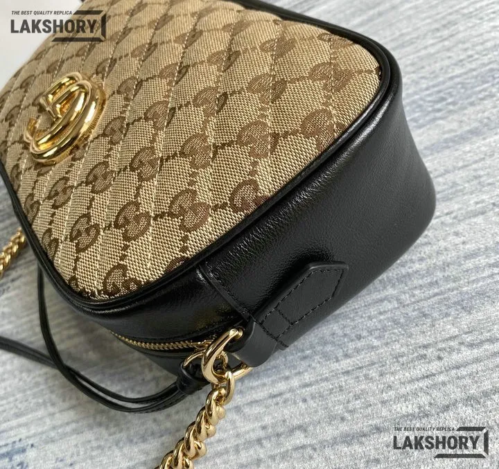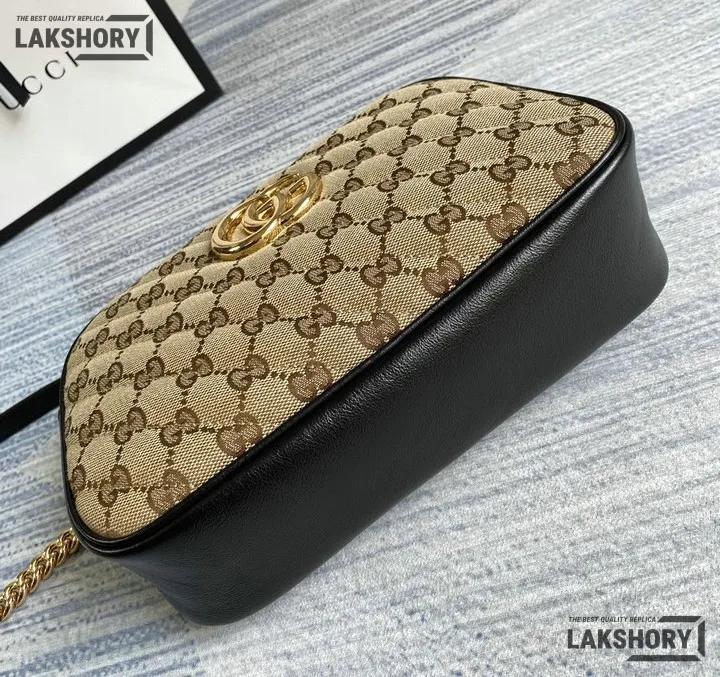 Gucci 1:1 Mirror Replica Diagonal Small Chain GG Marmont Beige Black 24CM/9.4IN