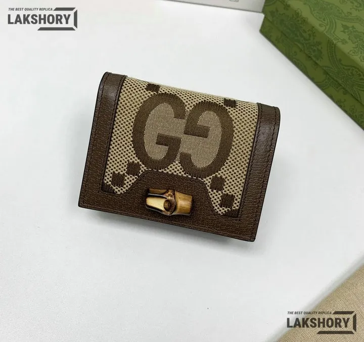 Gucci 1:1 Mirror Replica Diana Card Case Wallet Camel Ebony 19CM/7.5IN
