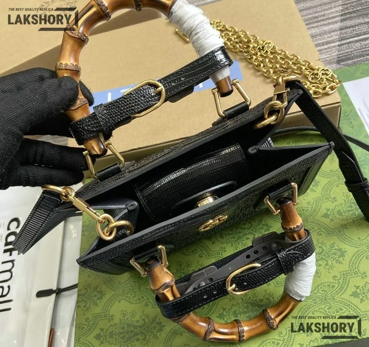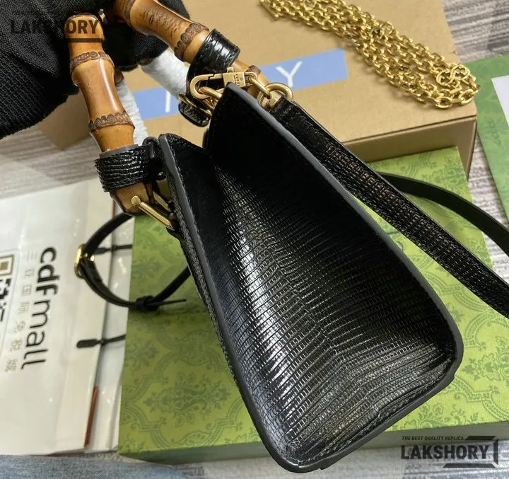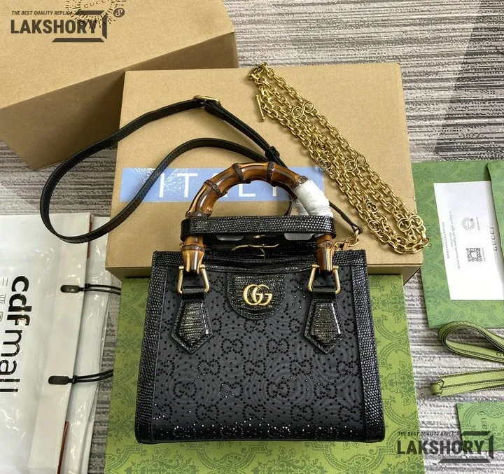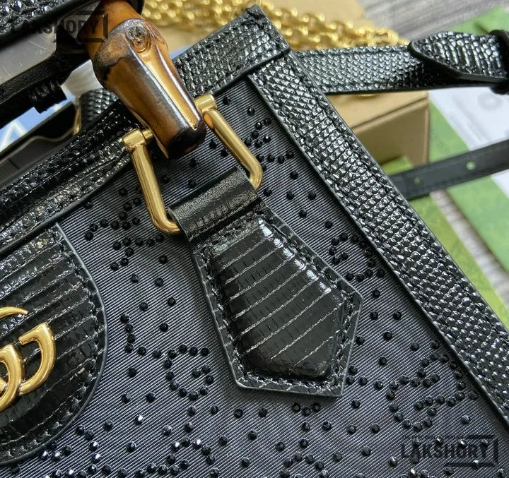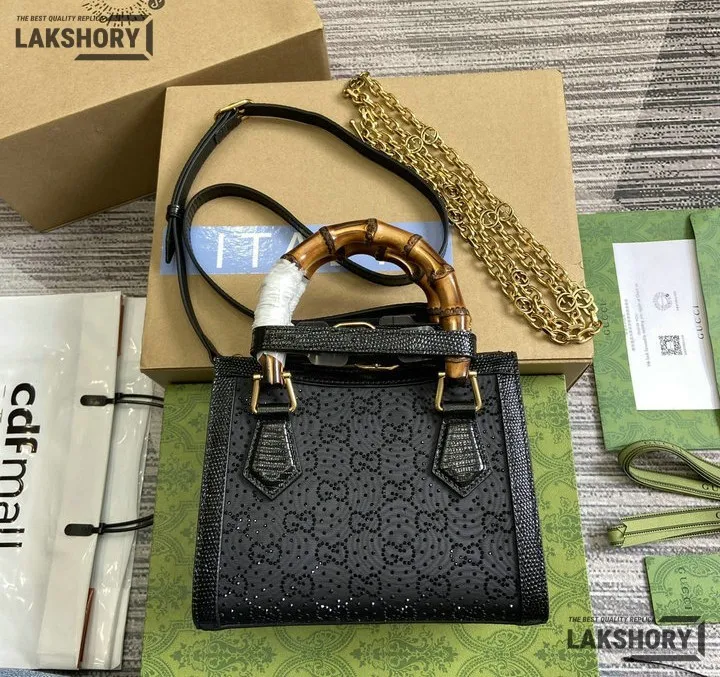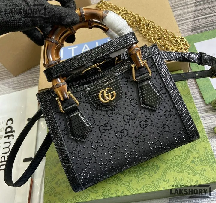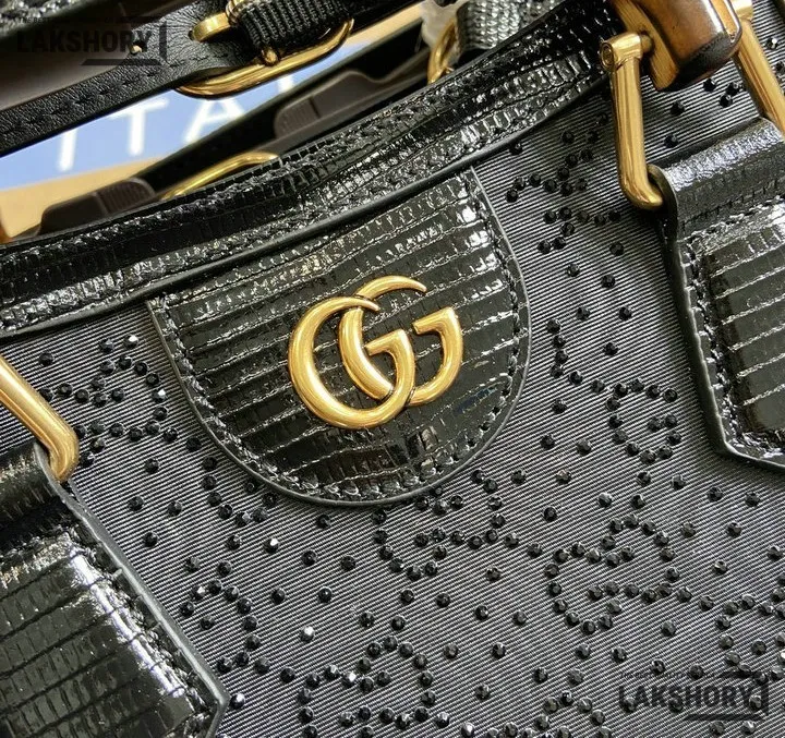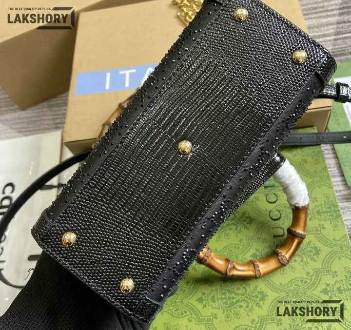 Gucci 1:1 Mirror Replica Diana Python Small Tote Bag Black 20CM/7.9IN