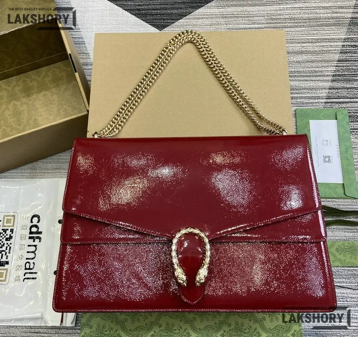 Gucci 1:1 Mirror Replica Dionysus Large Patent Leather GG Suede 42CM/16.5IN