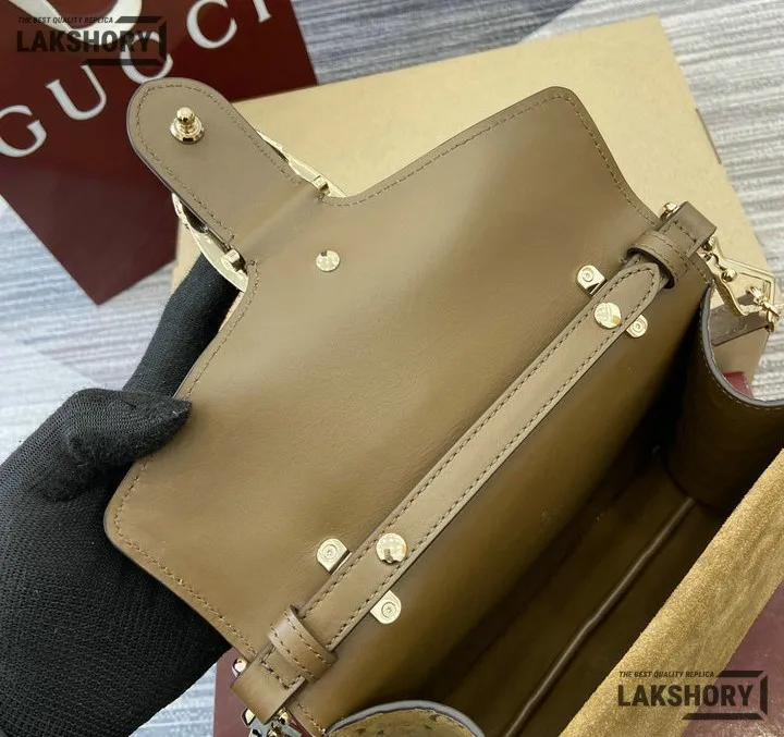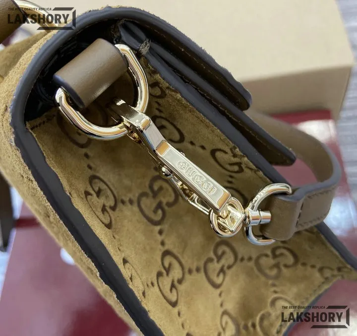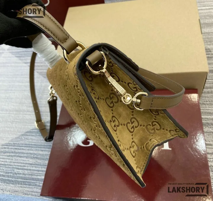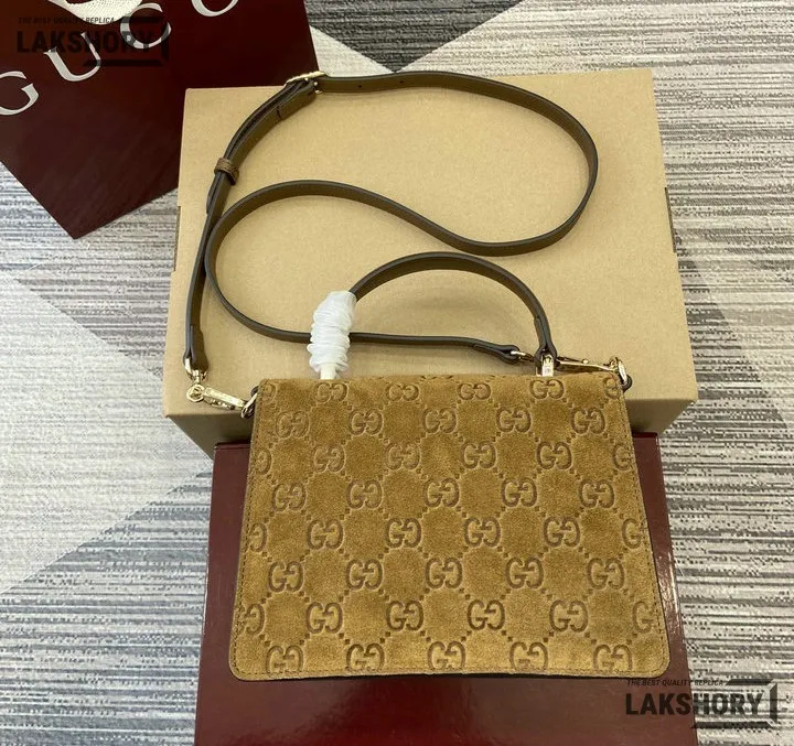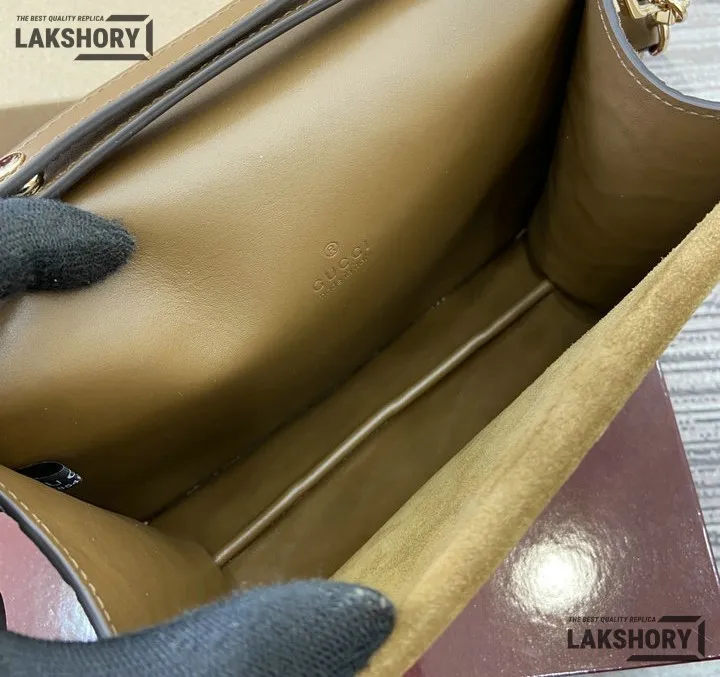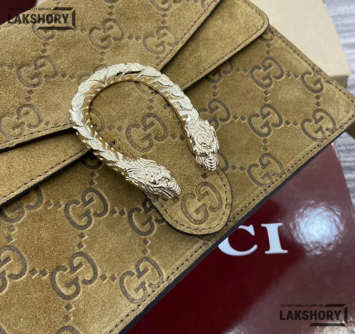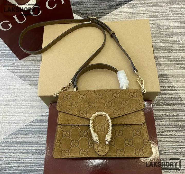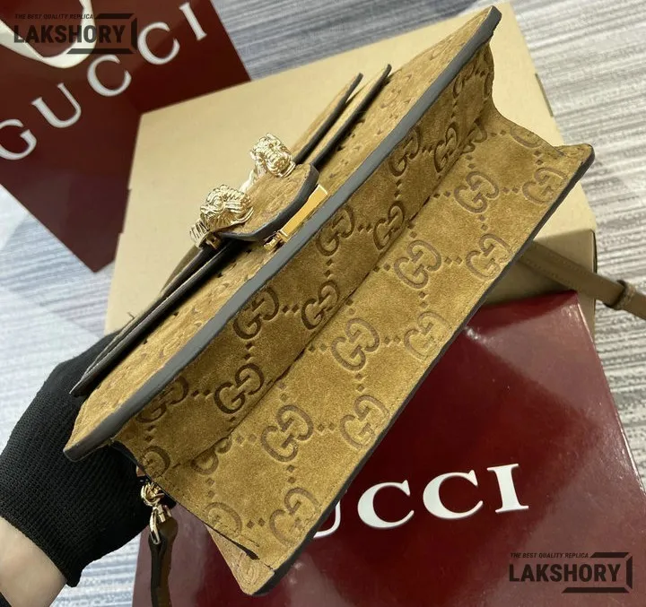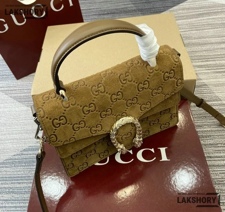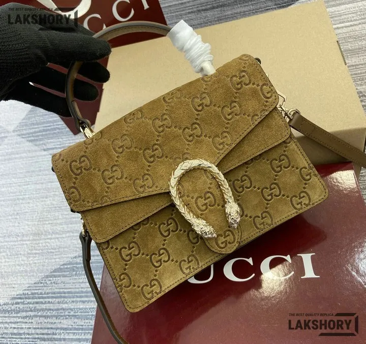 Gucci 1:1 Mirror Replica Dionysus Mini Brown GG Suede Top Handle Bag 22CM/8.7IN