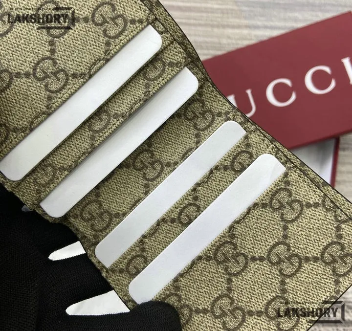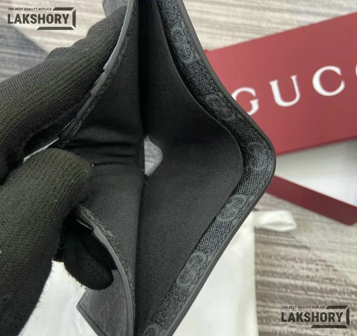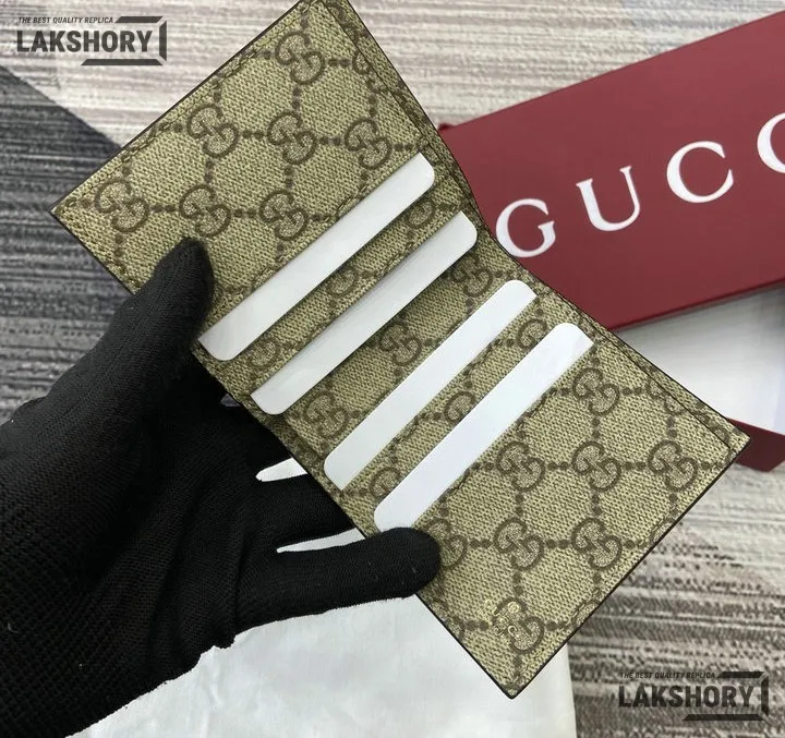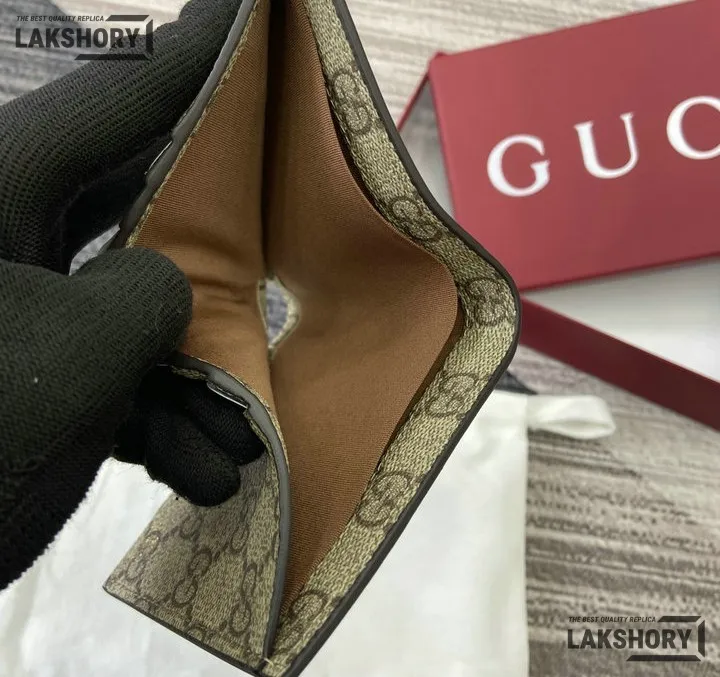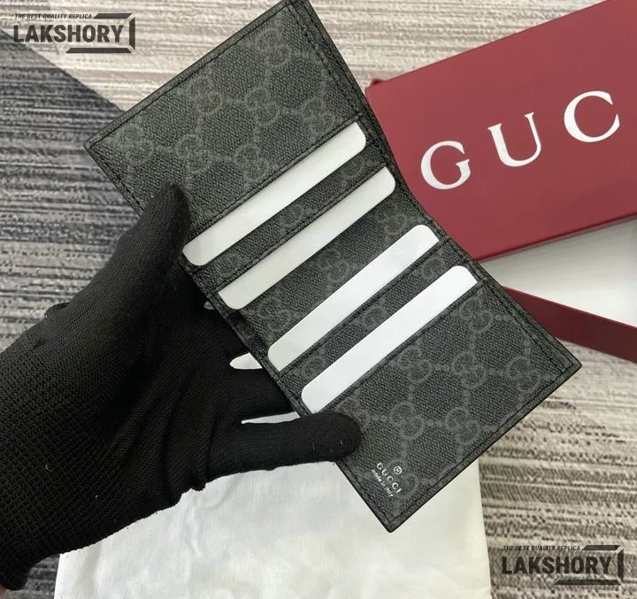 Gucci 1:1 Mirror Replica Emblem Bi-fold w/ Gucci Logo Wallet 10CM/3.9IN