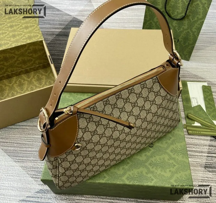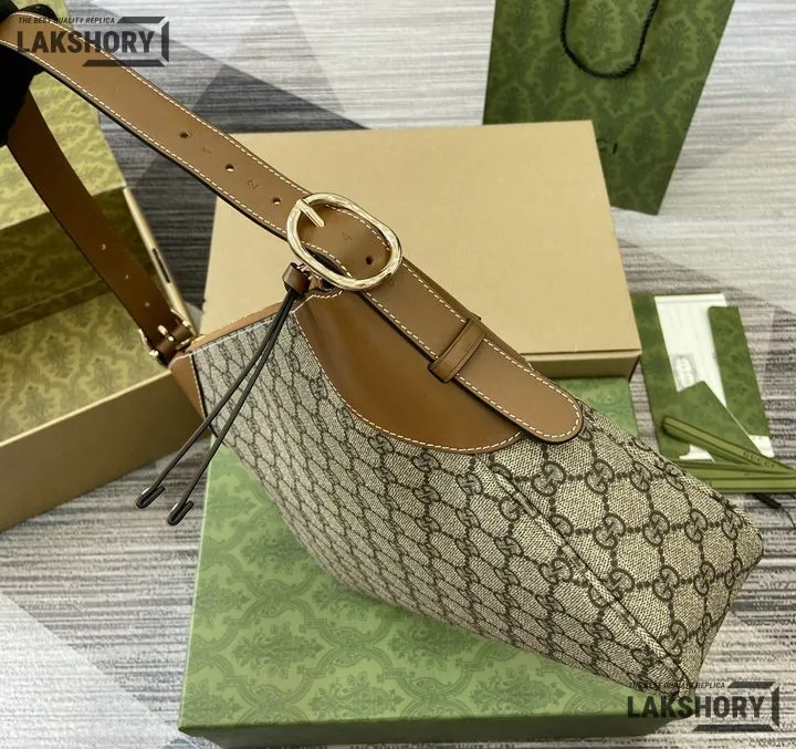 Gucci 1:1 Mirror Replica Emblem Large Bag Beige Dark Brown 36CM/14.2IN