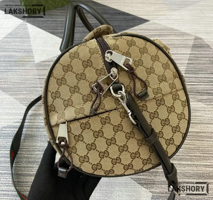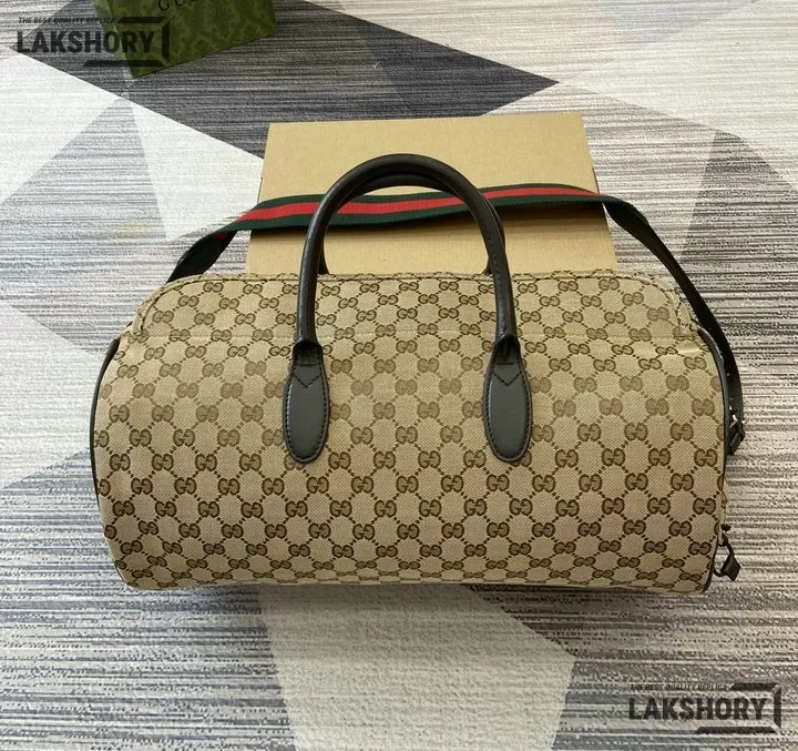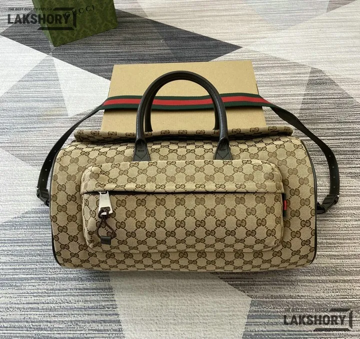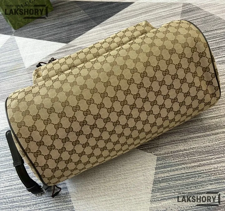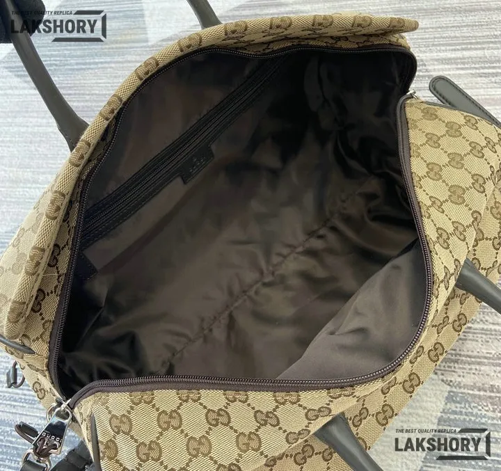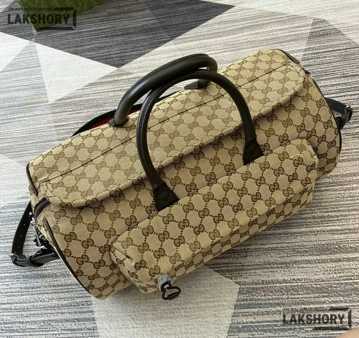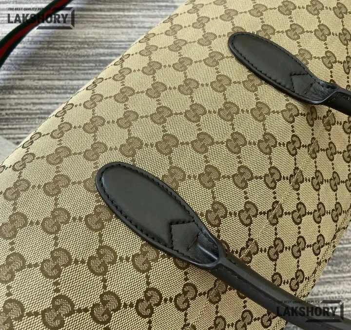 Gucci 1:1 Mirror Replica GG Canvas Large Duffle Bag Beige & Black 42CM/16.5IN