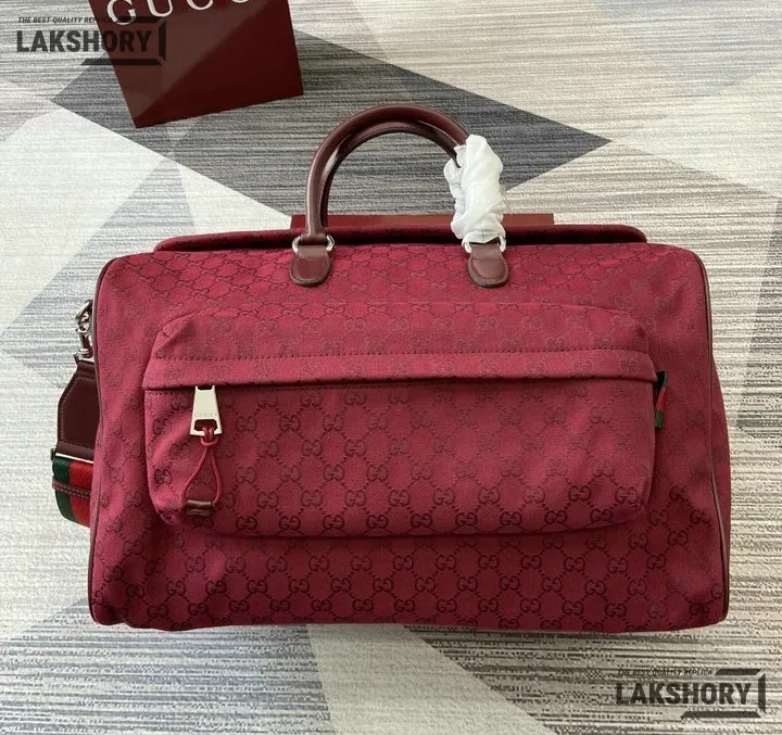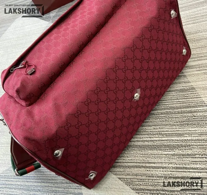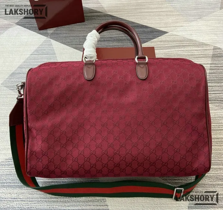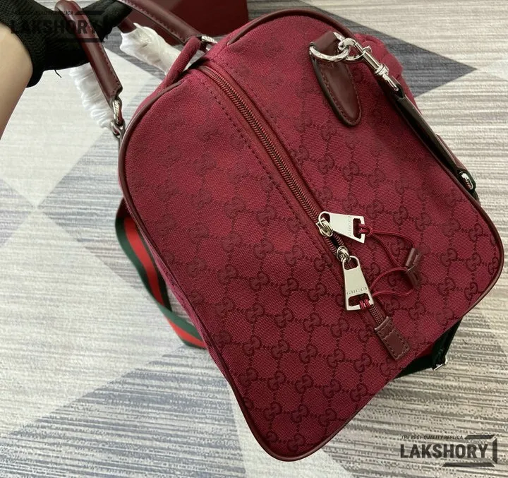 Gucci 1:1 Mirror Replica GG Canvas Large Duffle Bag Burgundy 45CM/17.7IN