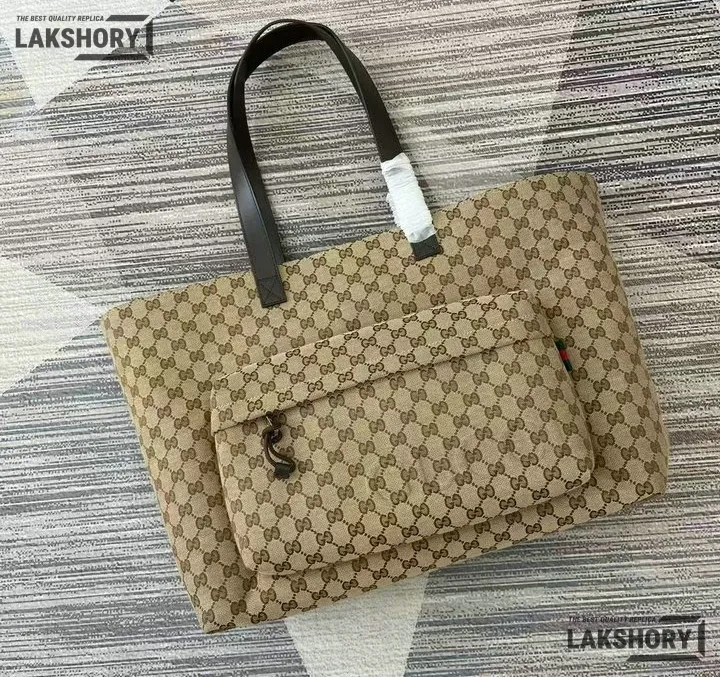 Gucci 1:1 Mirror Replica GG Canvas Maxi Tote Bag Beige Black 45CM/17.7IN