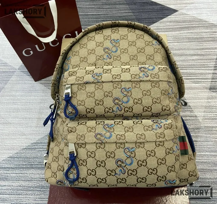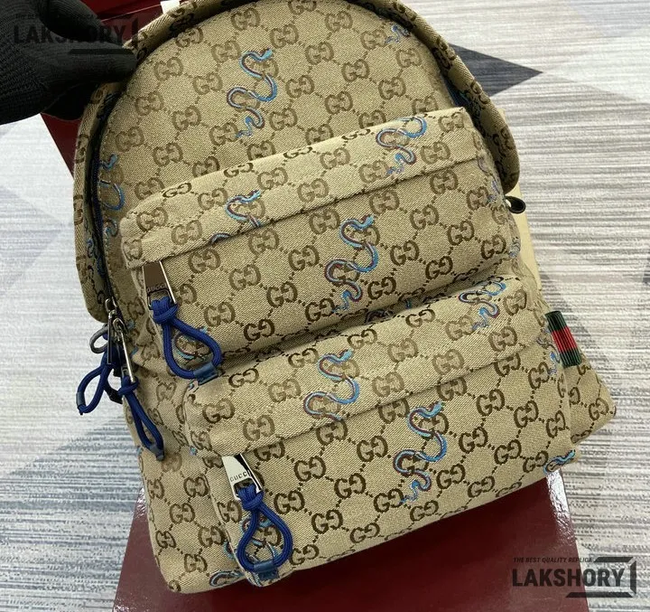 Gucci 1:1 Mirror Replica GG Canvas Medium Backpack Beige & Dark Brown 40CM/15.7IN
