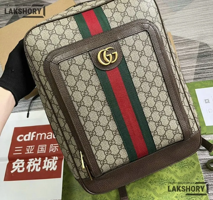 Gucci 1:1 Mirror Replica GG Coated Ophidia Medium Backpack Beige Ebony 40CM/15.7IN
