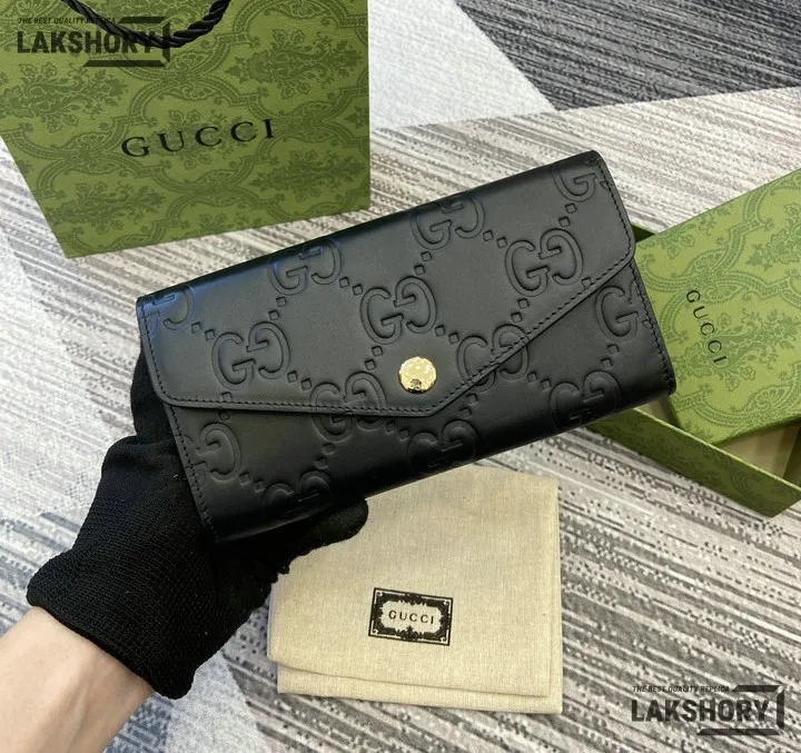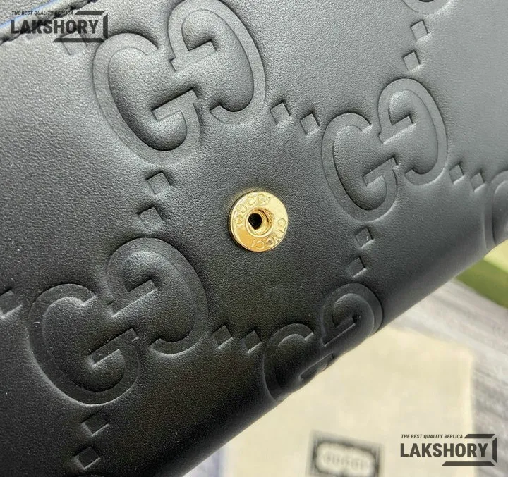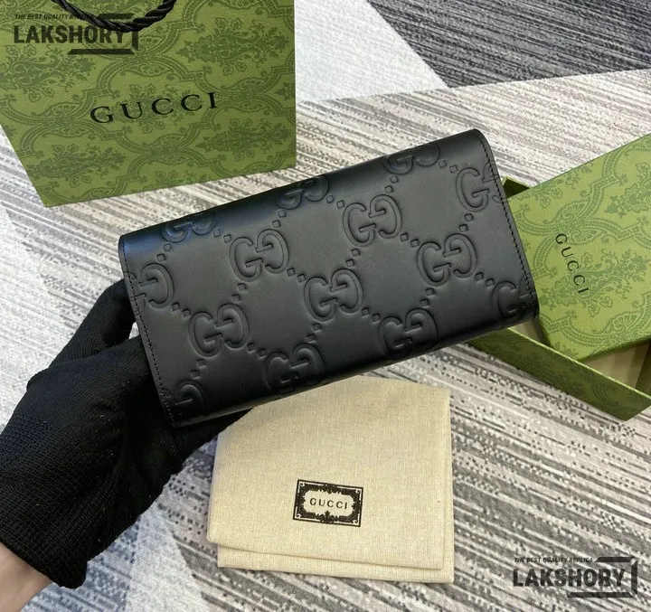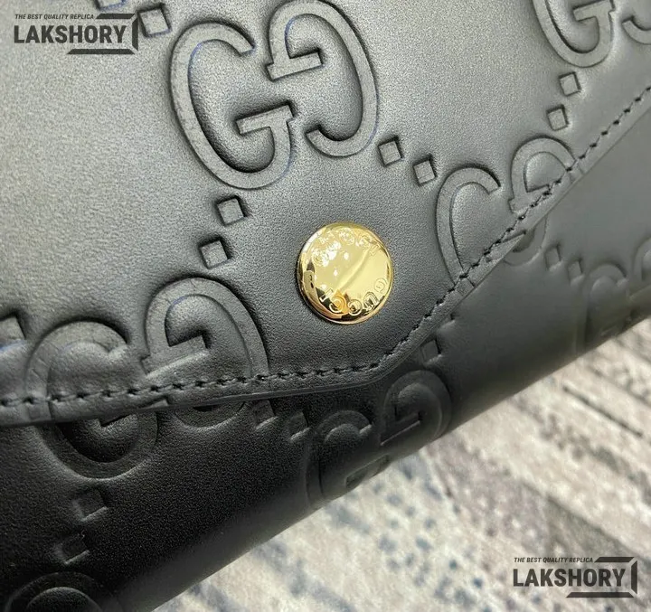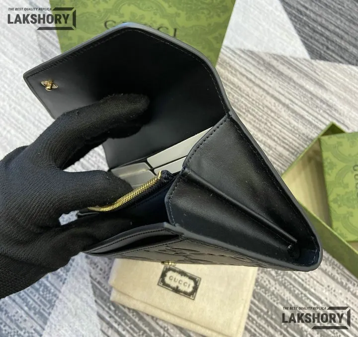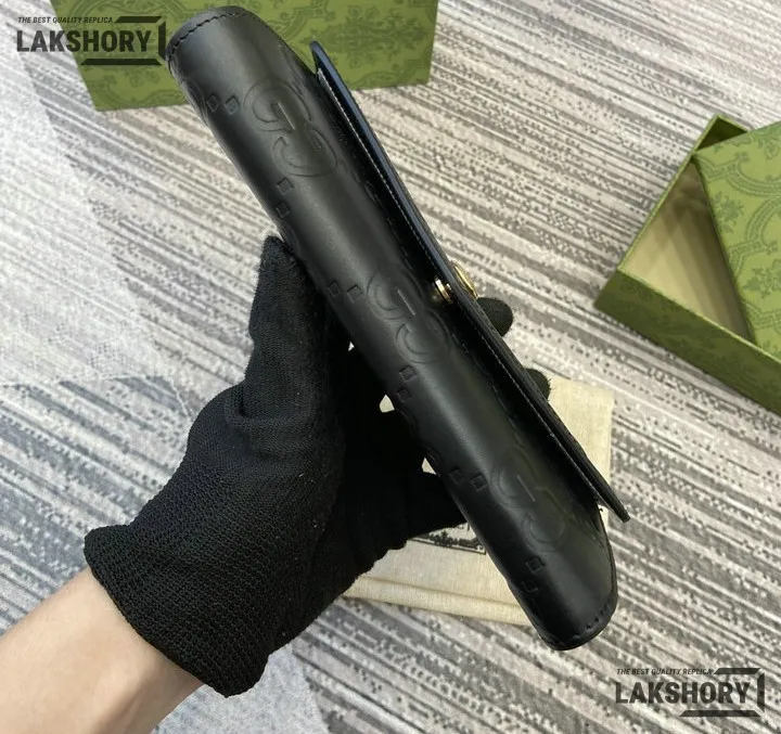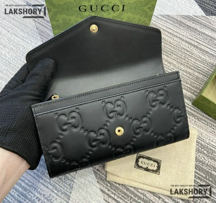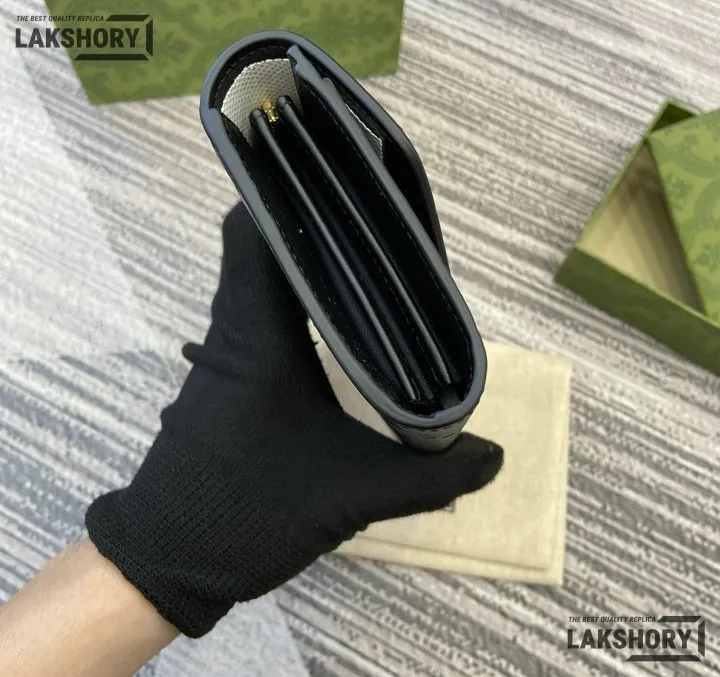 Gucci 1:1 Mirror Replica GG Continental Wallet Leather Black 19CM/7.5IN