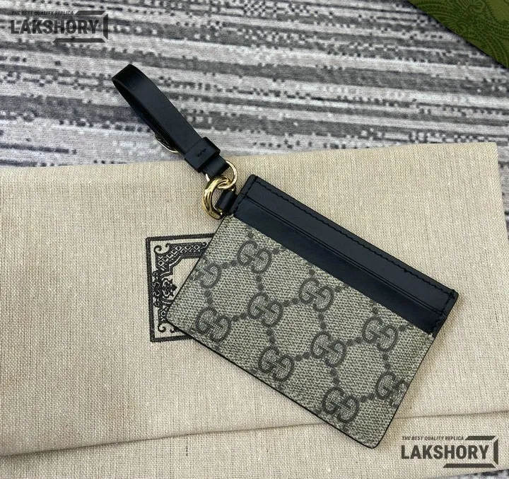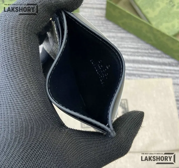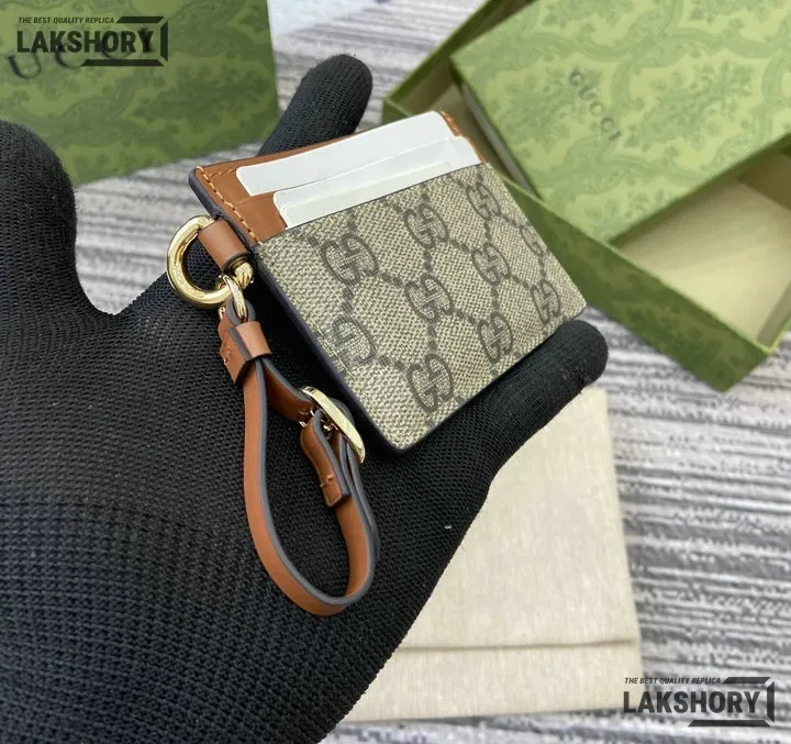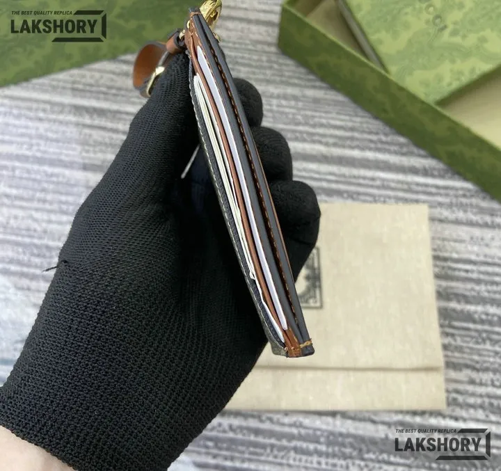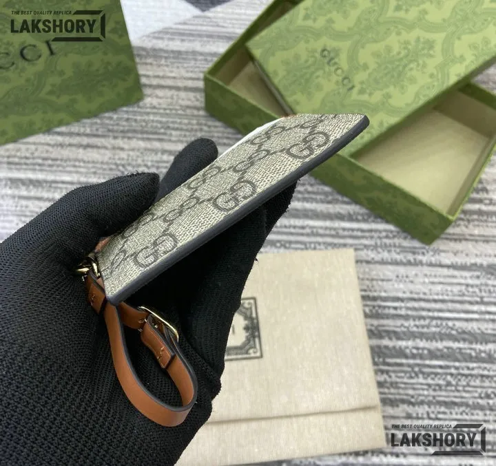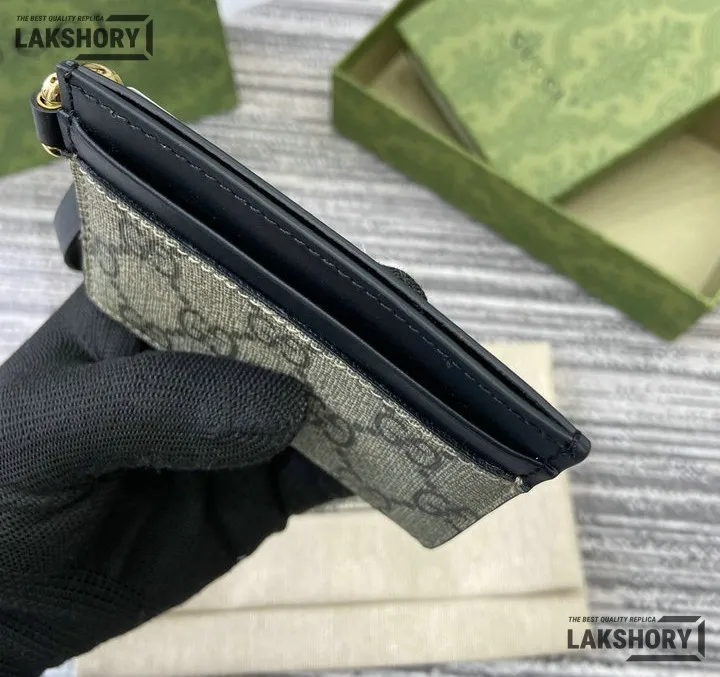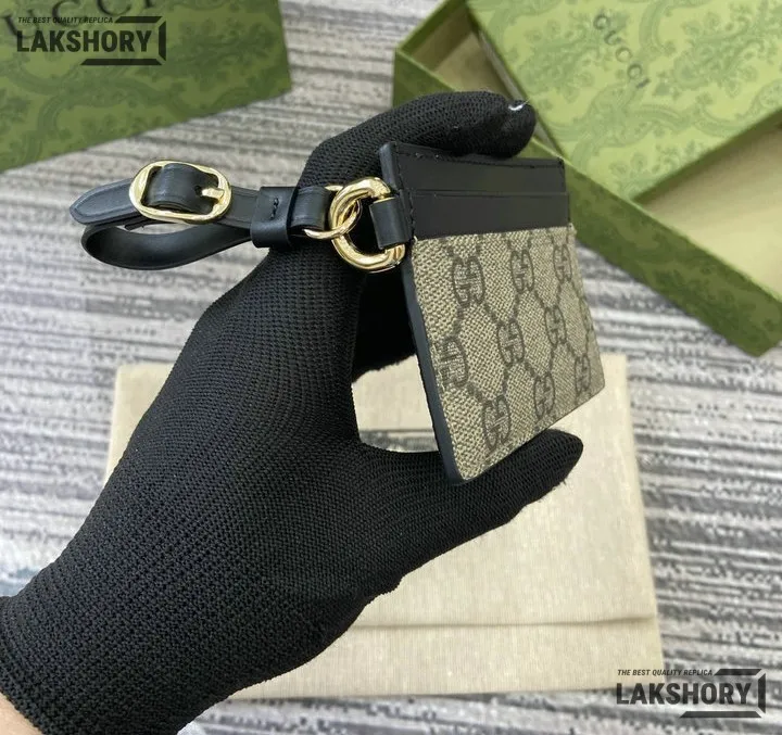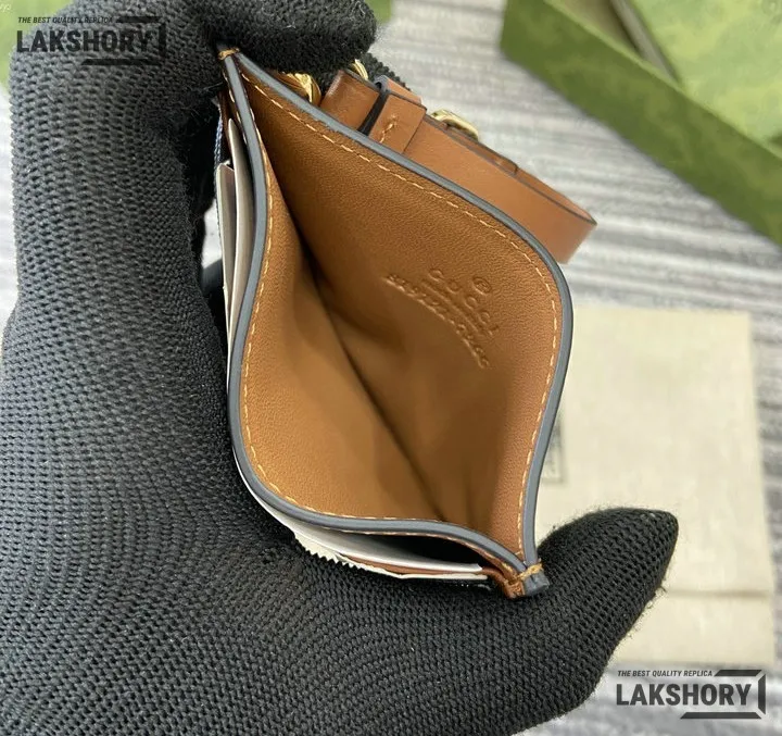 Gucci 1:1 Mirror Replica GG Emblem Card Case With Strap 7CM/2.8IN