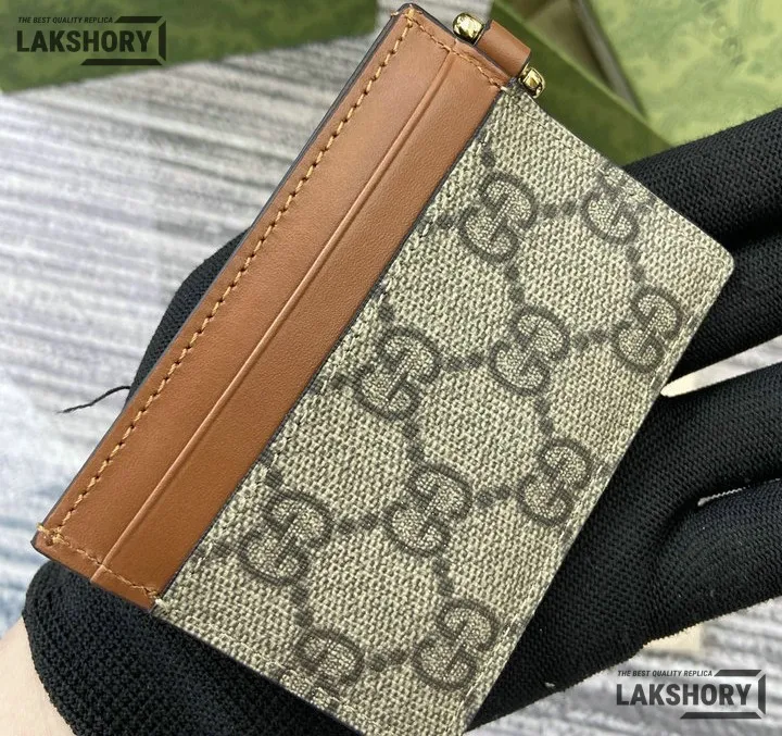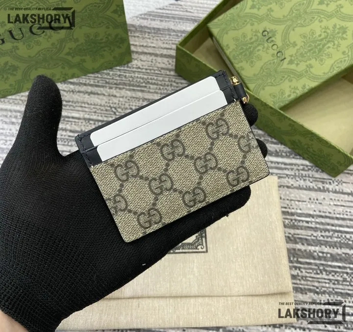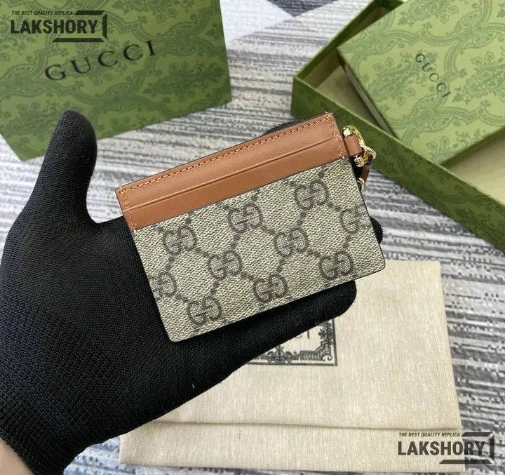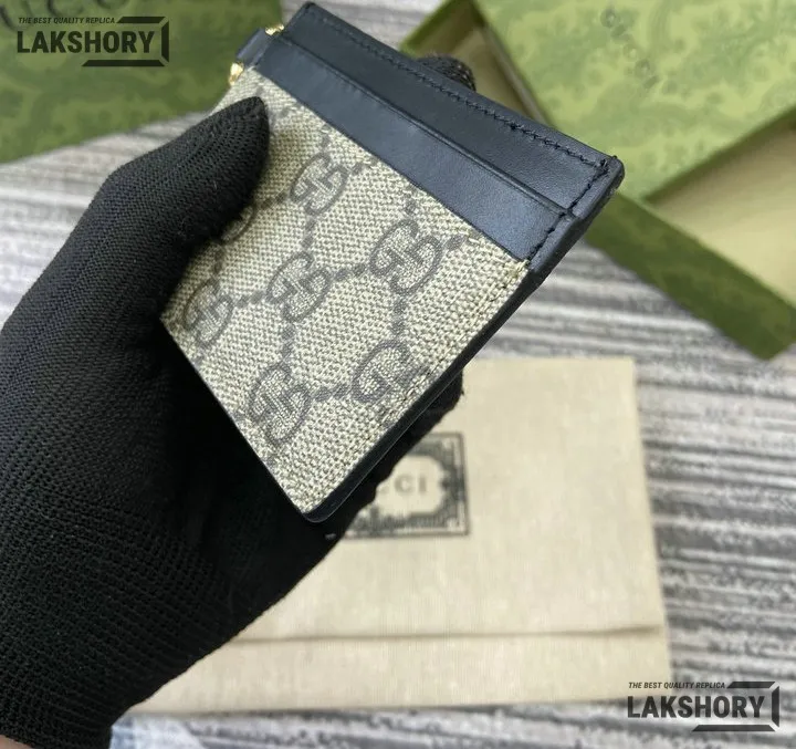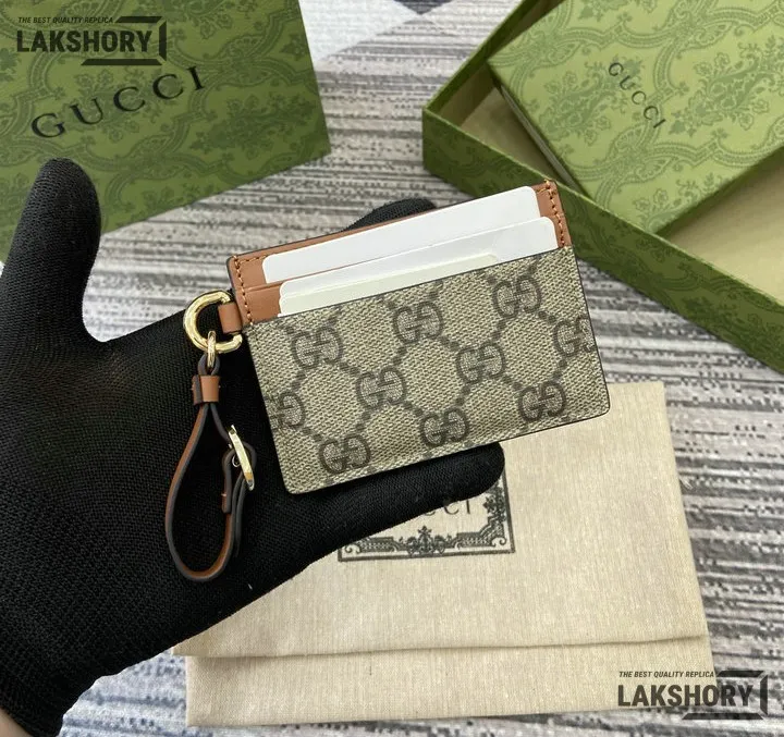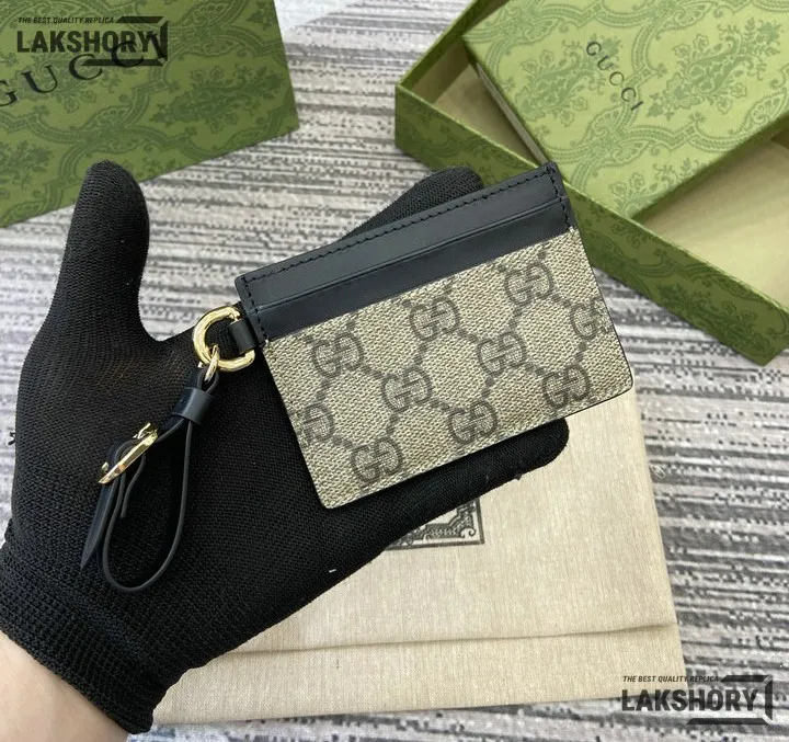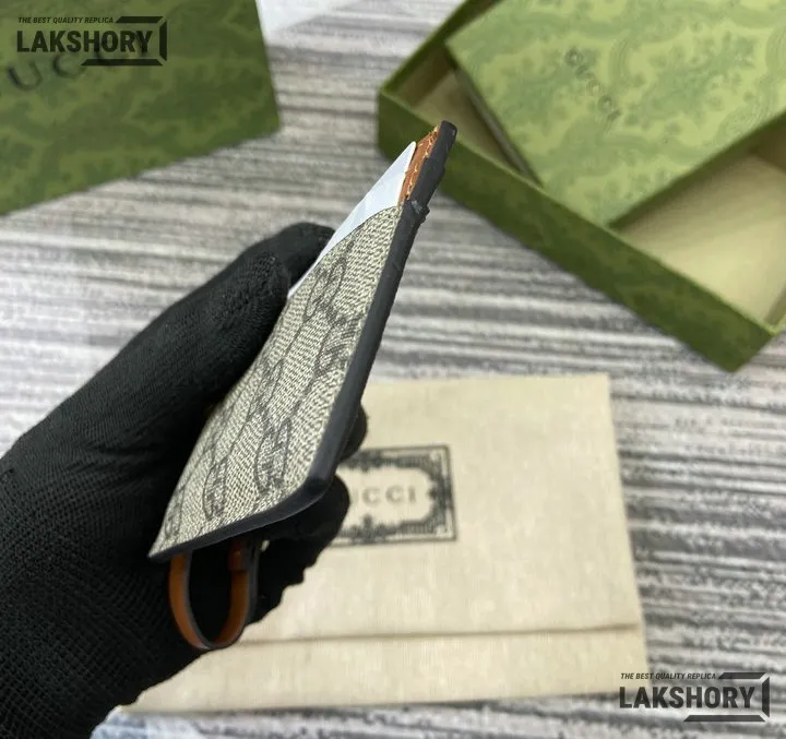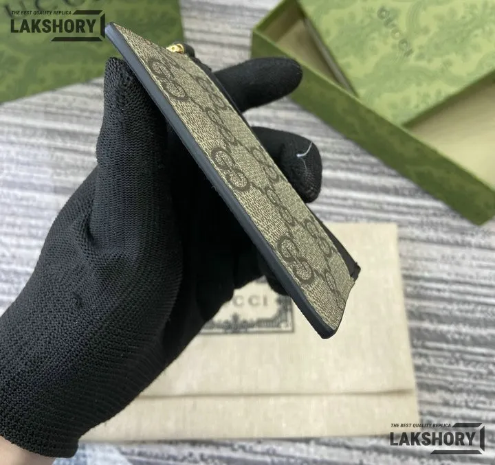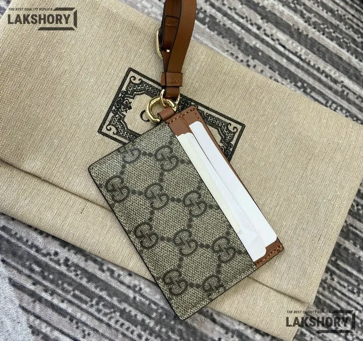 Gucci 1:1 Mirror Replica GG Emblem Card Case With Strap 7CM/2.8IN