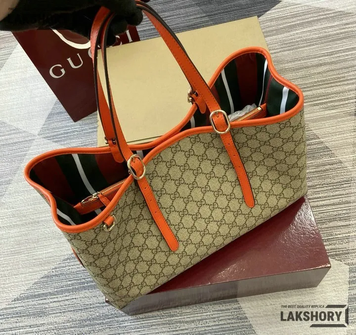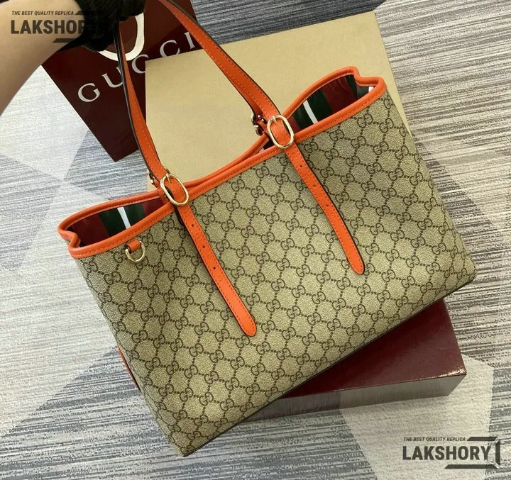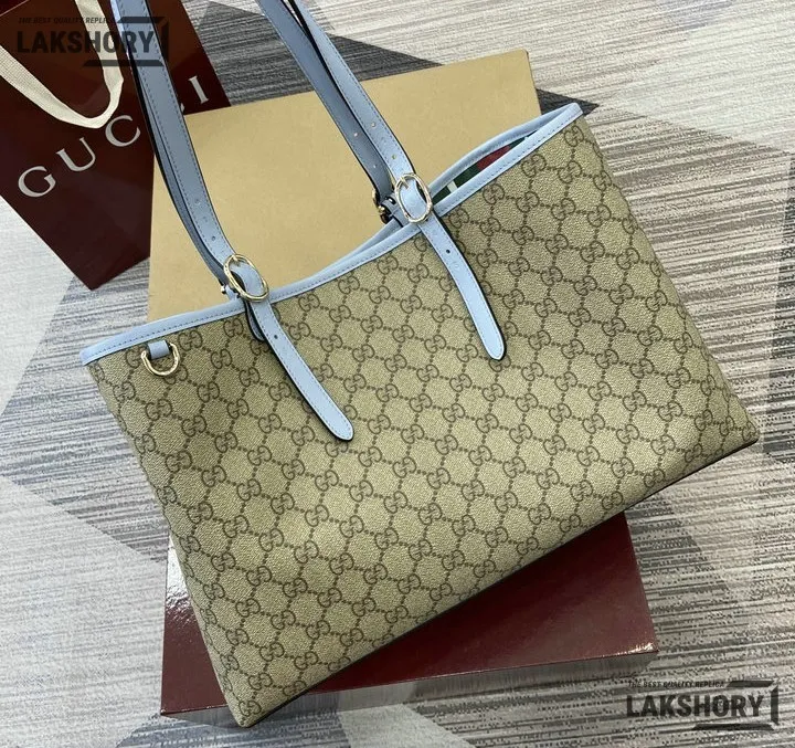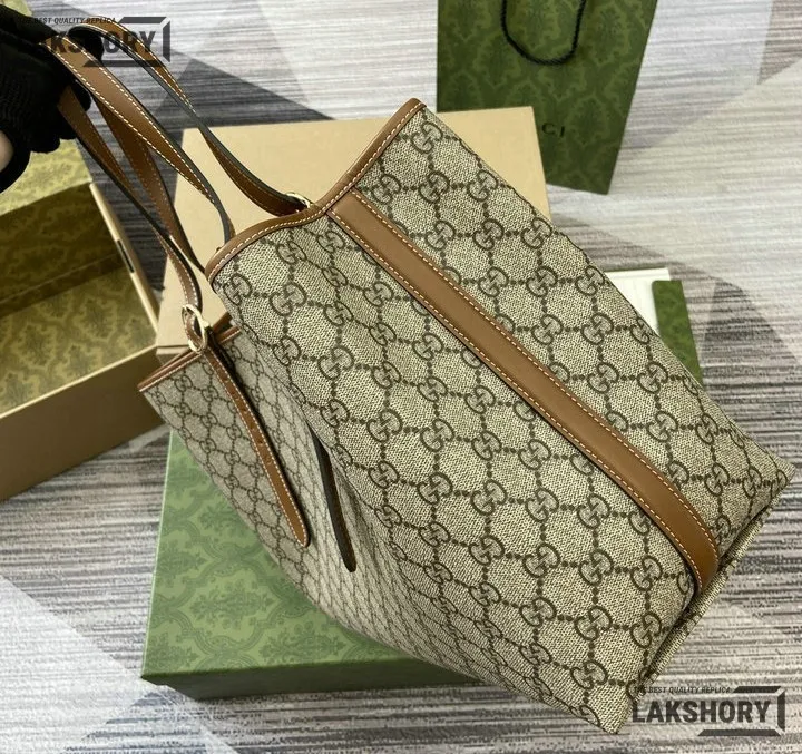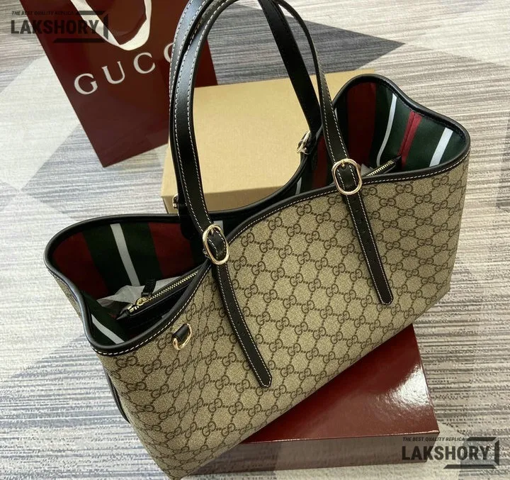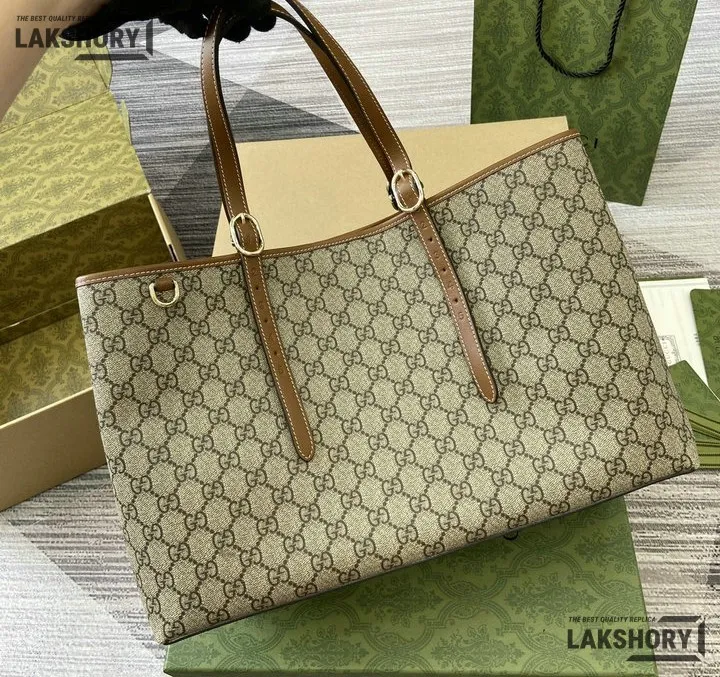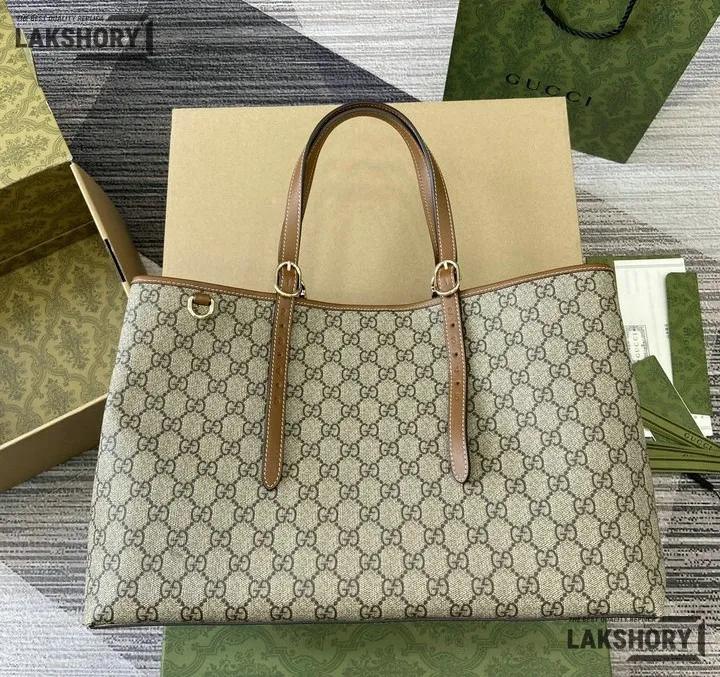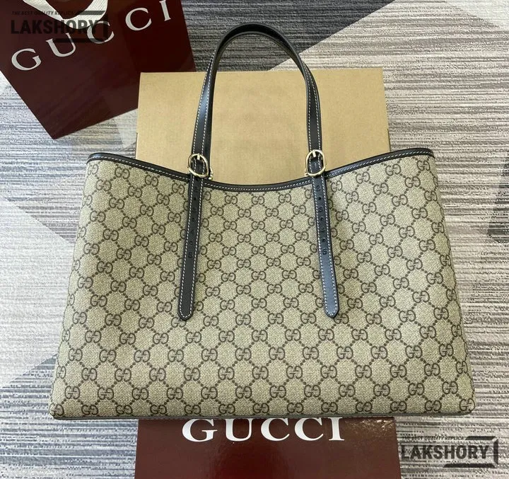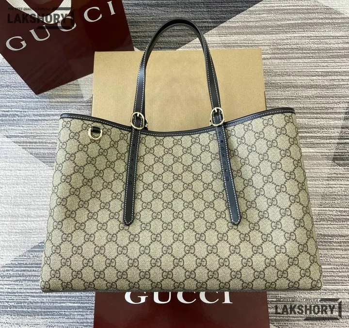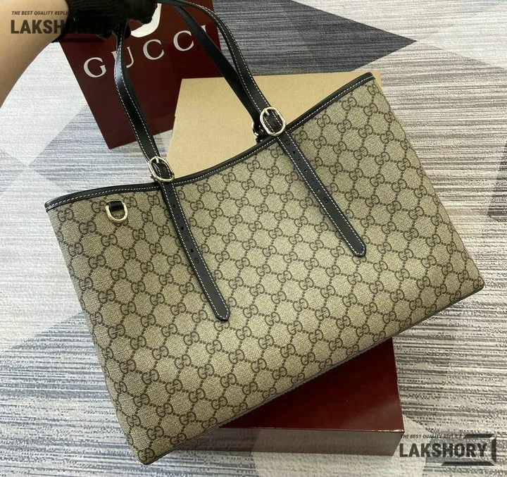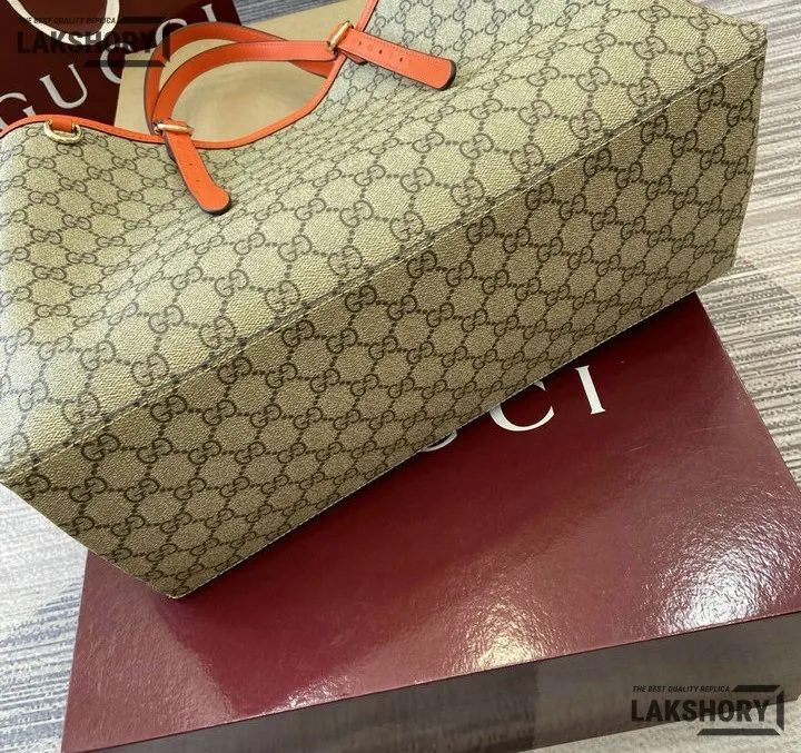 Gucci 1:1 Mirror Replica GG Emblem Leather Large Tote Bag 38CM/15IN