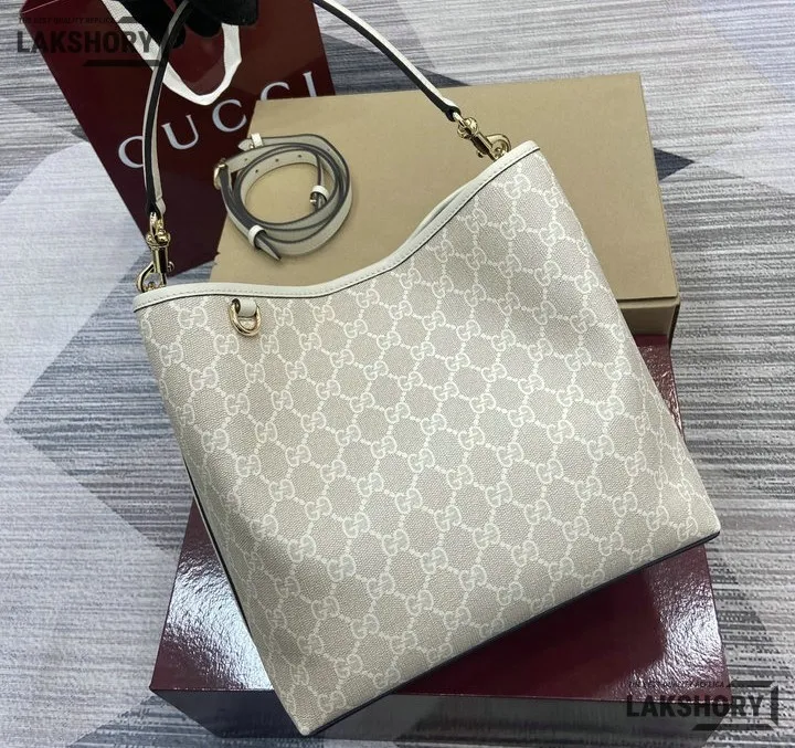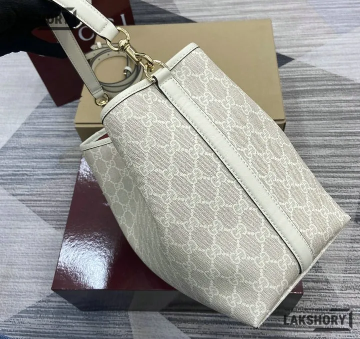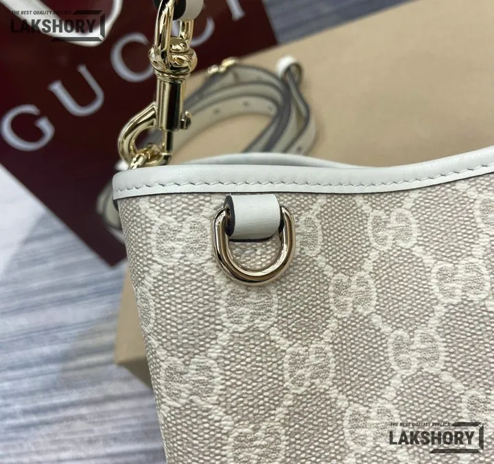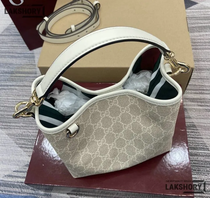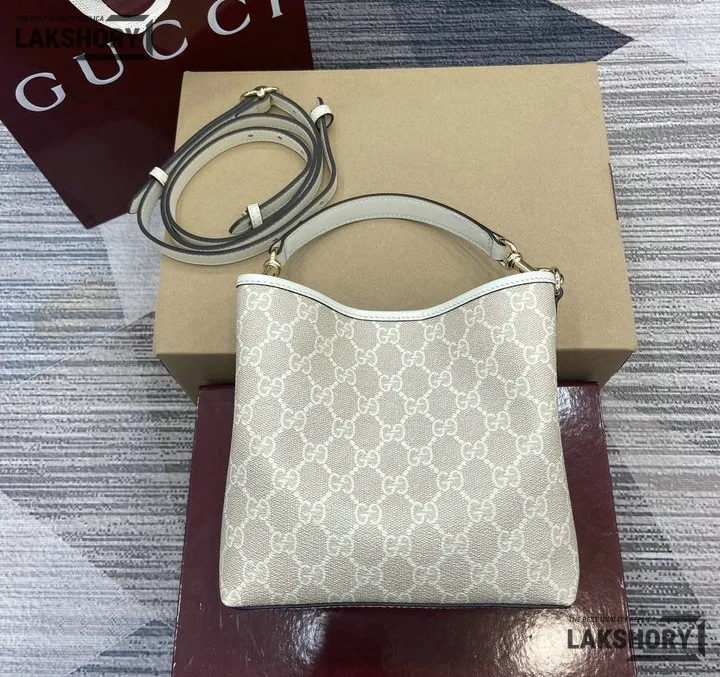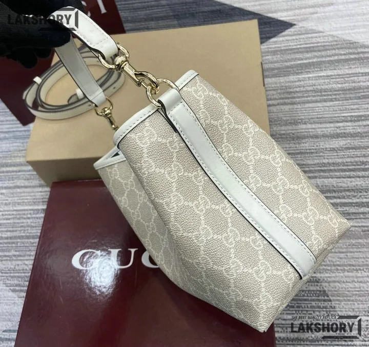 Gucci 1:1 Mirror Replica GG Emblem Medium Bucket Bag Beige 25CM/9.8IN