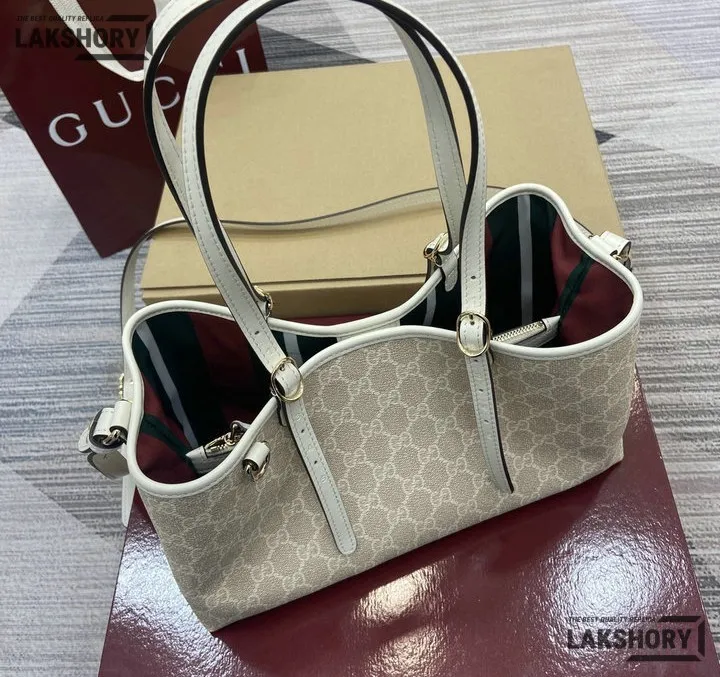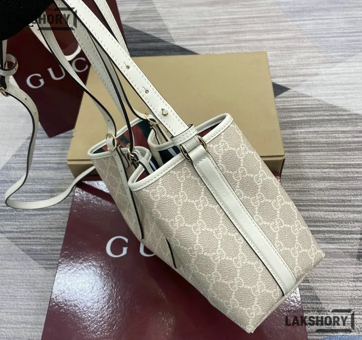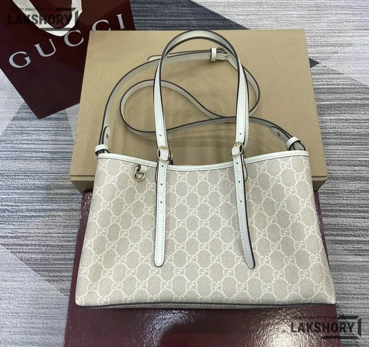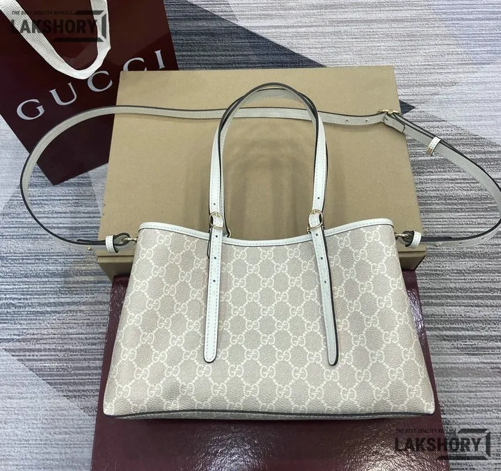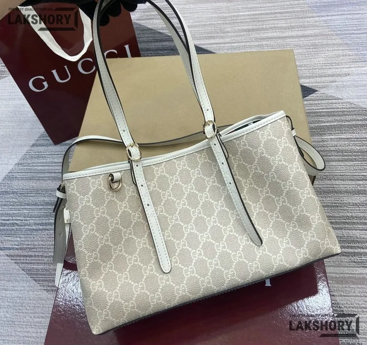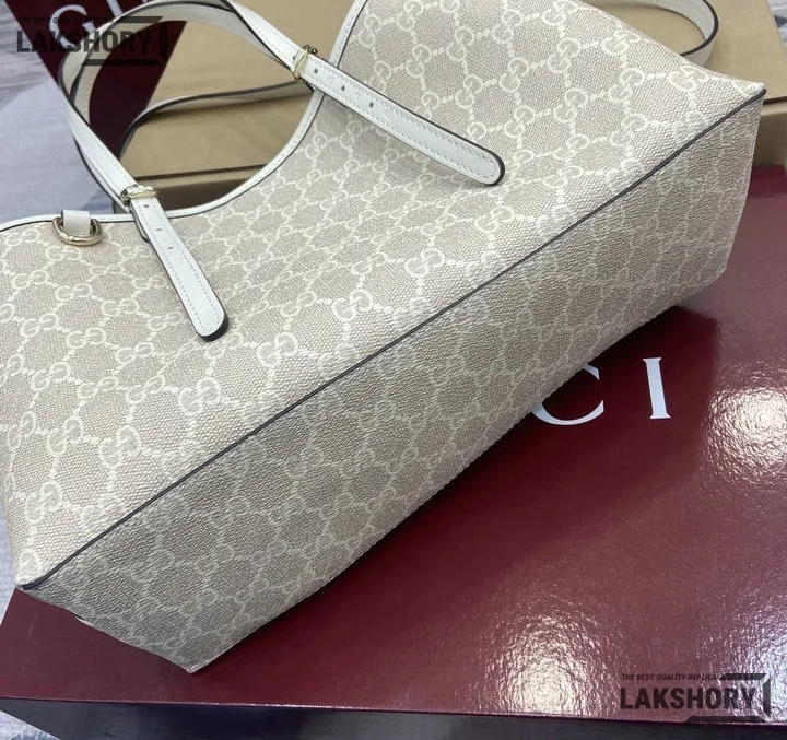 Gucci 1:1 Mirror Replica GG Emblem Medium Tote Bag Beige 31CM/12.2IN