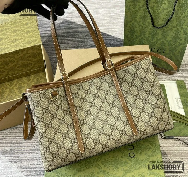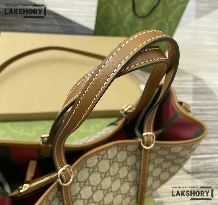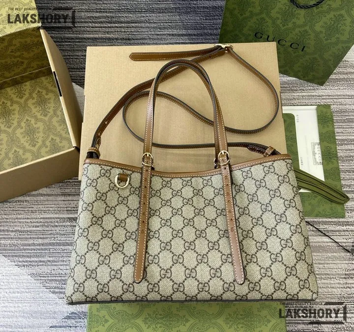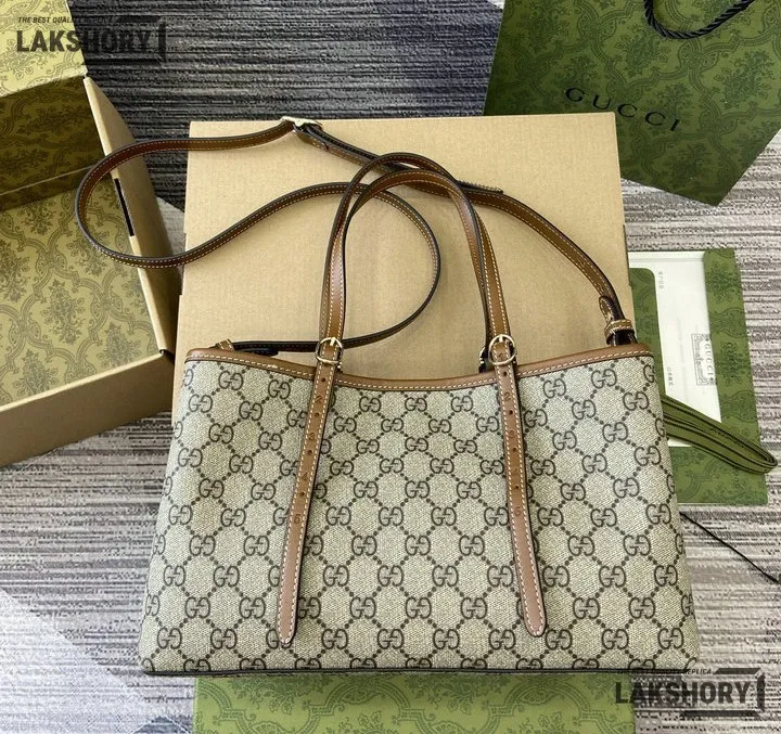 Gucci 1:1 Mirror Replica GG Emblem Medium Tote Beige Brown 31CM/12.2IN