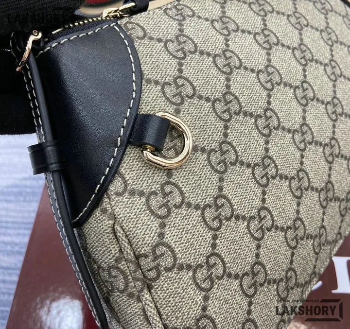 Gucci 1:1 Mirror Replica GG Emblem Small Bag Beige Dark Brown 24.5CM/9.6IN