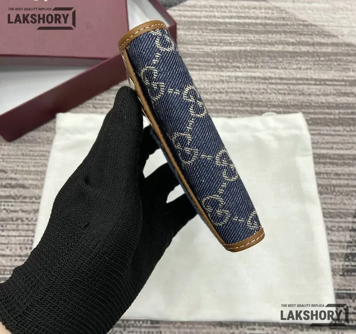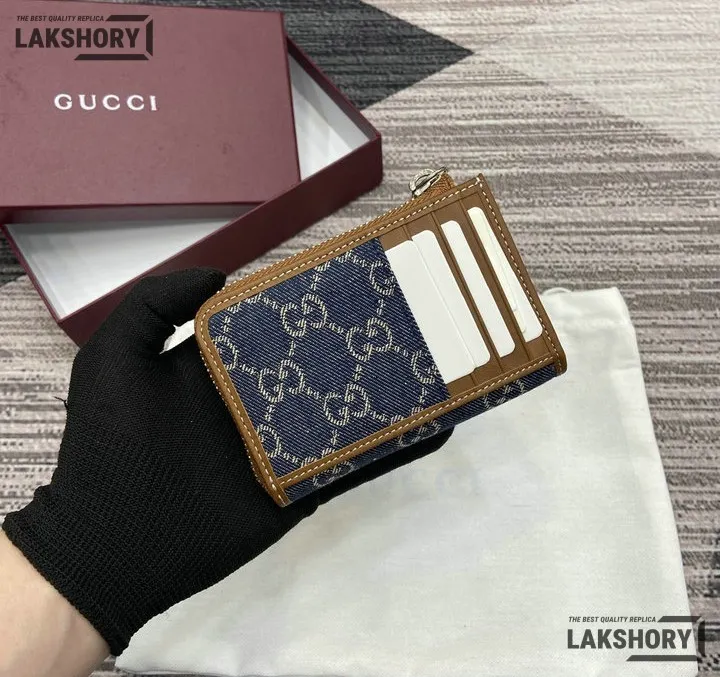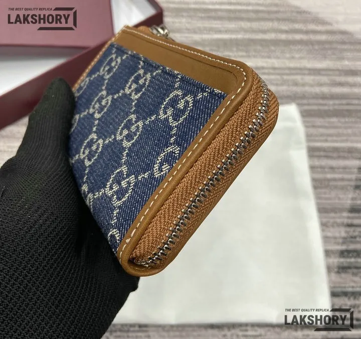 Gucci 1:1 Mirror Replica GG Emblem Zip Card Case Blue & Ivory 13CM/5.1IN