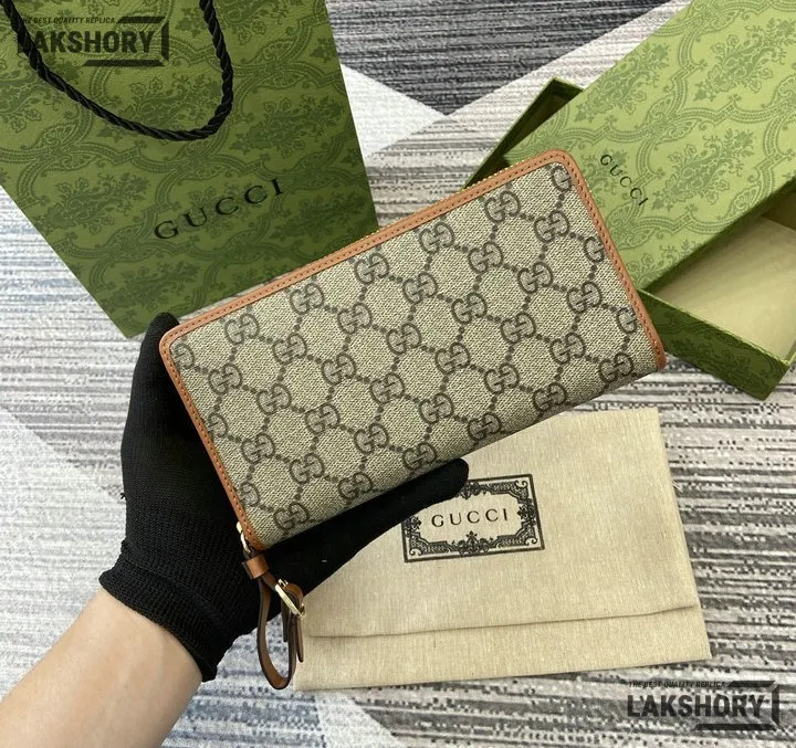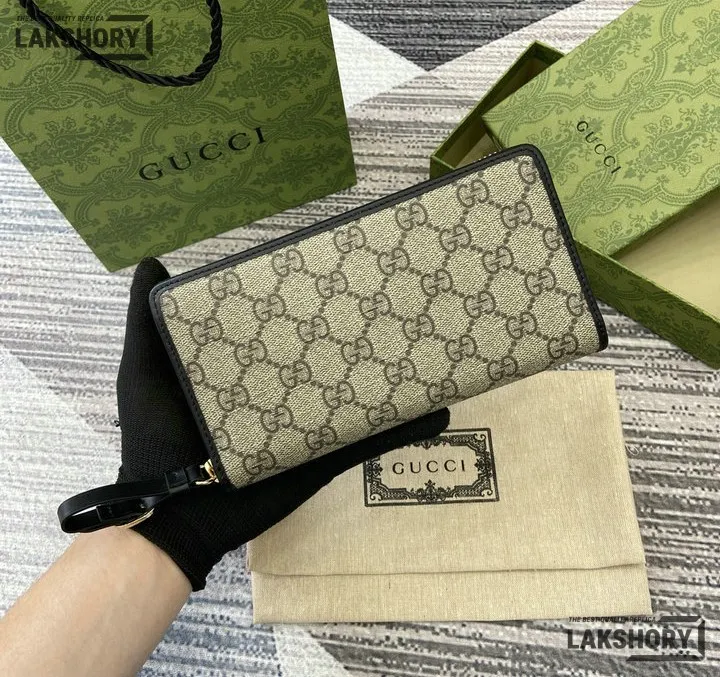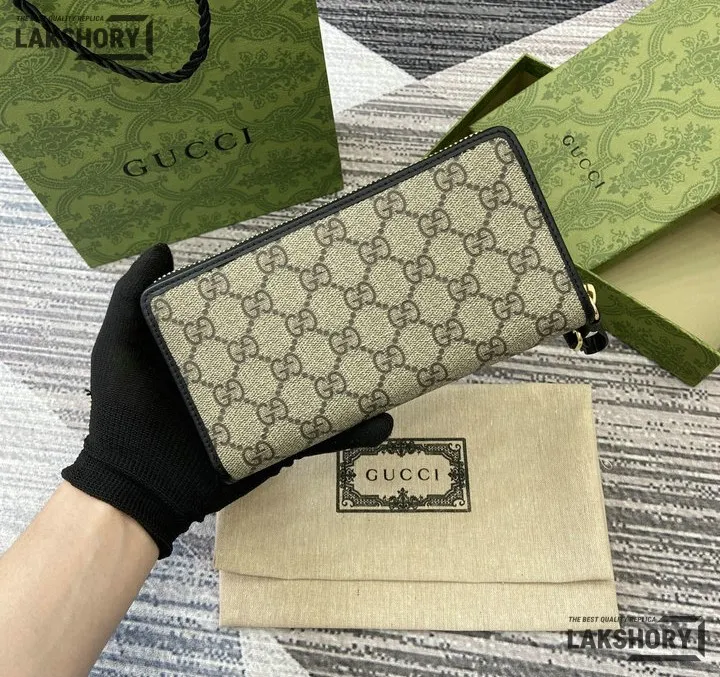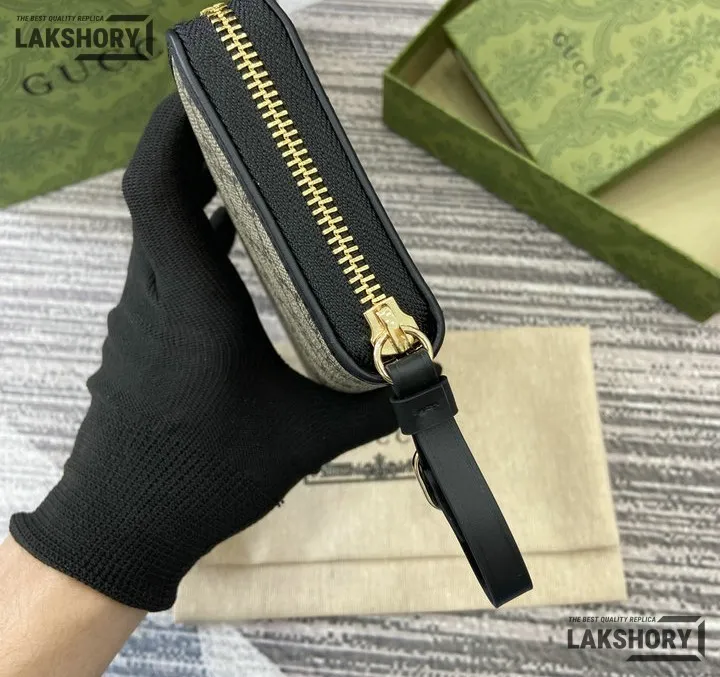 Gucci 1:1 Mirror Replica GG Emblem Zip Card Case Wallet 19CM/7.5IN