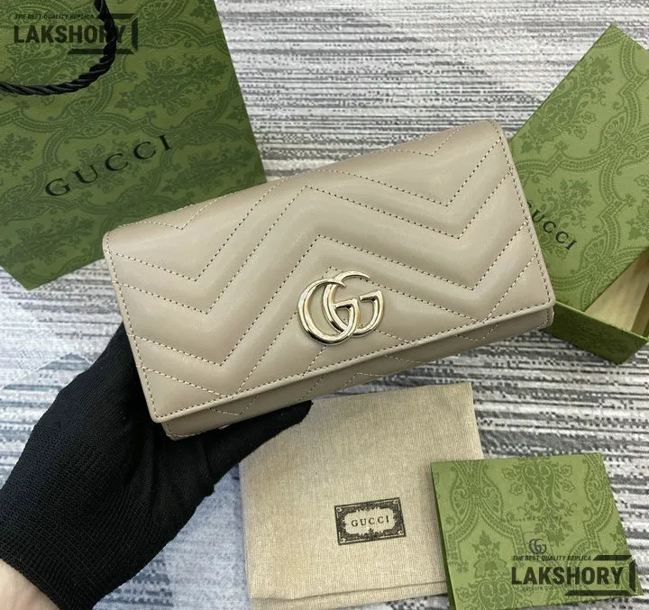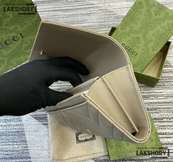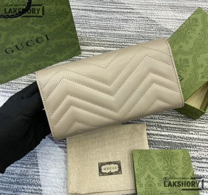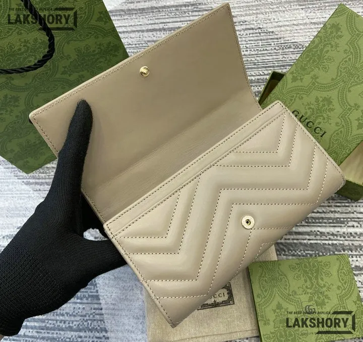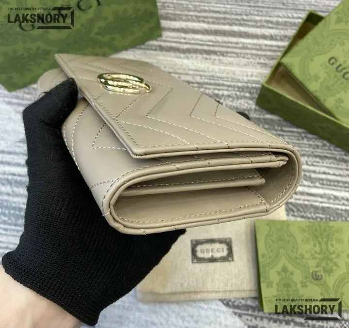 Gucci 1:1 Mirror Replica GG Marmont Continental Wallet Beige 19CM/7.5IN