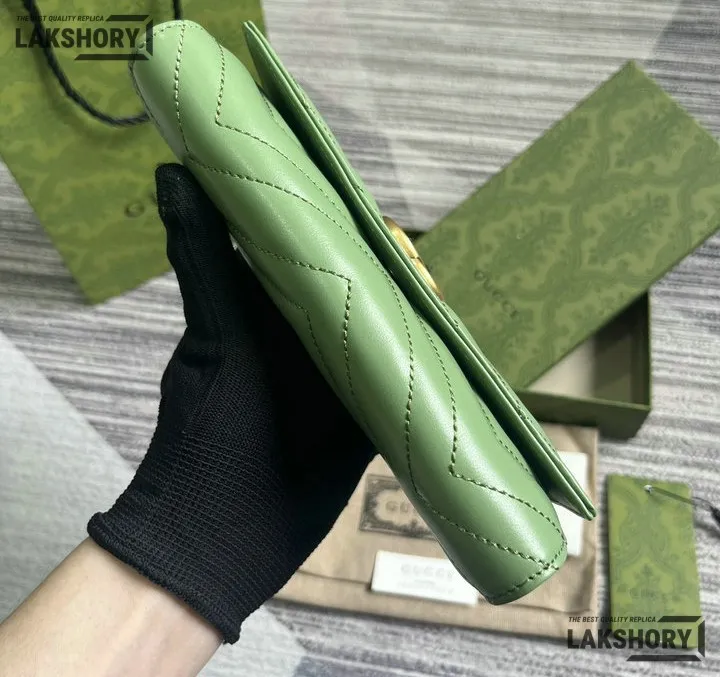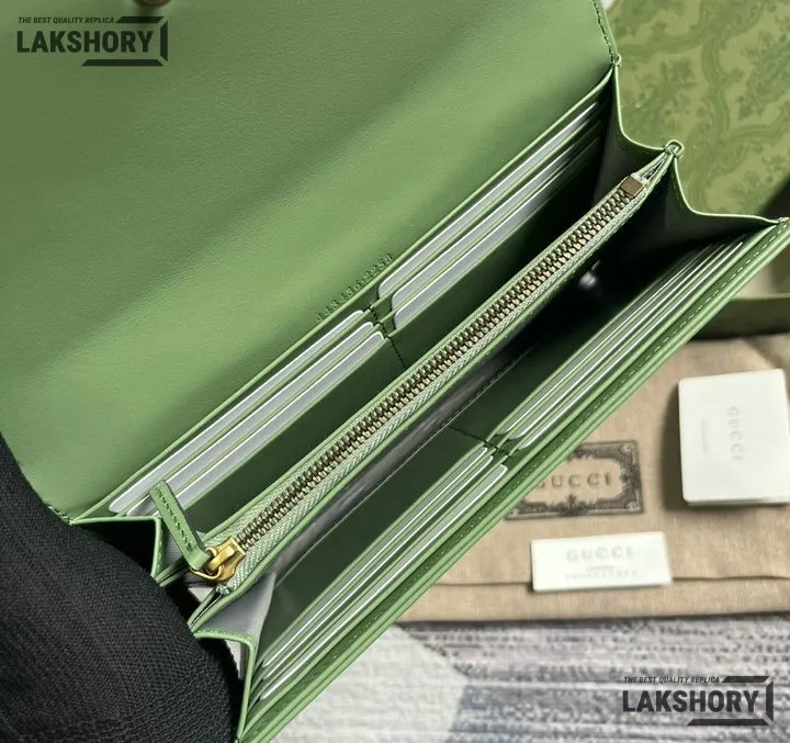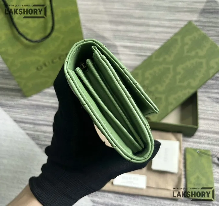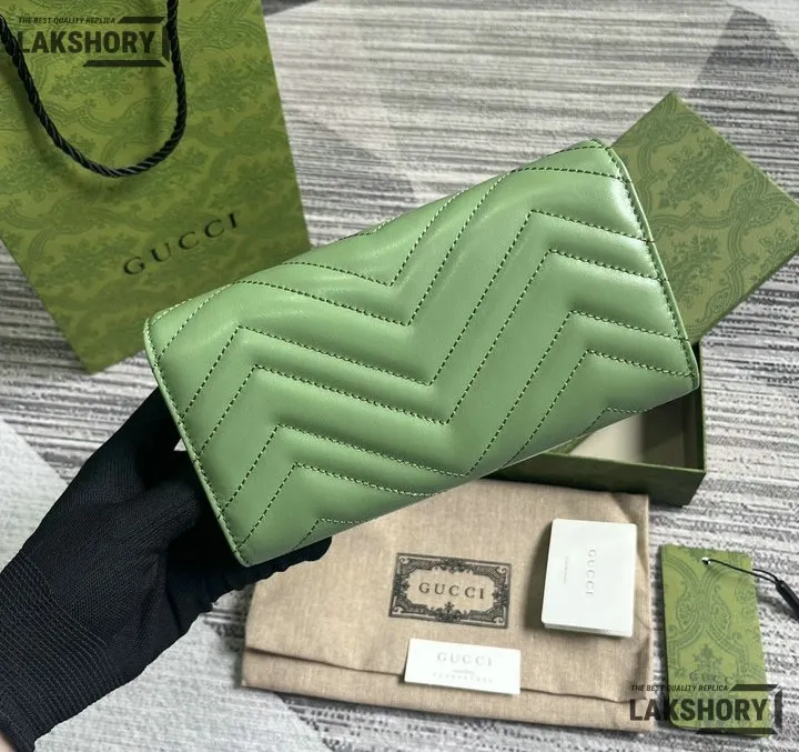 Gucci 1:1 Mirror Replica GG Marmont Continental Wallet Green 19CM/7.5IN