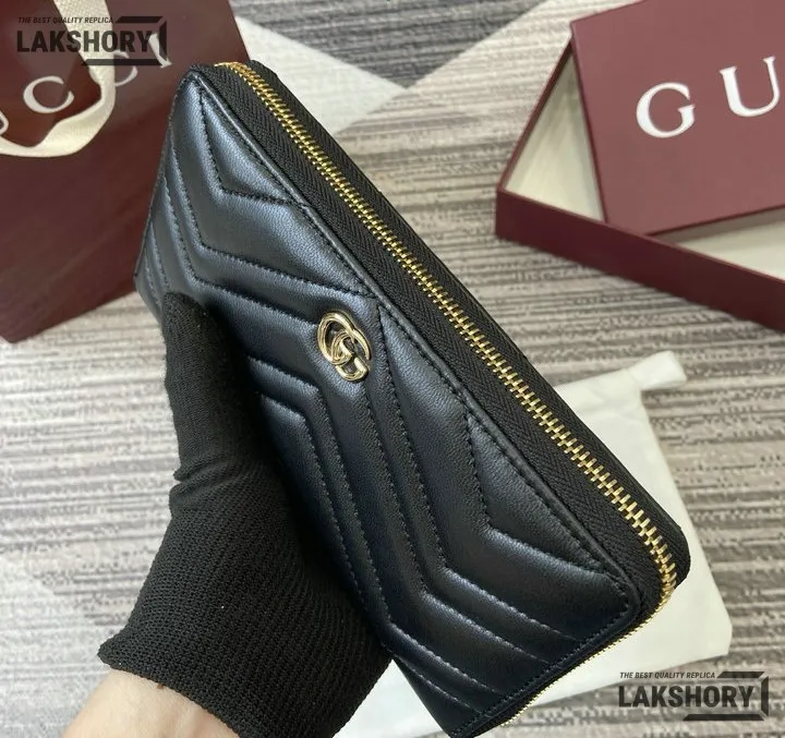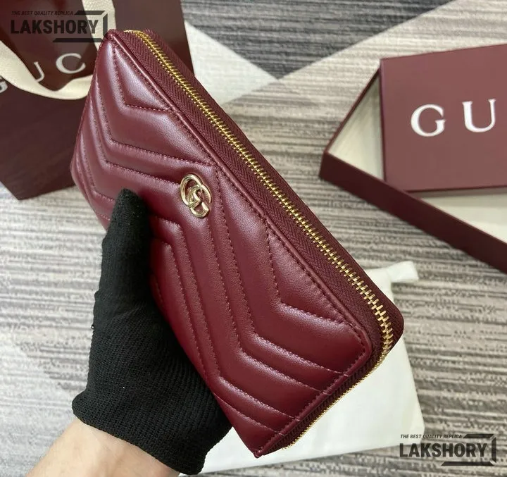 Gucci 1:1 Mirror Replica GG Marmont Continental Zip Around Wallet 19CM/7.5IN