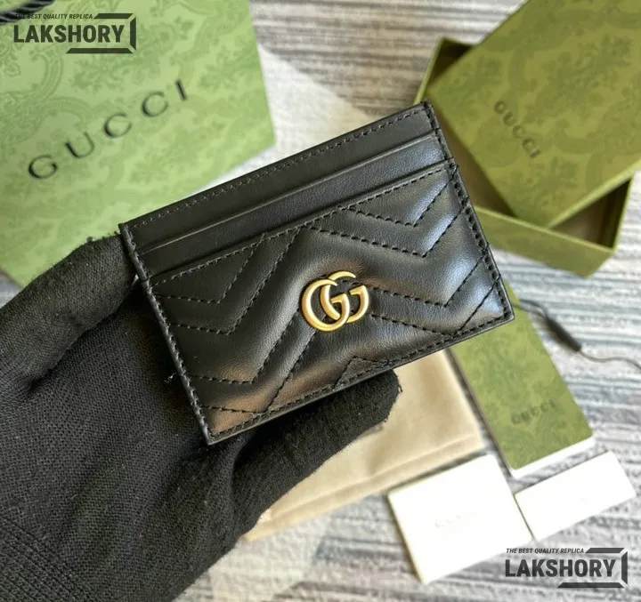 Gucci 1:1 Mirror Replica GG Marmont Leather Card Case 7CM/2.8IN