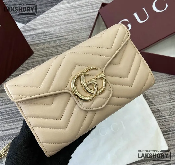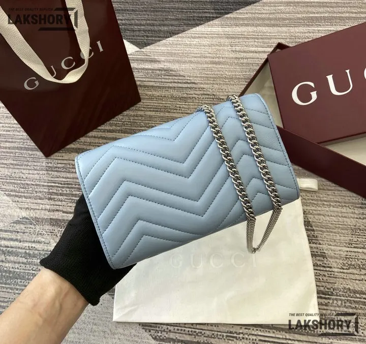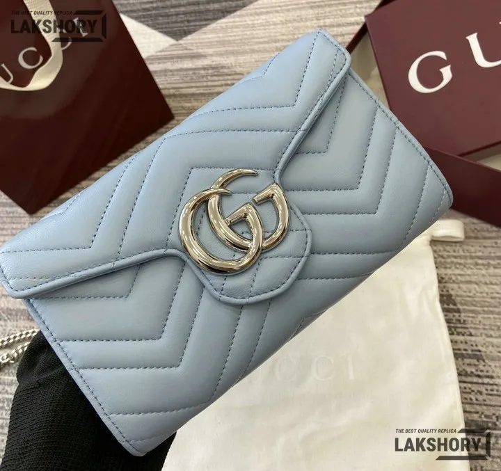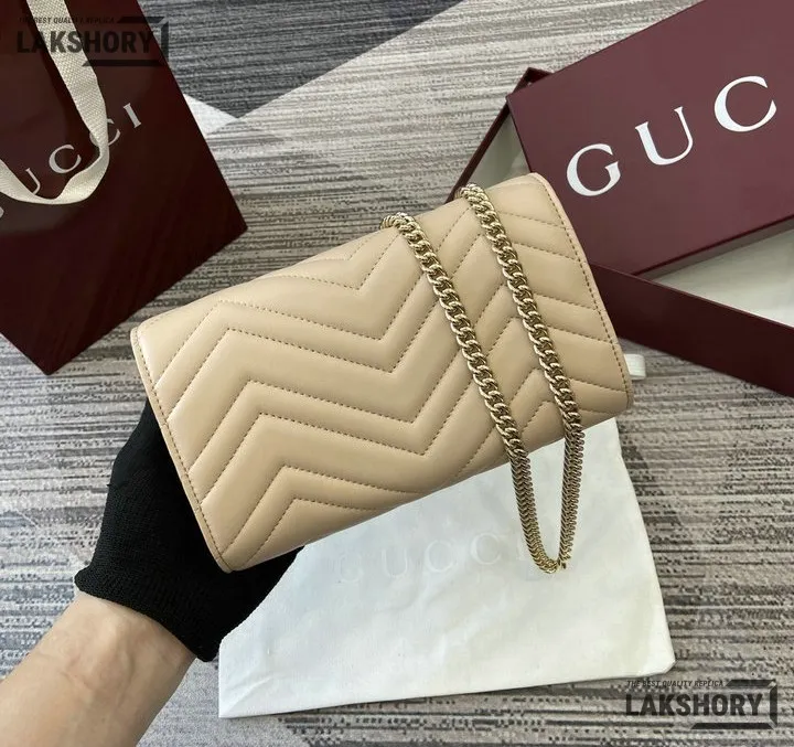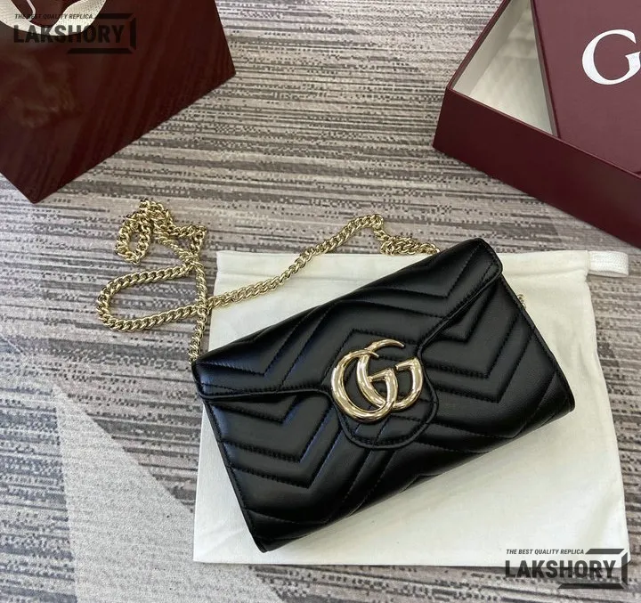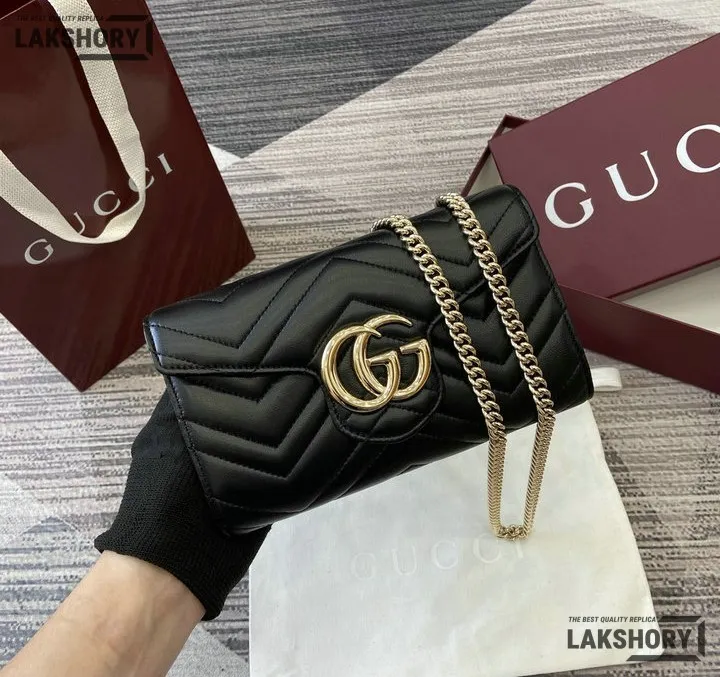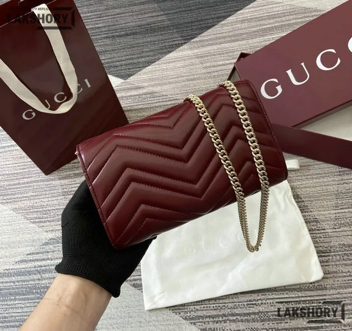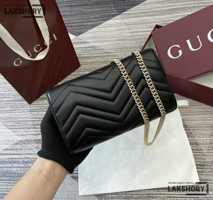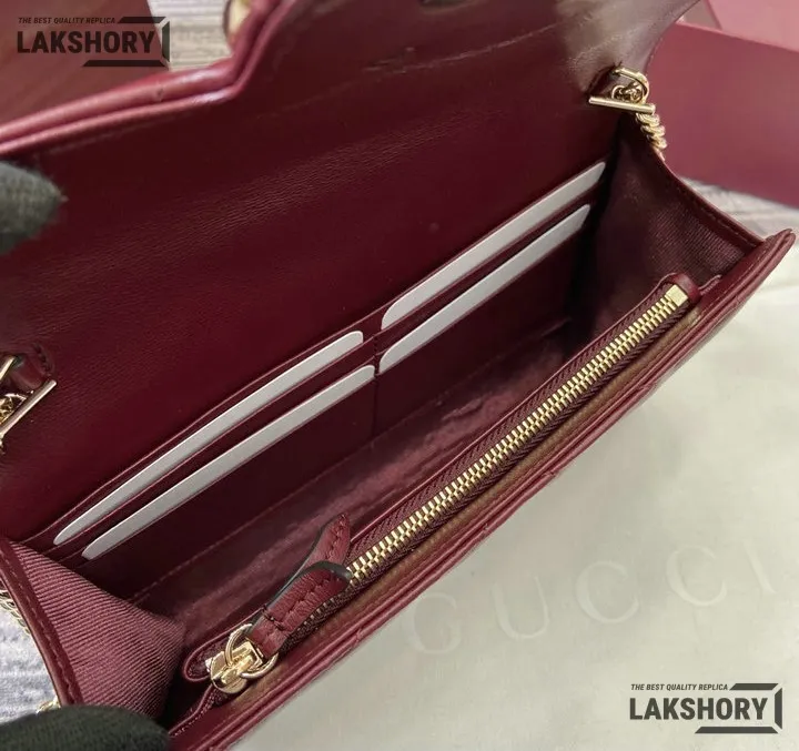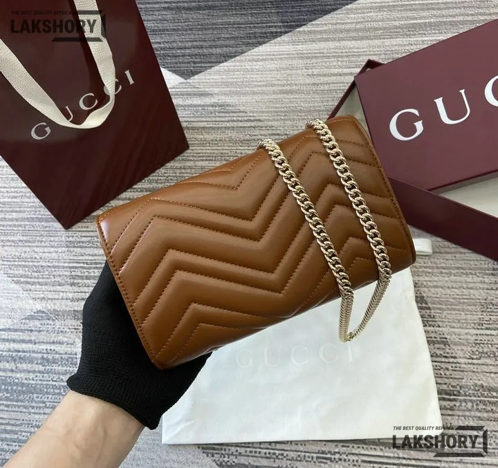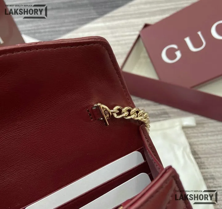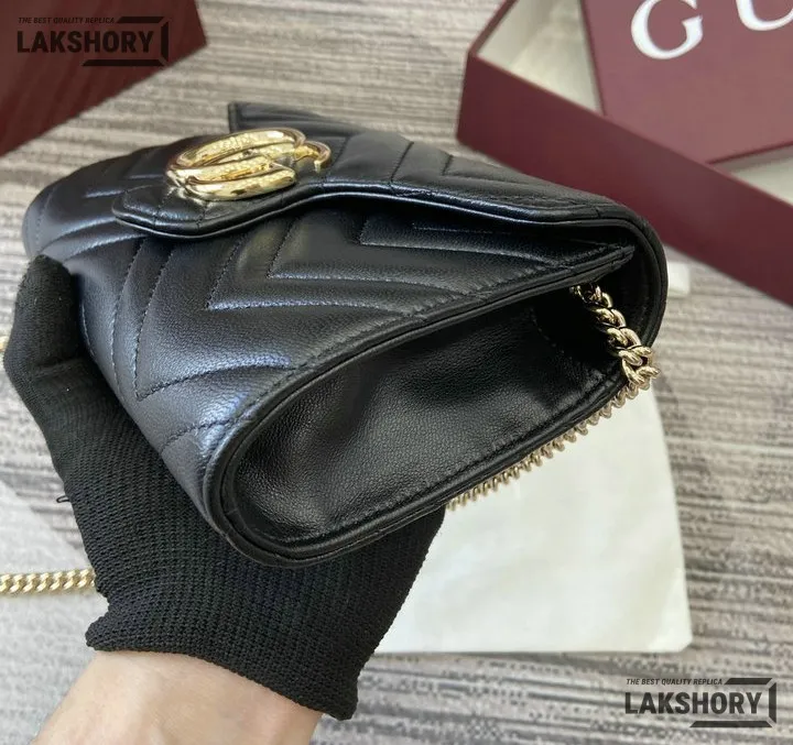 Gucci 1:1 Mirror Replica GG Marmont Leather Wallet On Chain 20CM/7.9IN