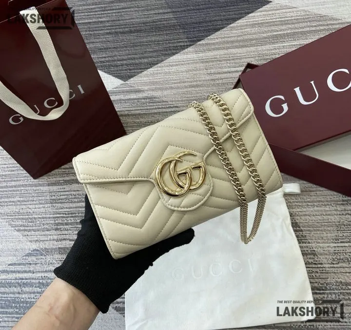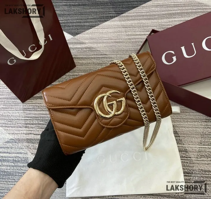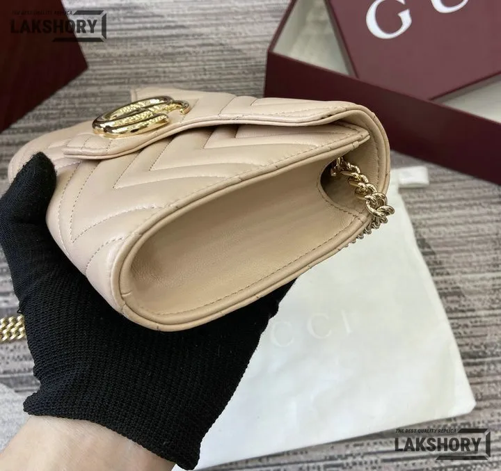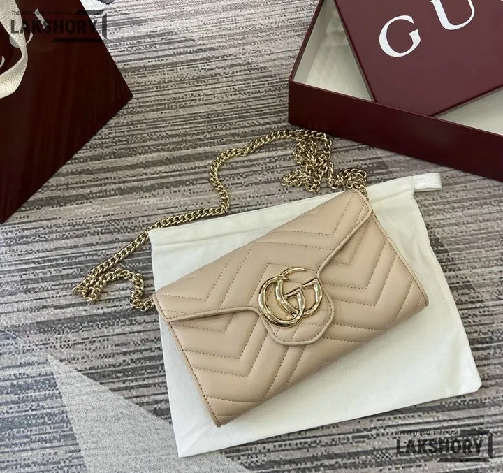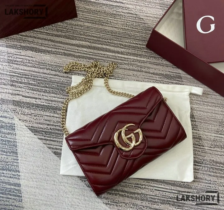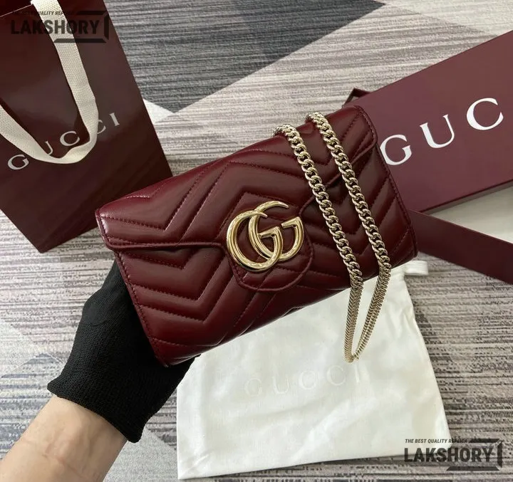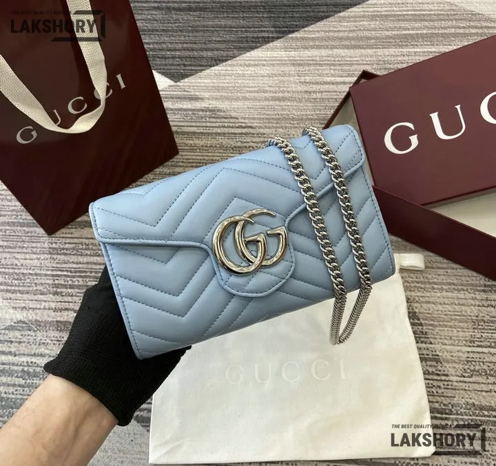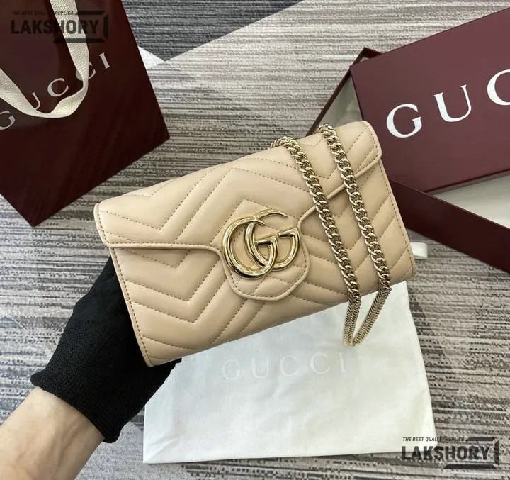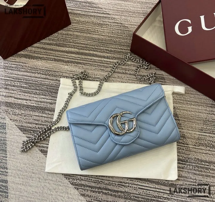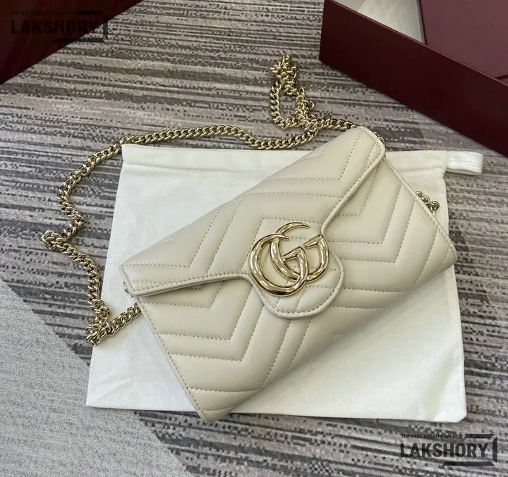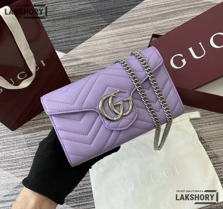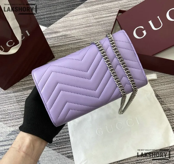 Gucci 1:1 Mirror Replica GG Marmont Leather Wallet On Chain 20CM/7.9IN
