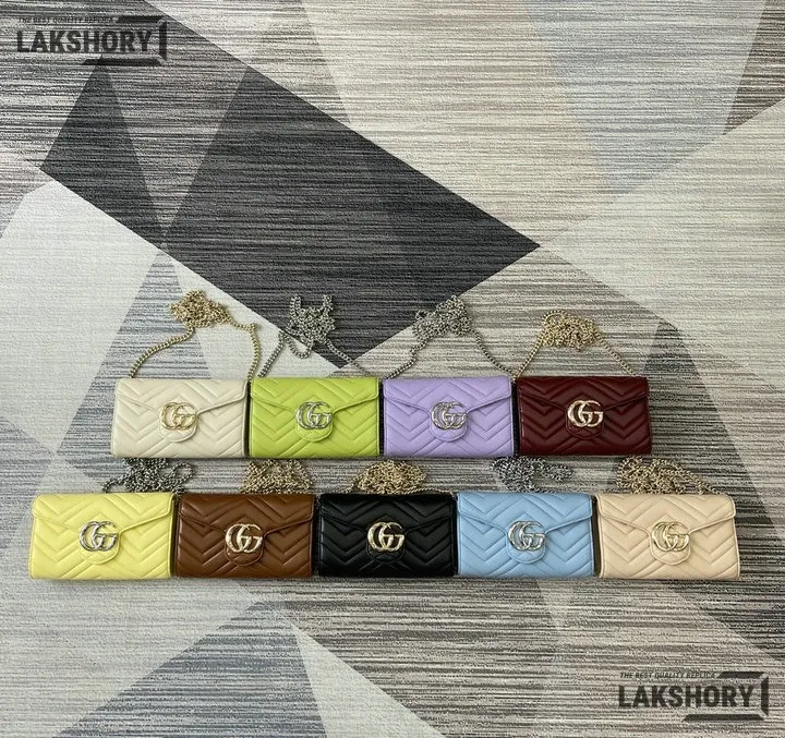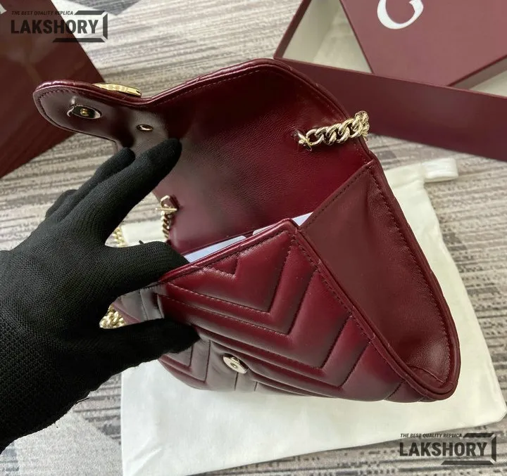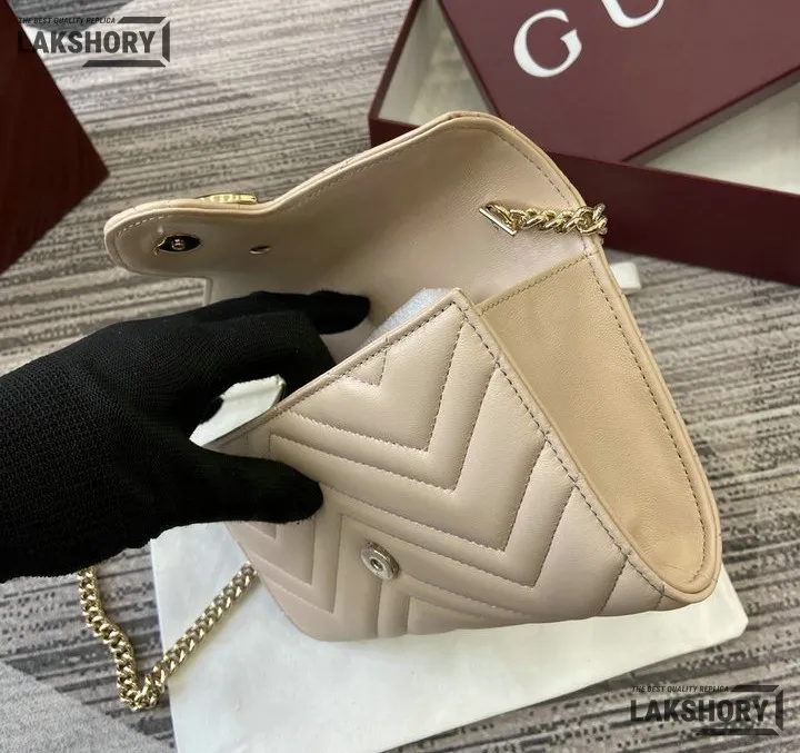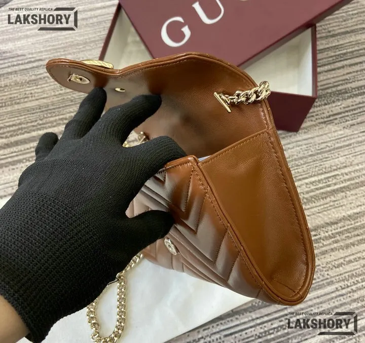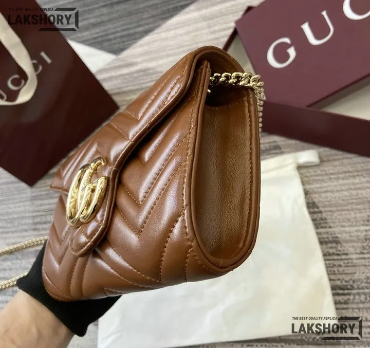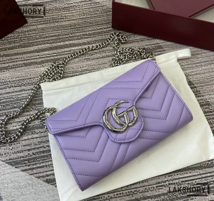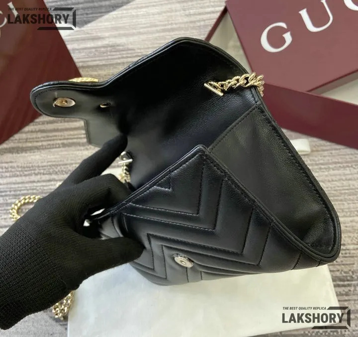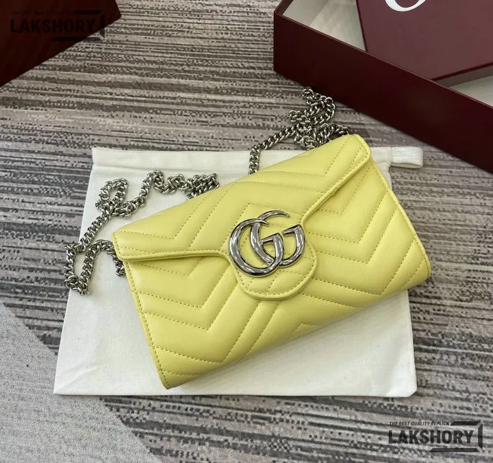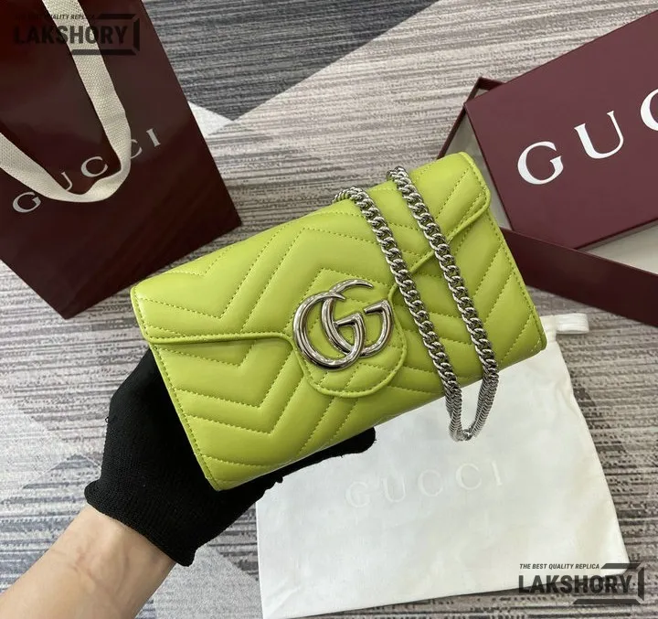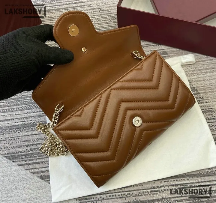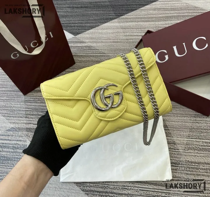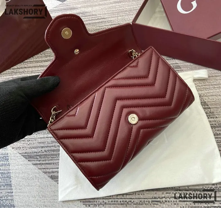 Gucci 1:1 Mirror Replica GG Marmont Leather Wallet On Chain 20CM/7.9IN