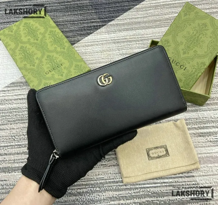 Gucci 1:1 Mirror Replica GG Marmont Leather Zip-around Wallet 19CM/7.5IN