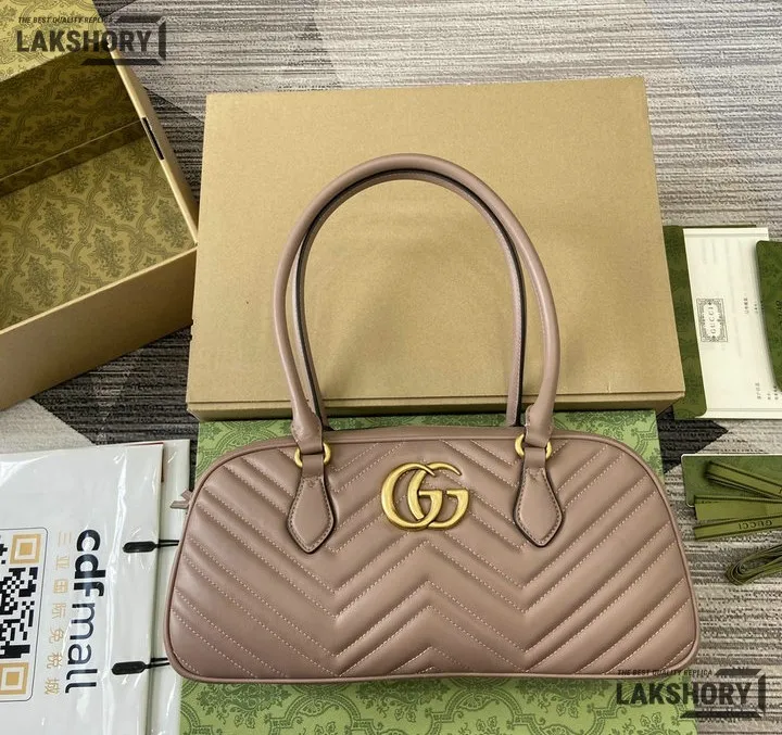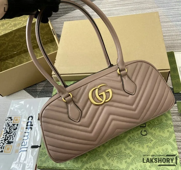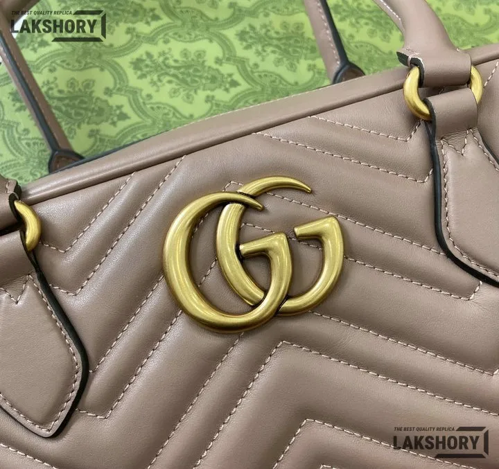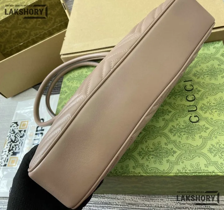Gucci 1:1 Mirror Replica GG Marmont Medium Top Handle Porcelain Rose 35.5CM/14IN