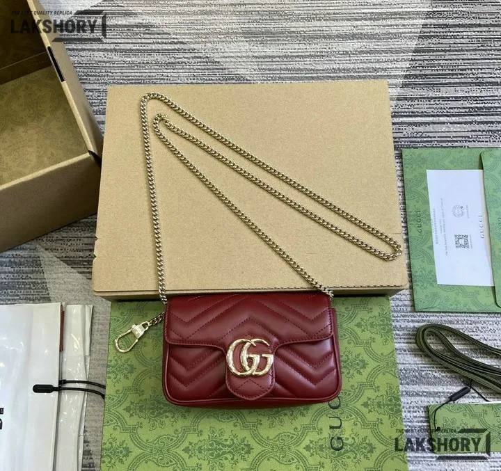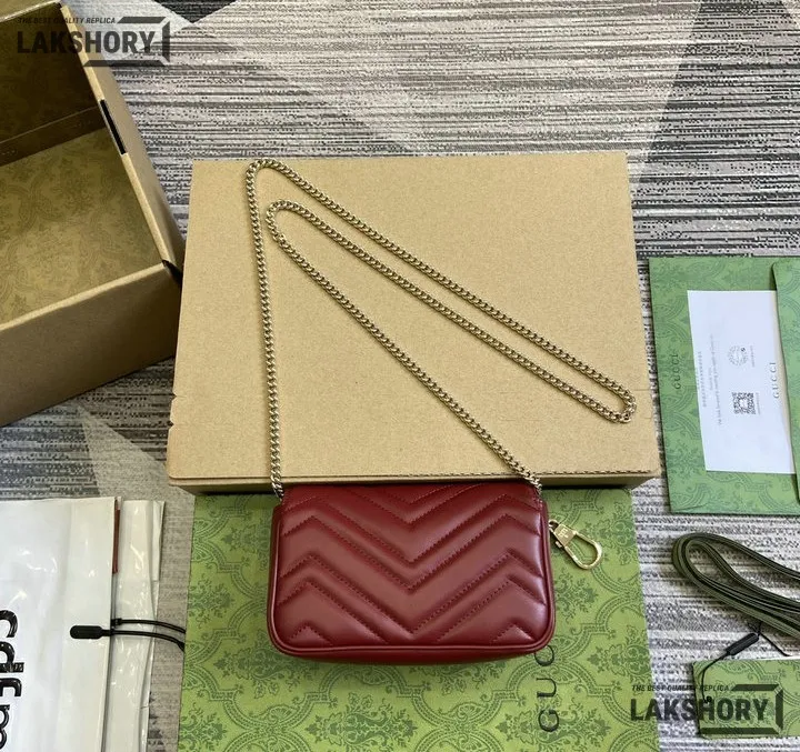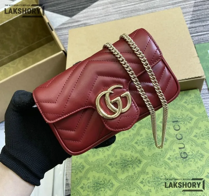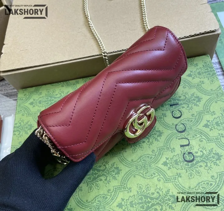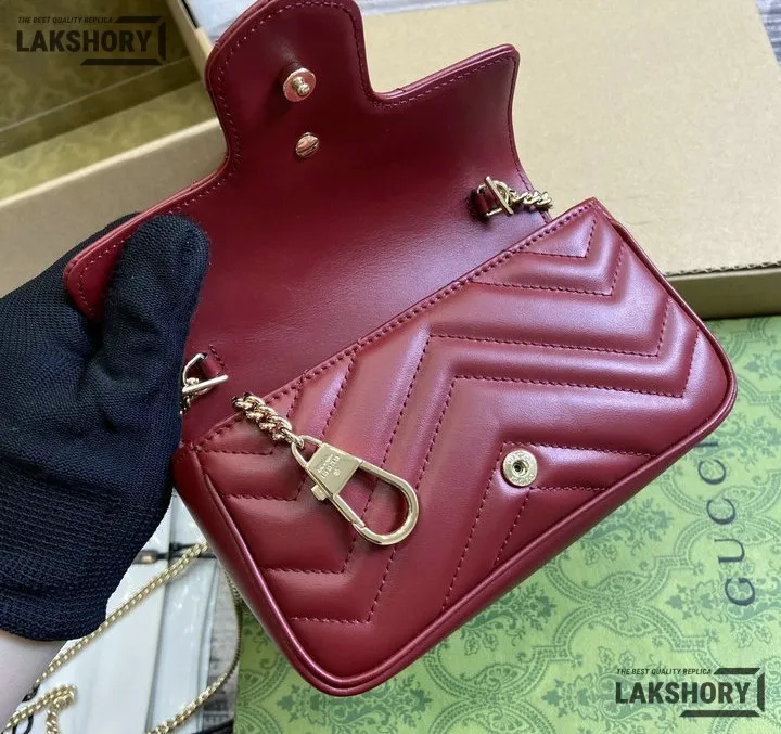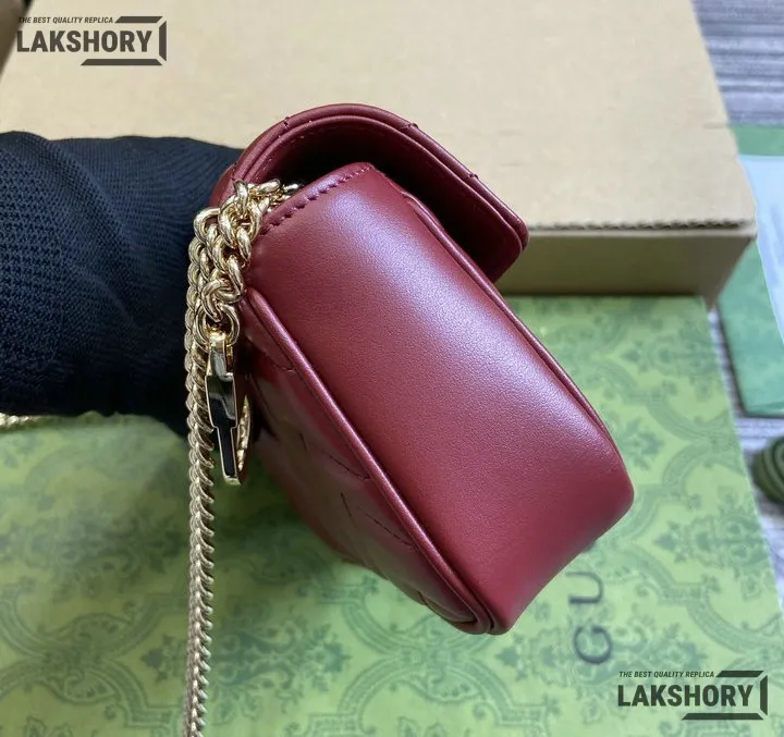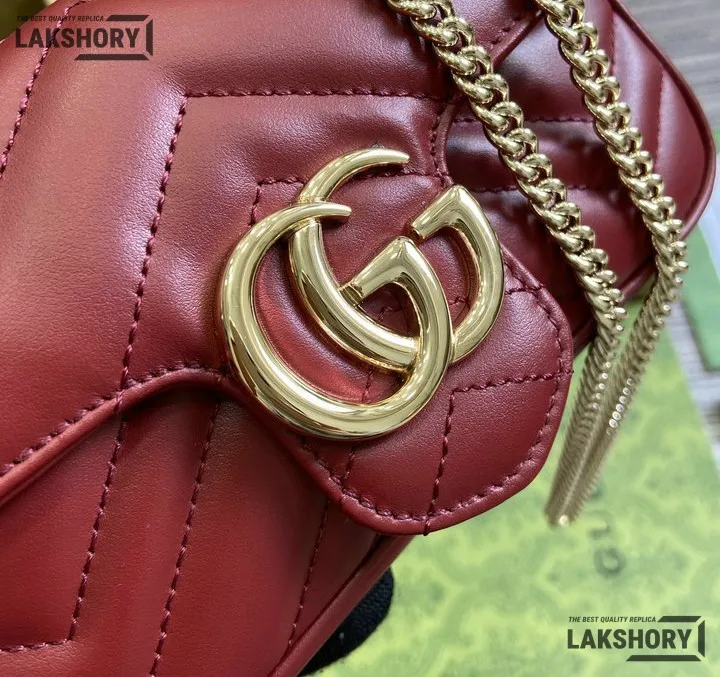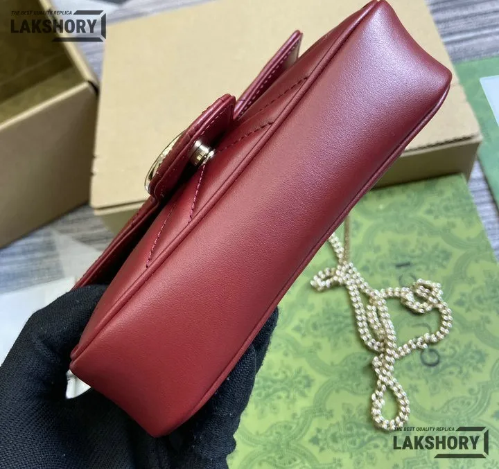 Gucci 1:1 Mirror Replica GG Marmont Mini Leather Bag Red 16.5CM/6.5IN