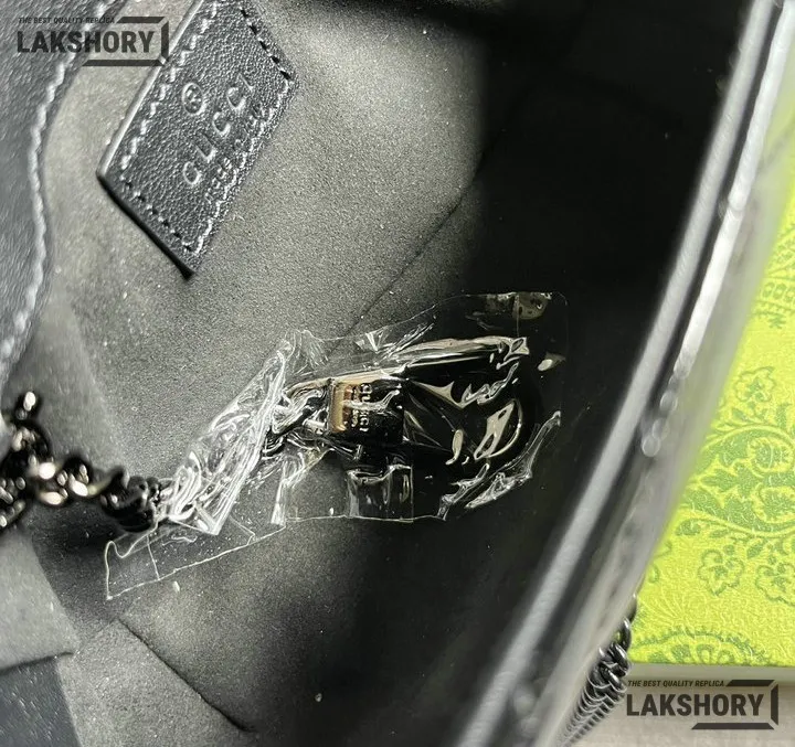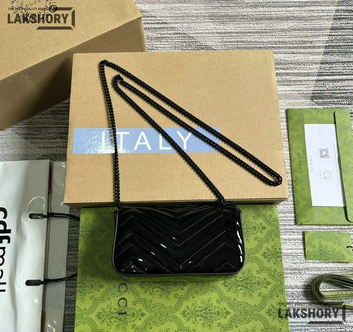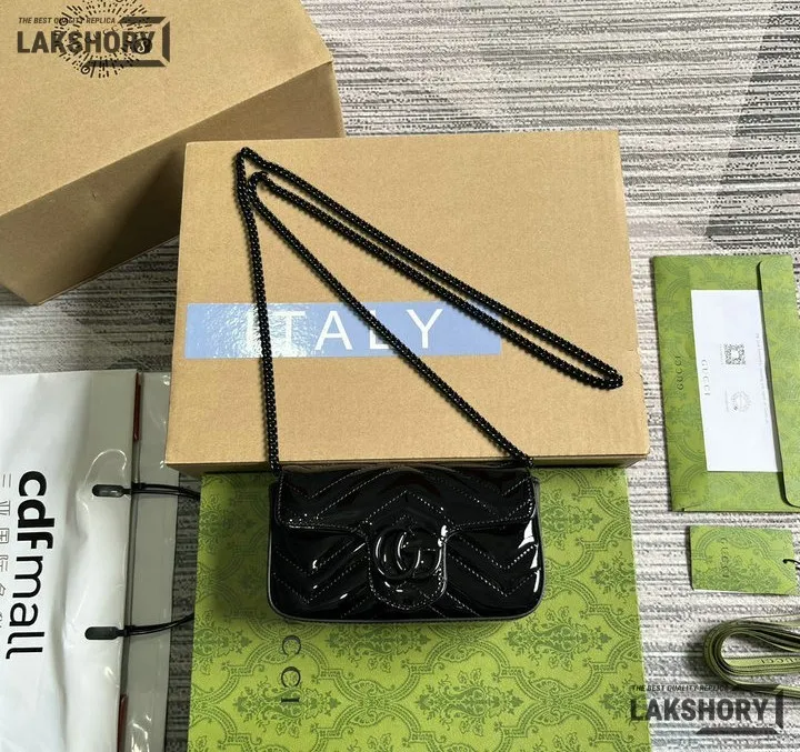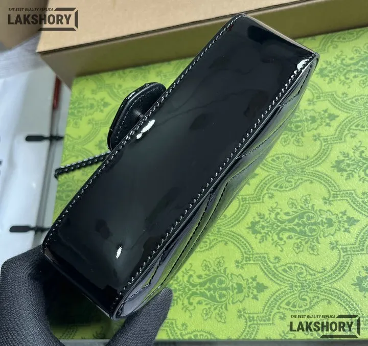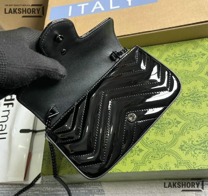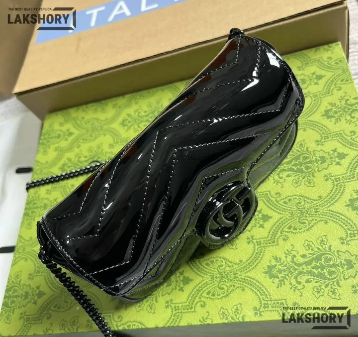 Gucci 1:1 Mirror Replica GG Marmont Patent Super Mini Bag Black 16.5CM/6.5IN