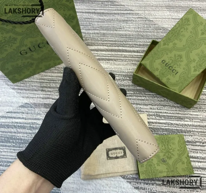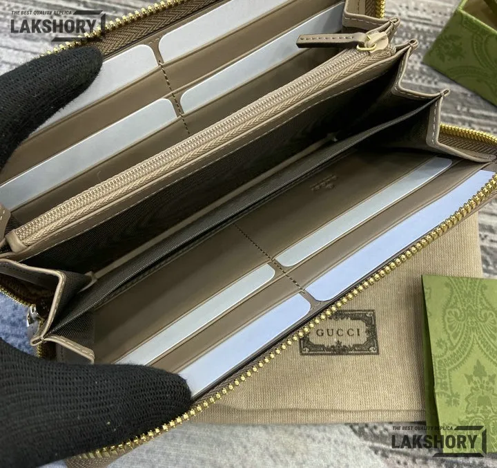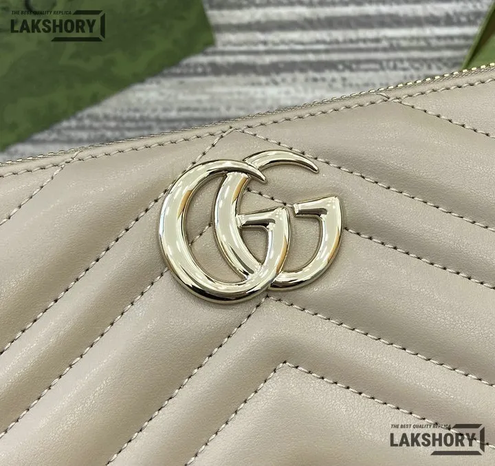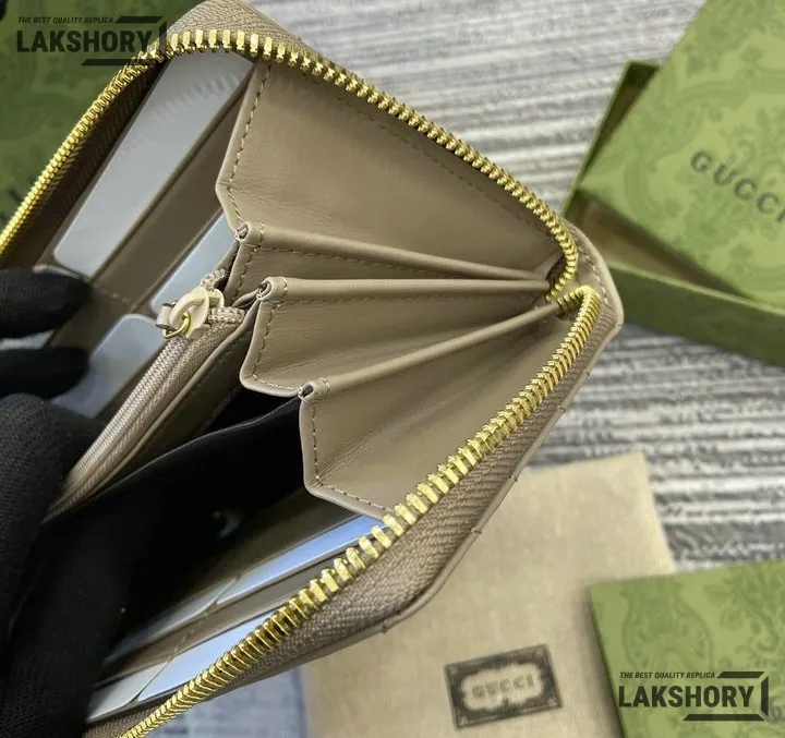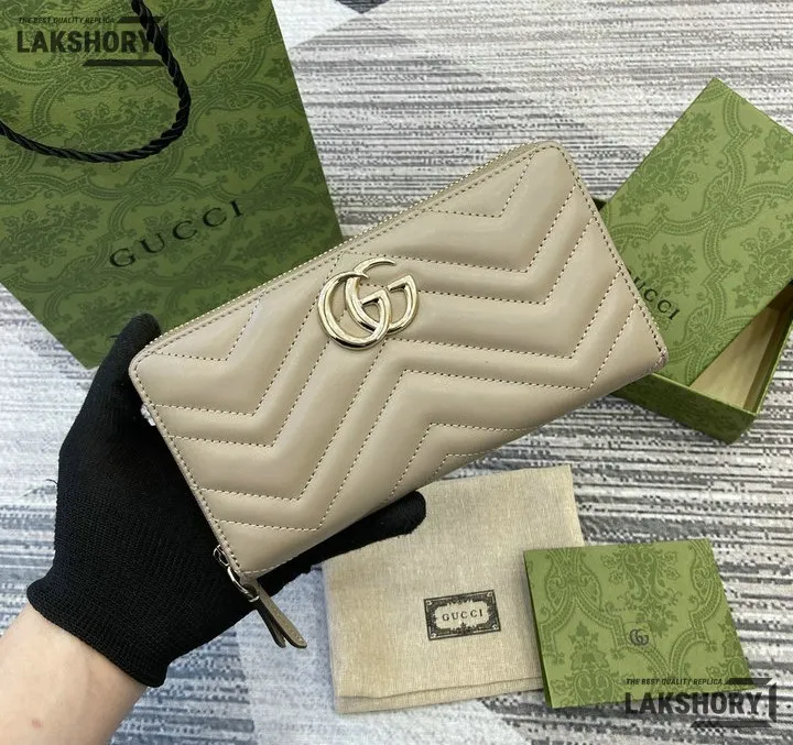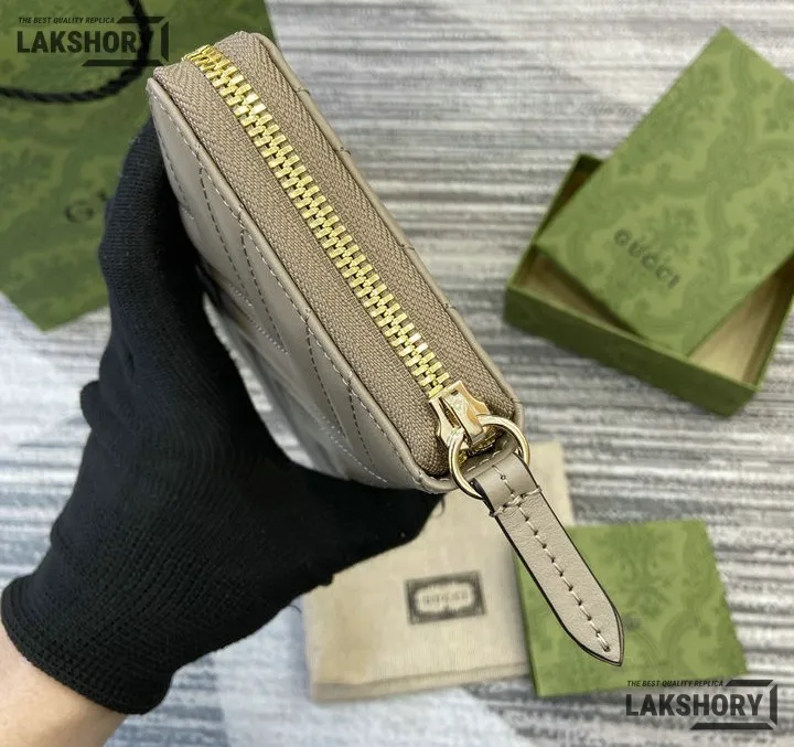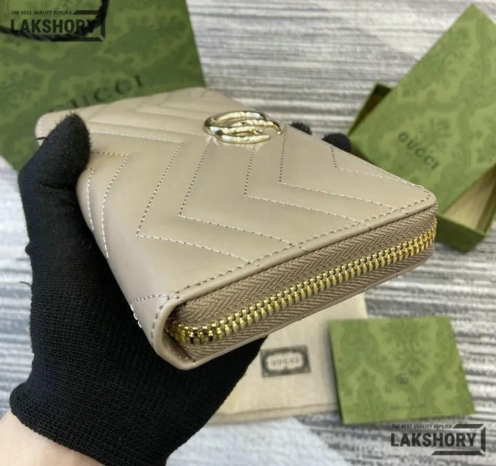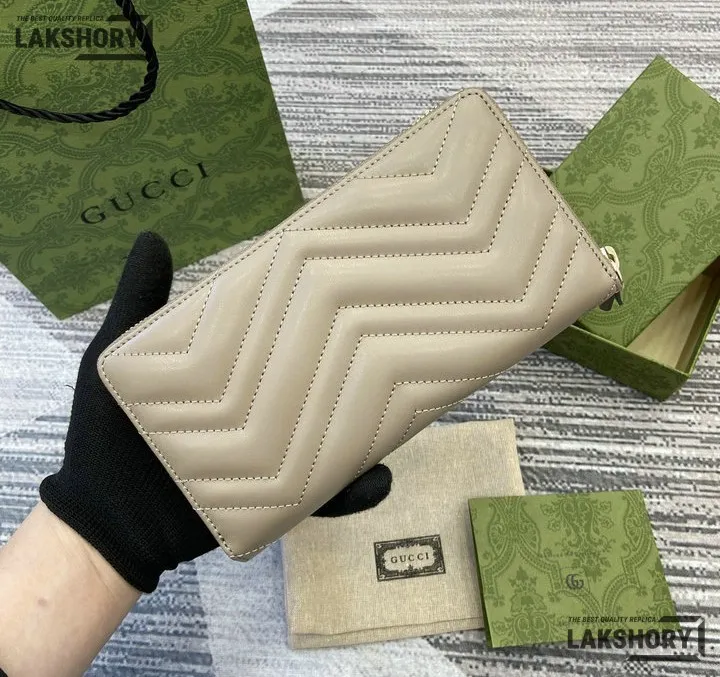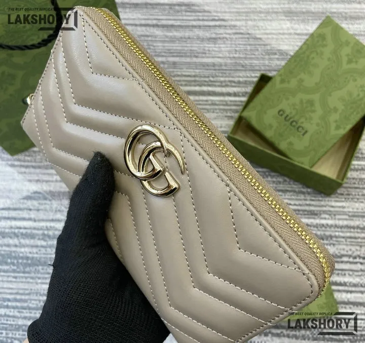 Gucci 1:1 Mirror Replica GG Marmont Zip Around Wallet Beige 19CM/7.5IN