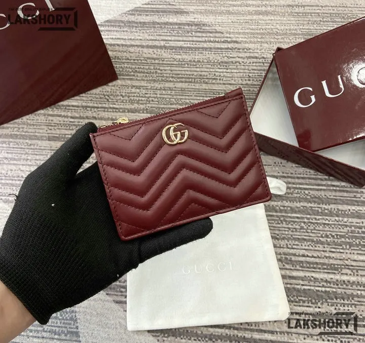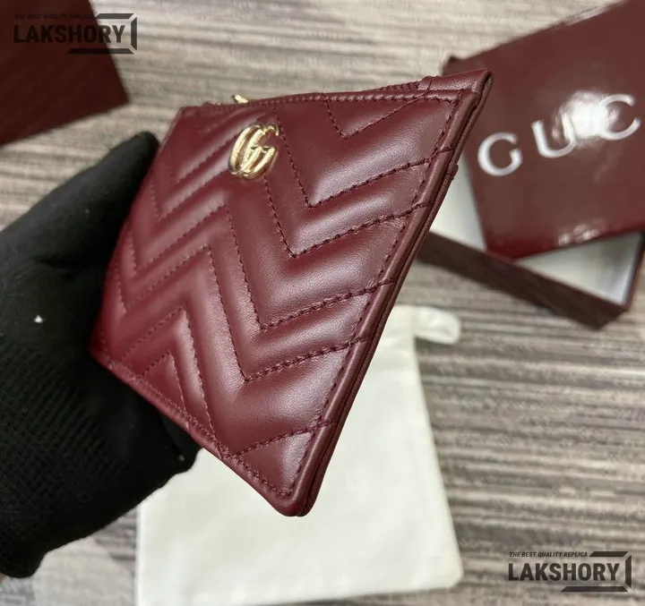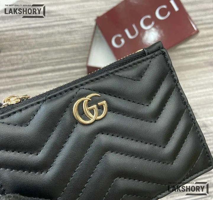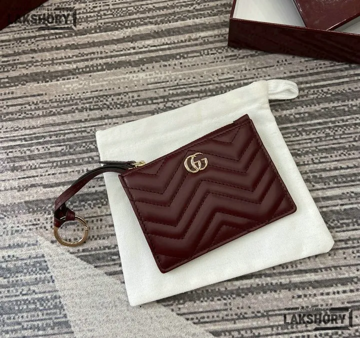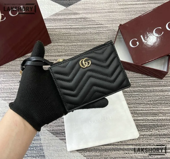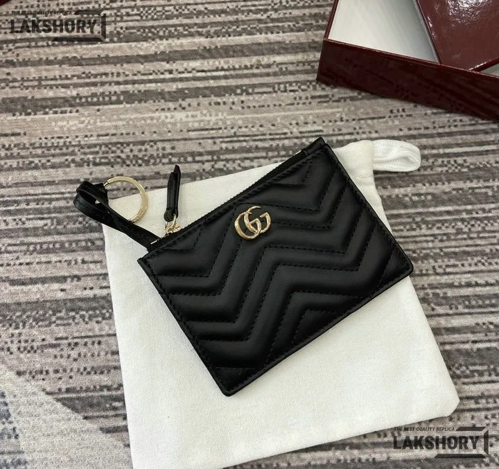 Gucci 1:1 Mirror Replica GG Marmont Zip Key Pouch Leather 8.5CM/3.3IN